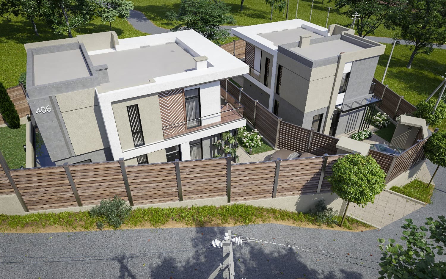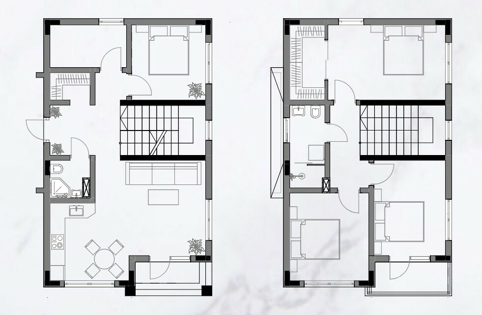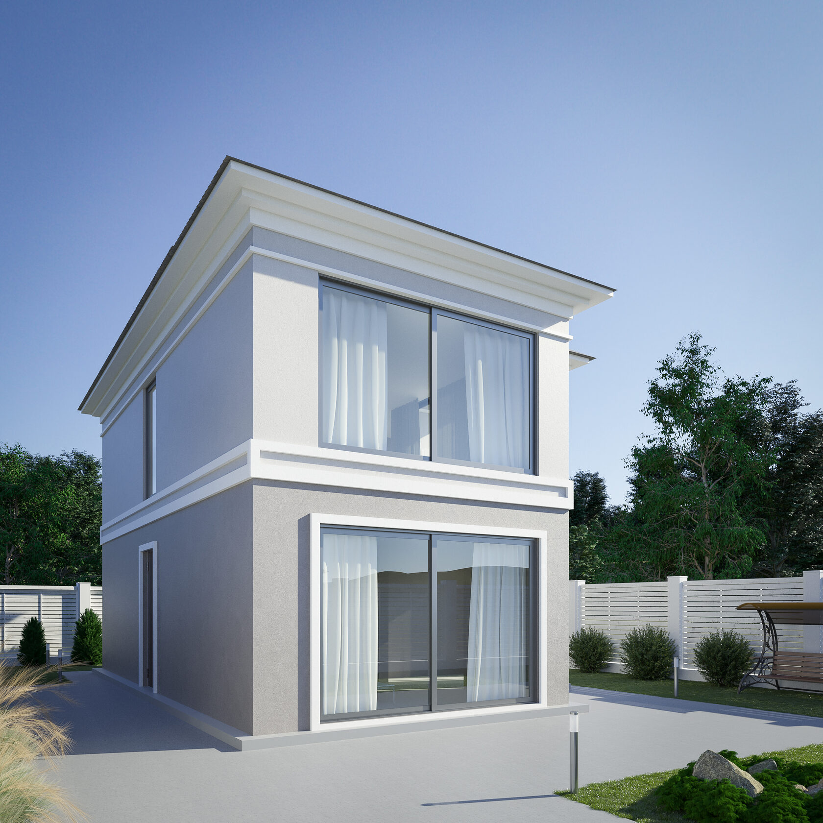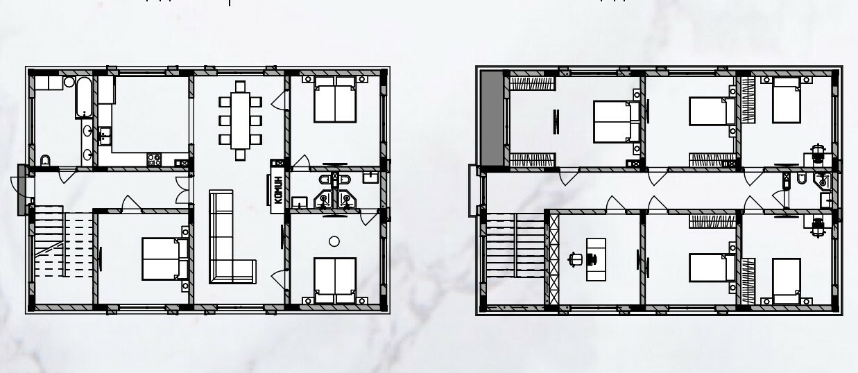 1 этаж: прихожая/холл, с/у, душевая, сауна, кухня-гостиная/столовая; 2 этаж: прихожая/холл, 2 спальни, 2 гардероба, с/у, 2 балкона;