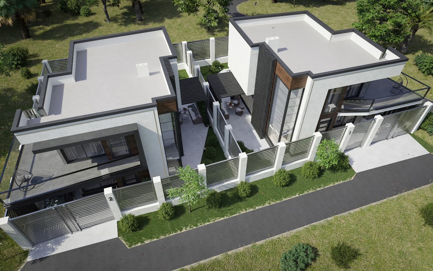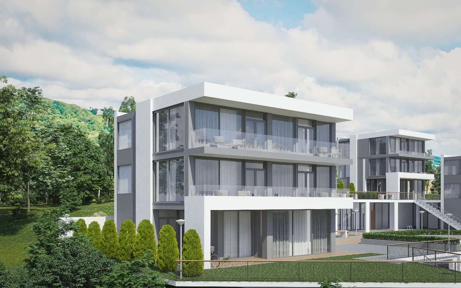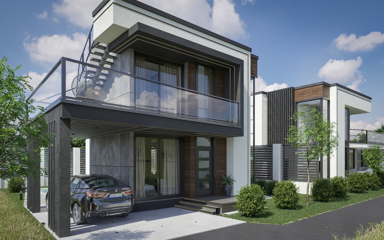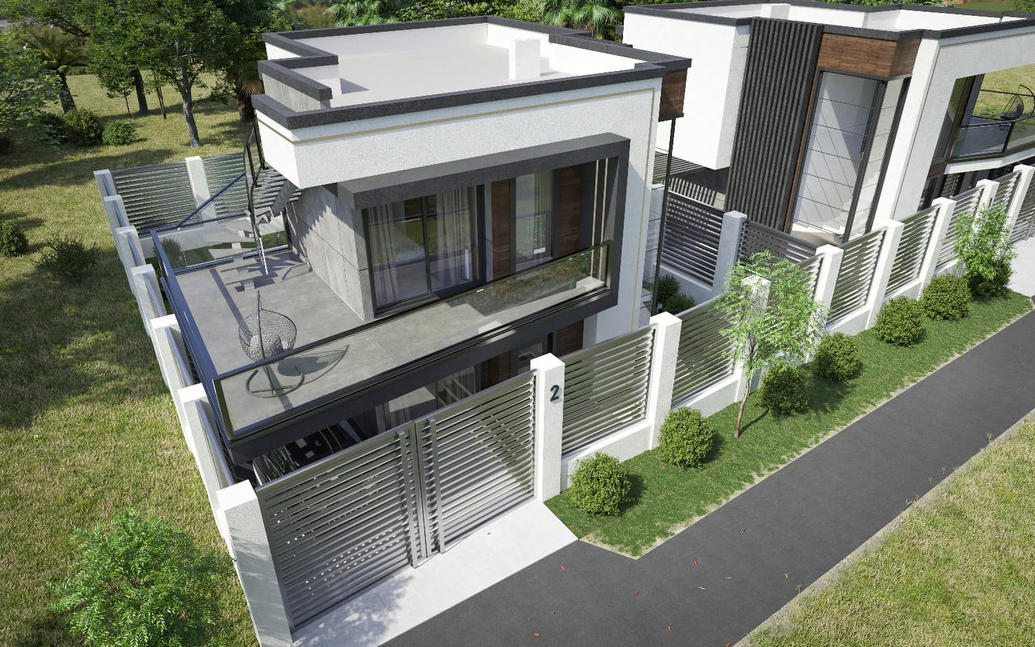 1 этаж: прихожая/холл, с/у, душевая, сауна, кухня-гостиная/столовая; 2 этаж: прихожая/холл, 2 спальни, 2 гардероба, с/у, 2 балкона;