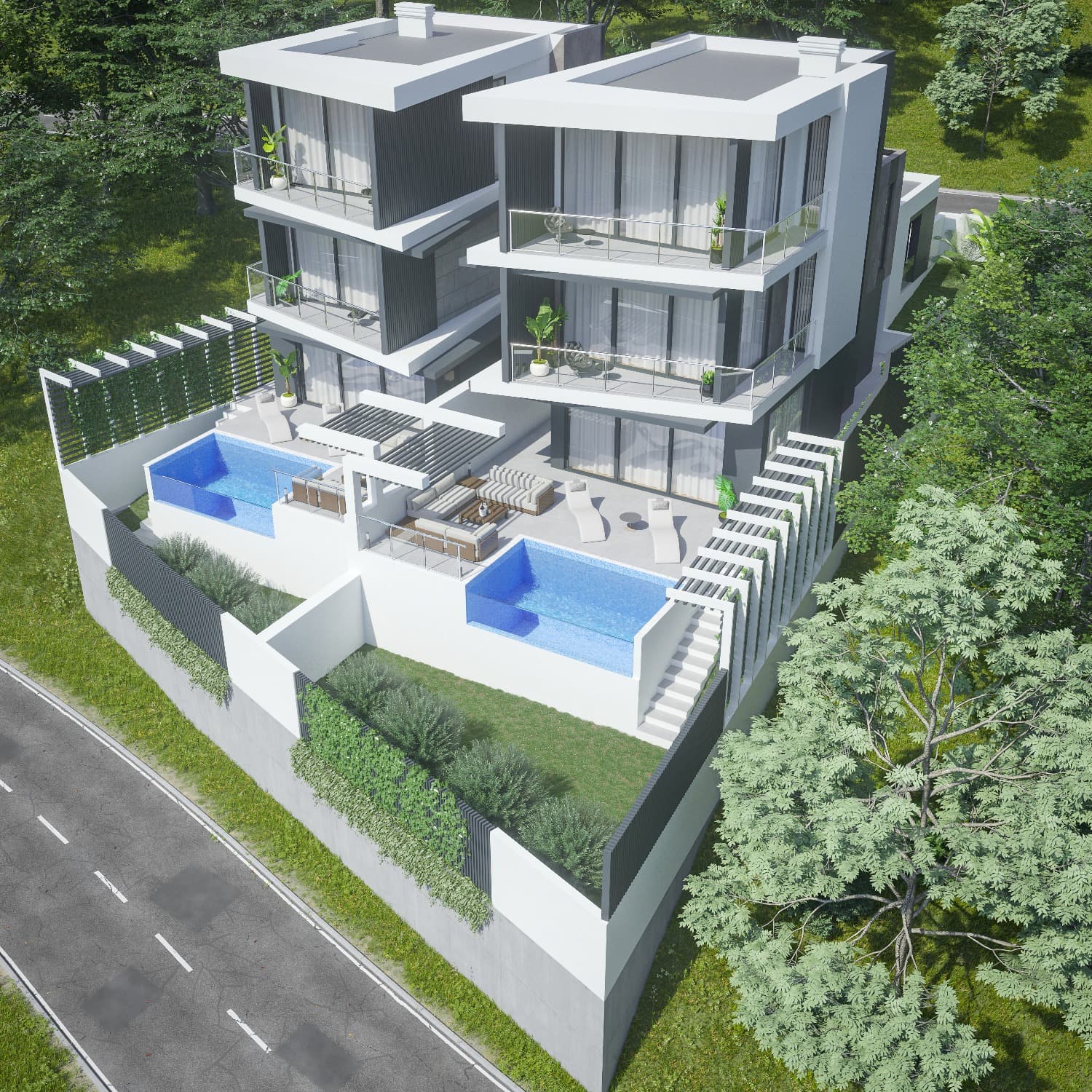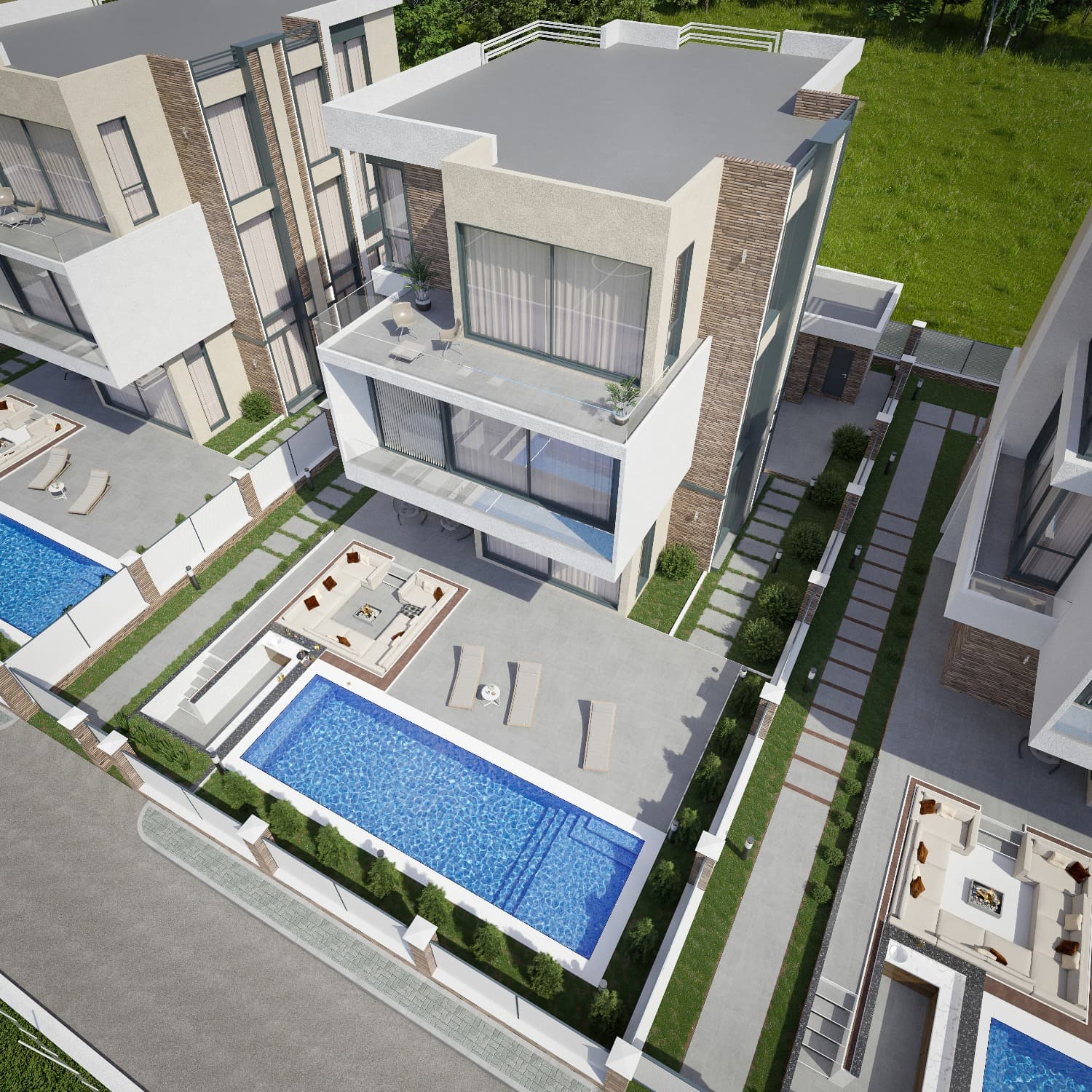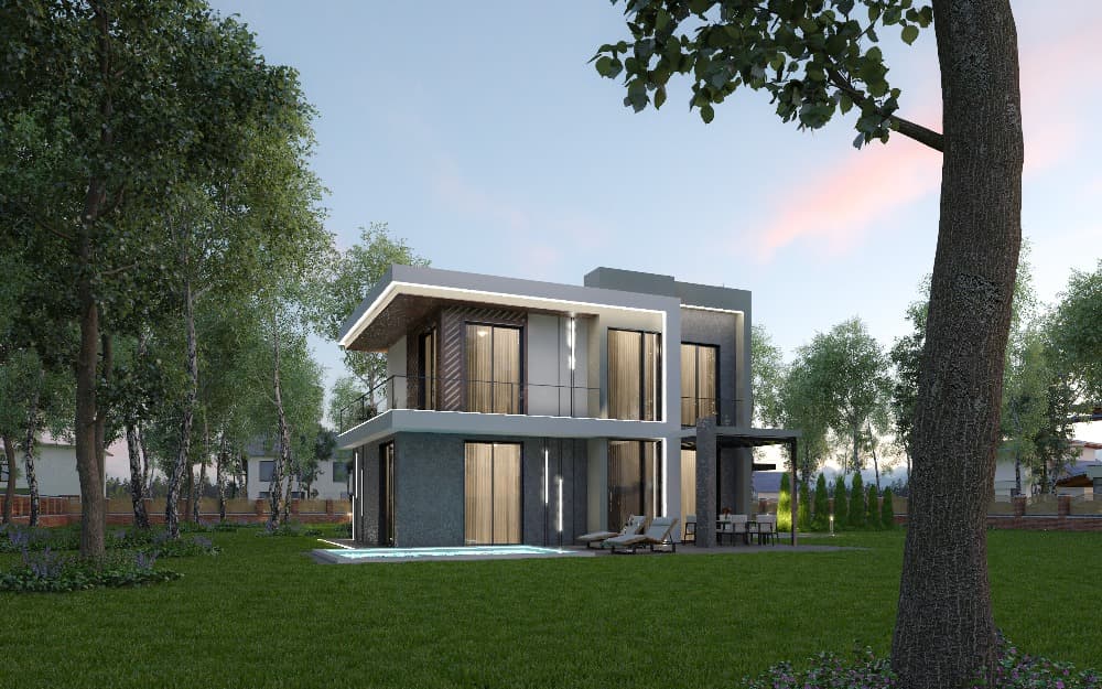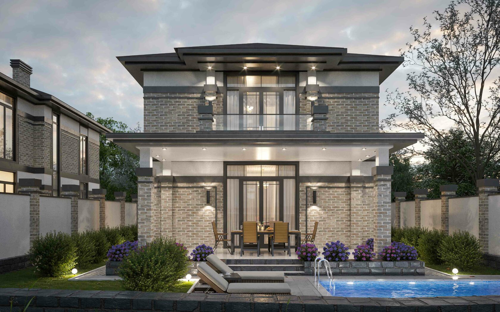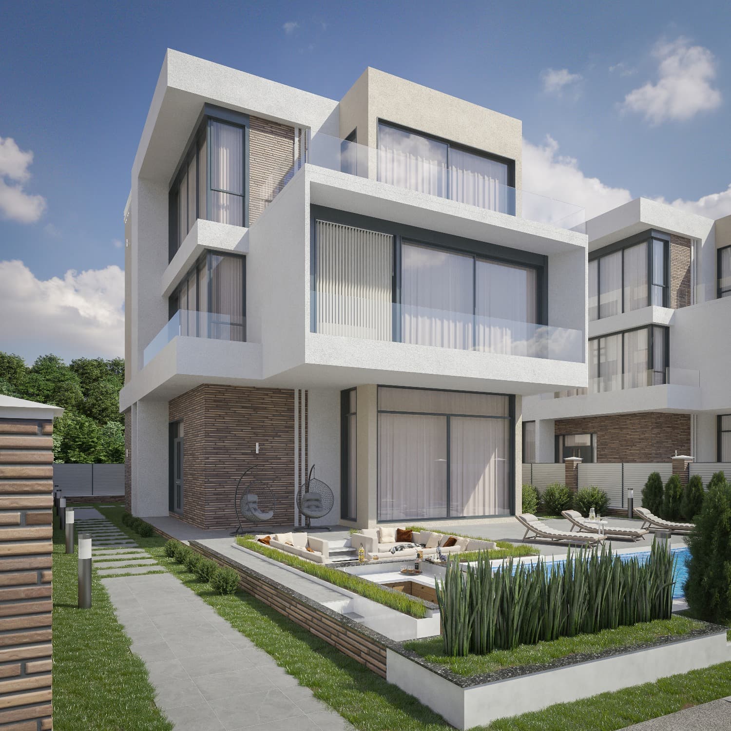 Общая площадь всех этажей с учетом бассейна, террас и балконов - 328,59 м2