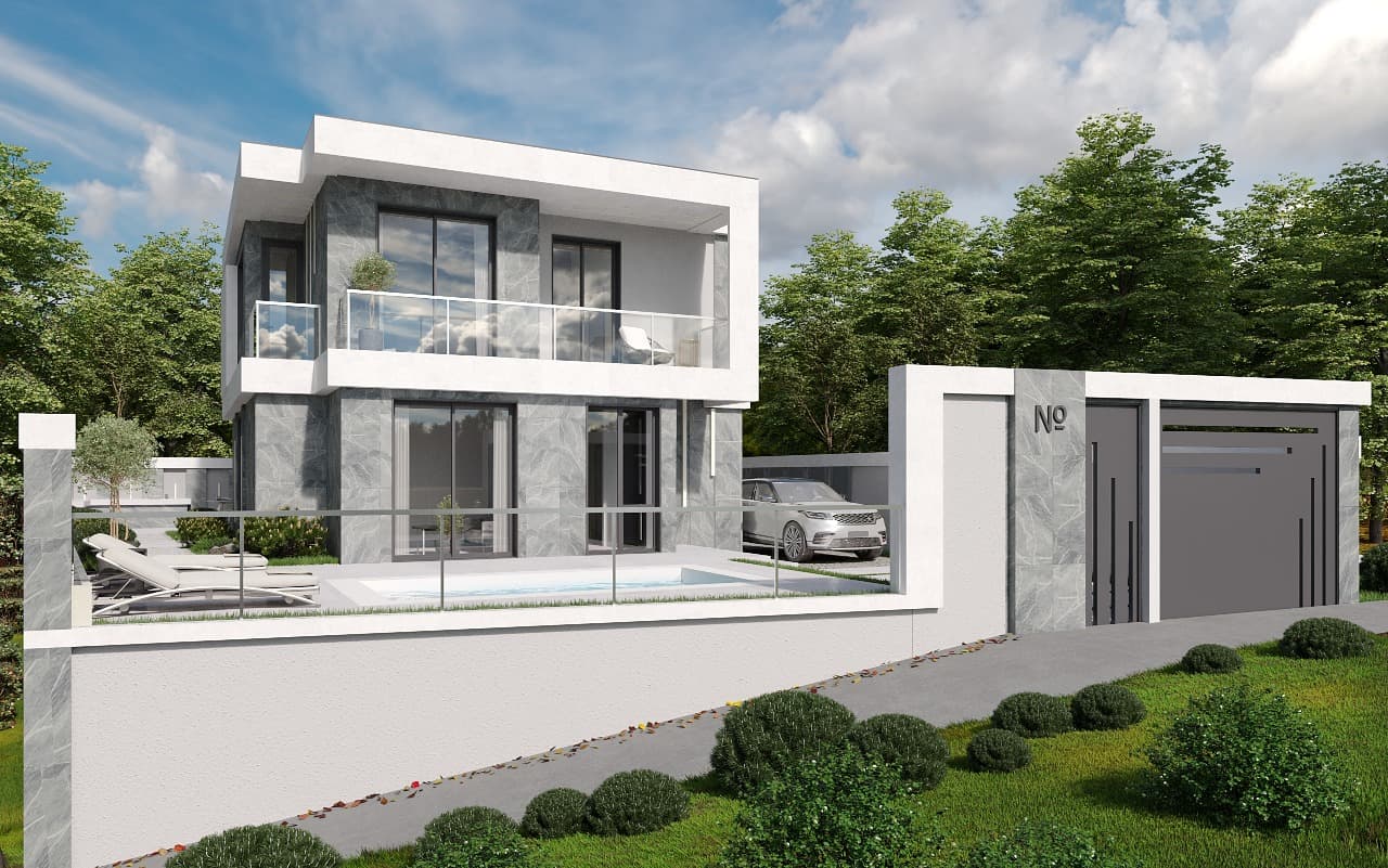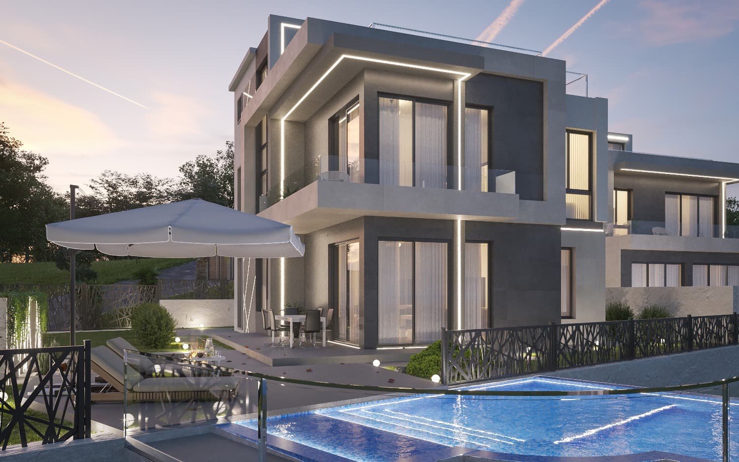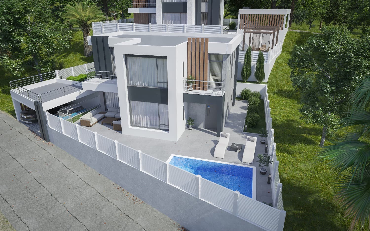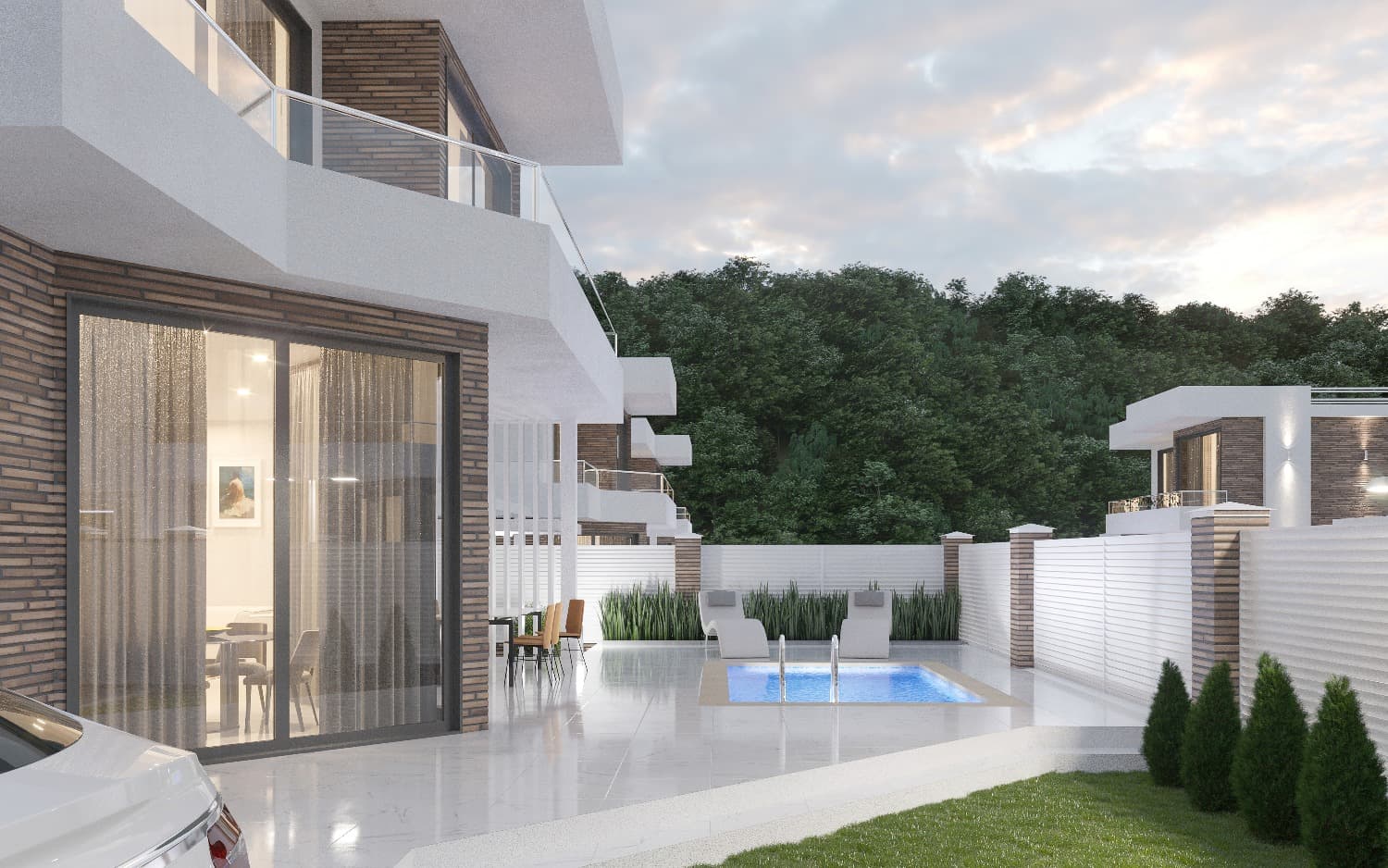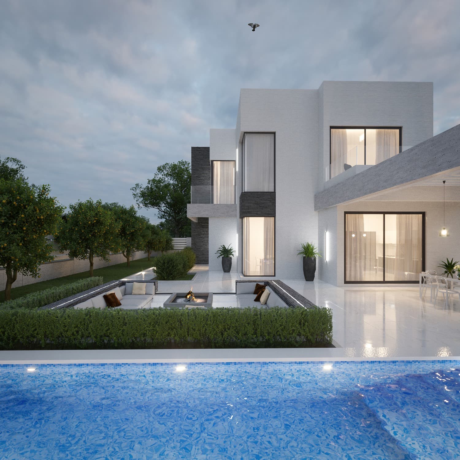 Общая площадь всех этажей с учетом бассейна, террас и балконов - 328,59 м2