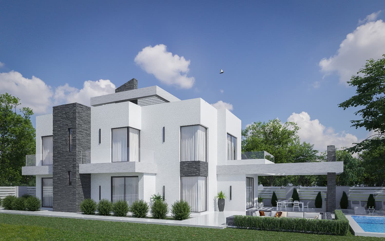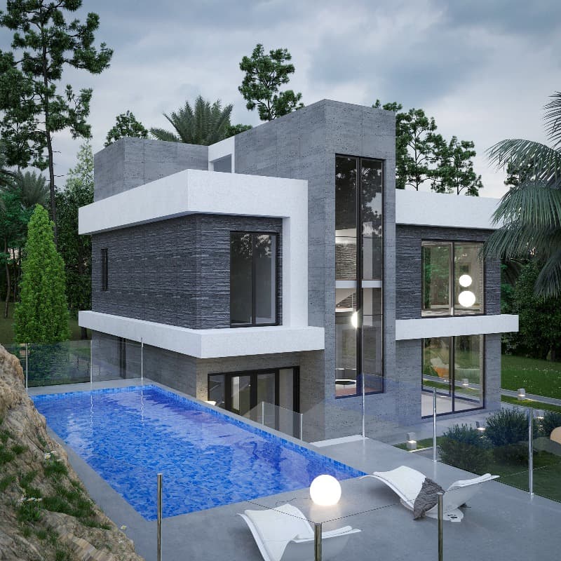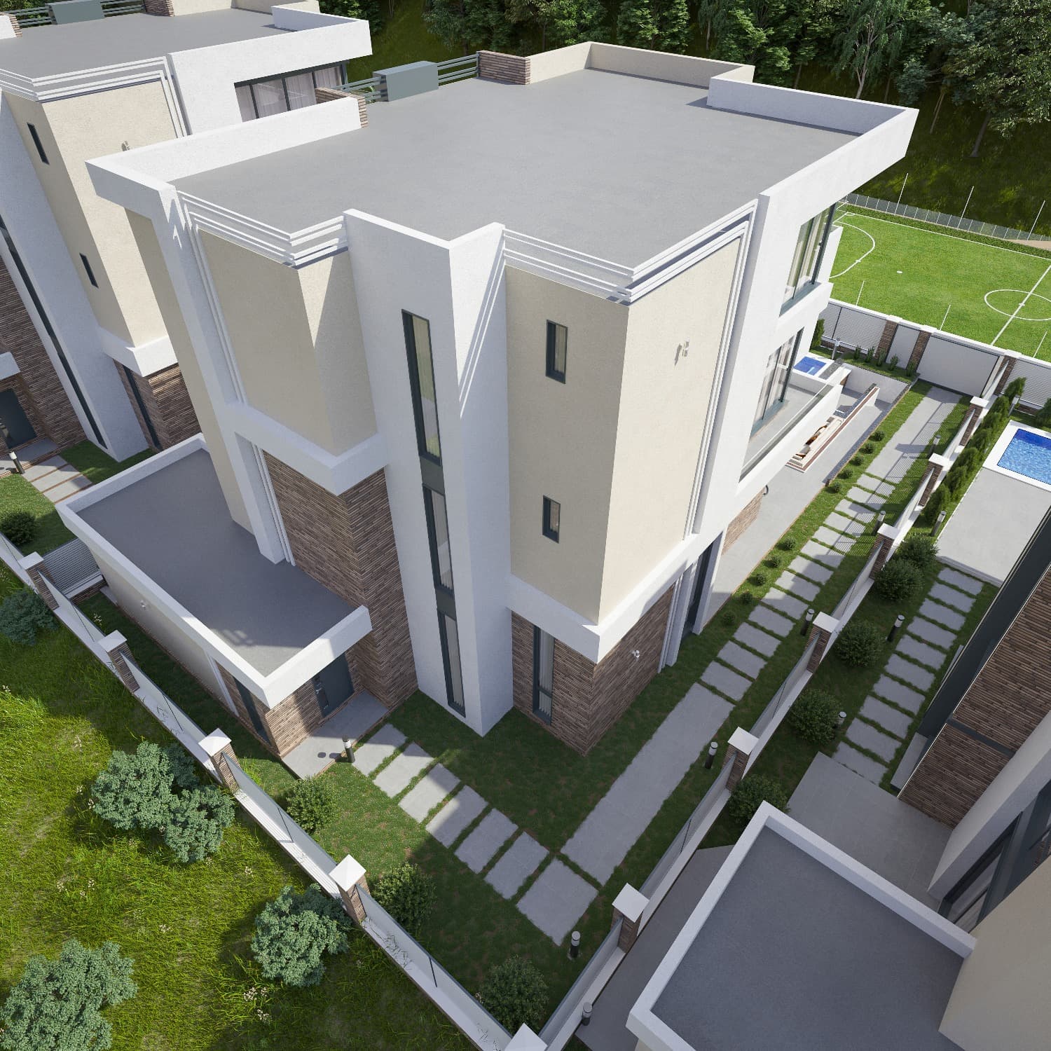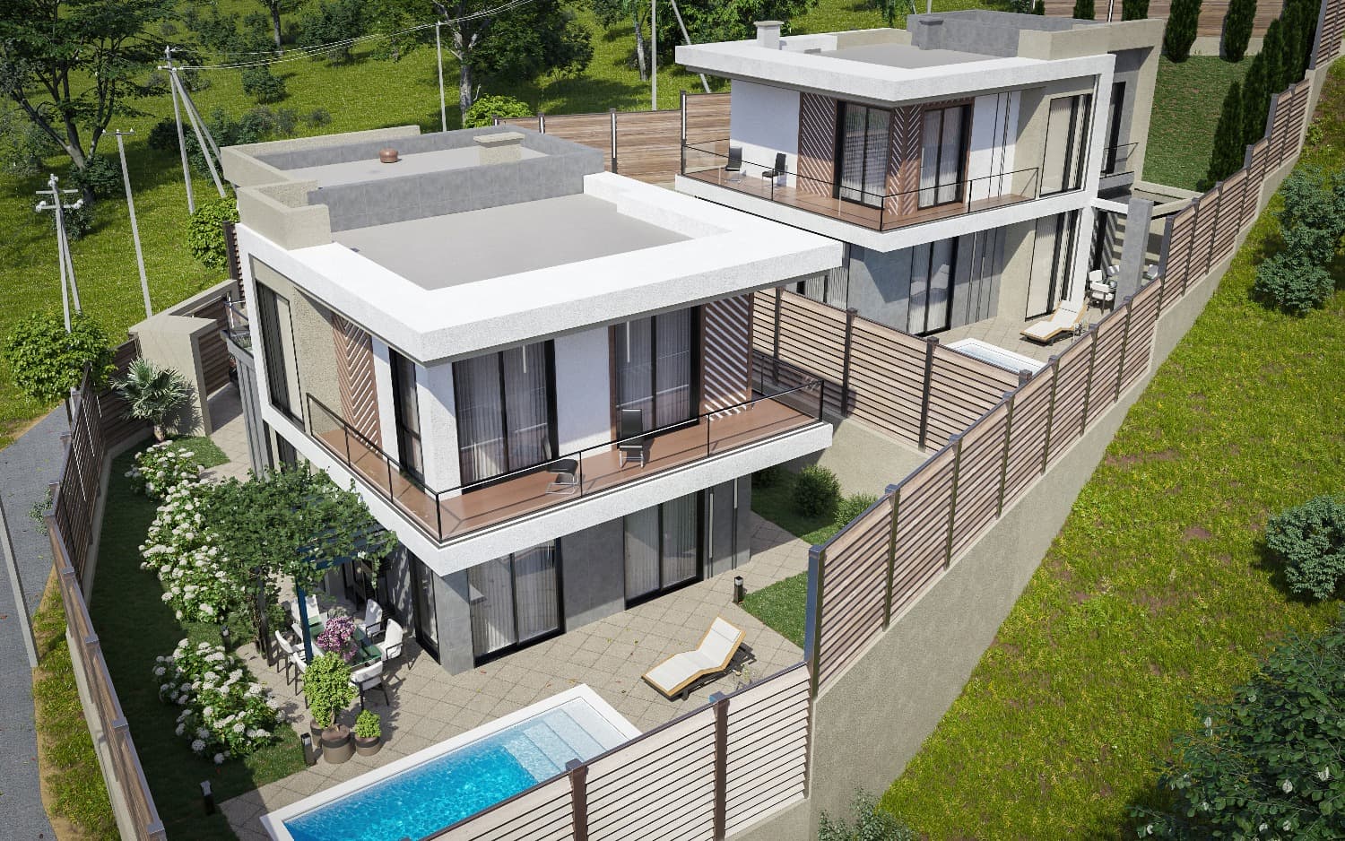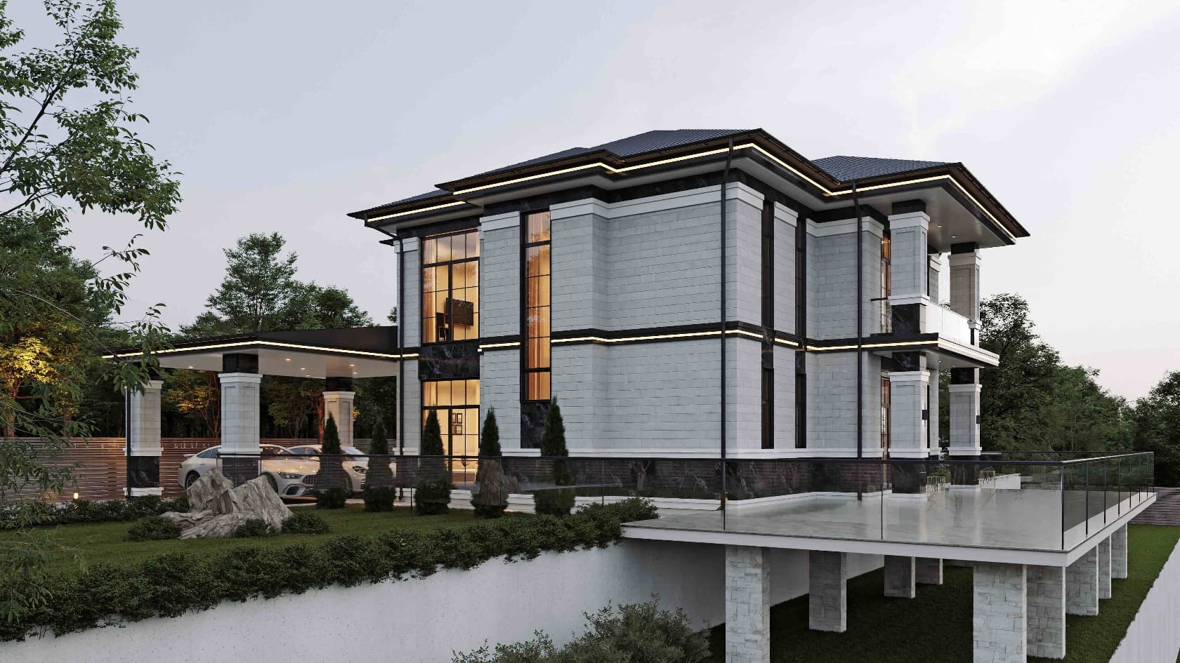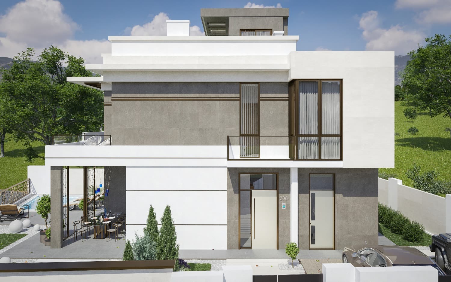 Общая площадь всех этажей с учетом бассейна, террас и балконов - 328,59 м2
