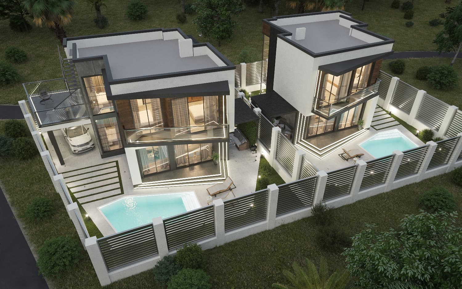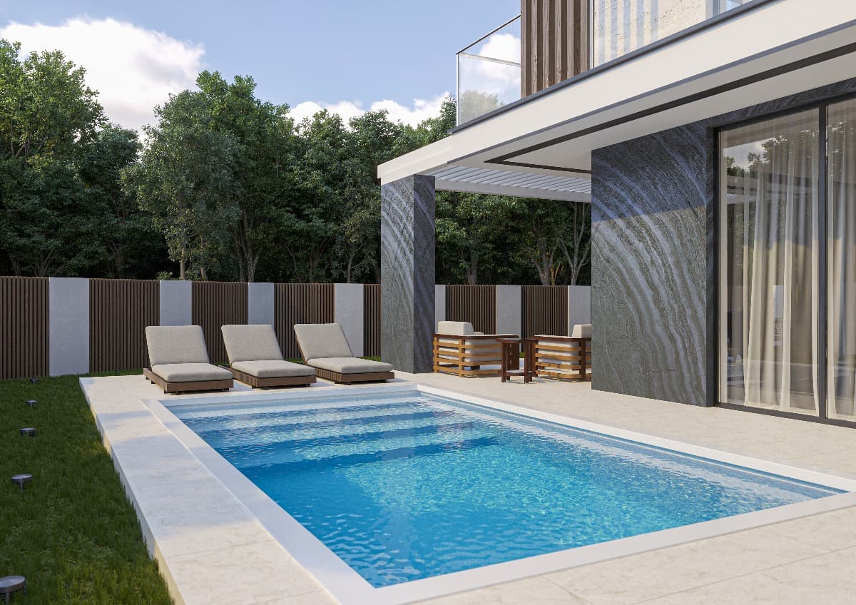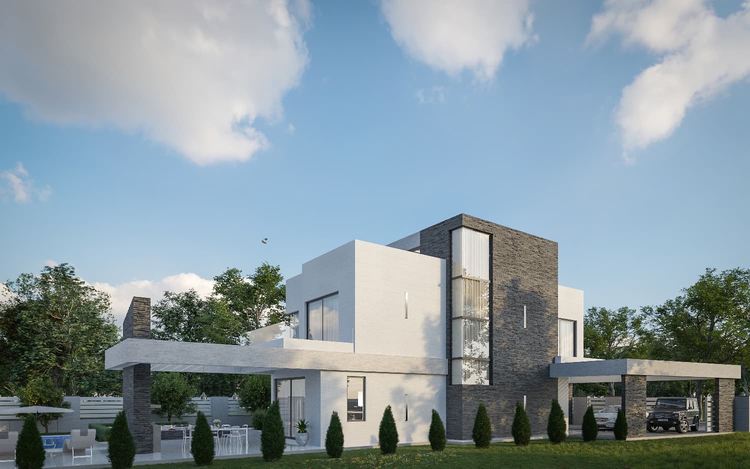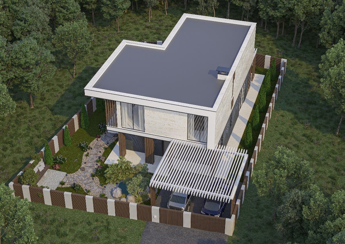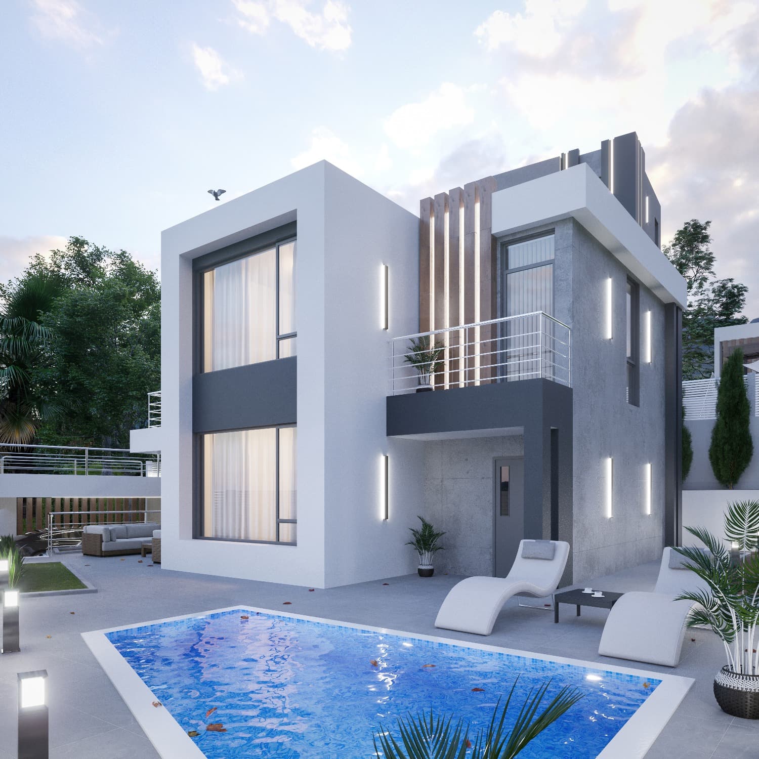 Общая площадь всех этажей с учетом бассейна, террас и балконов - 328,59 м2