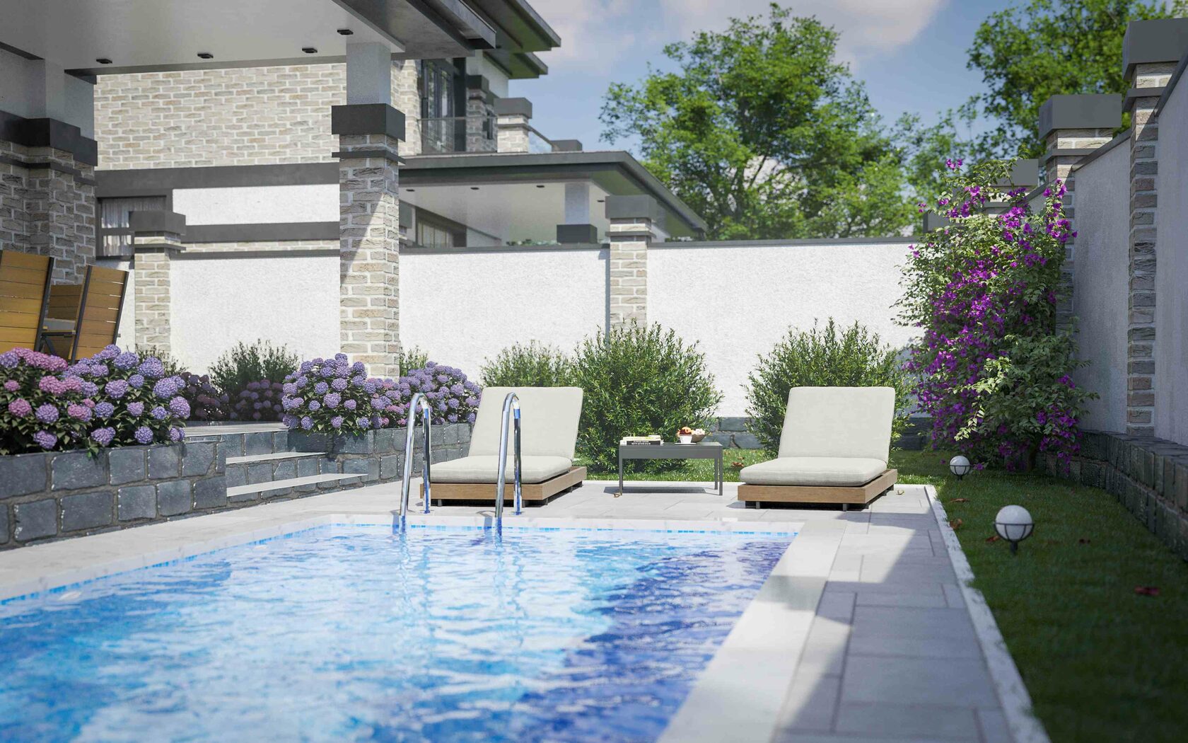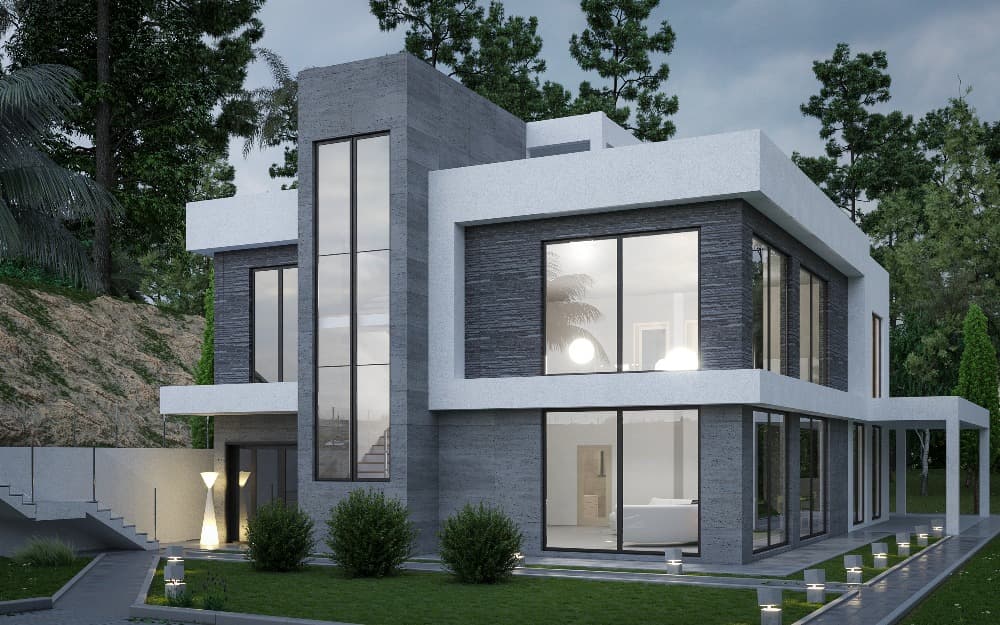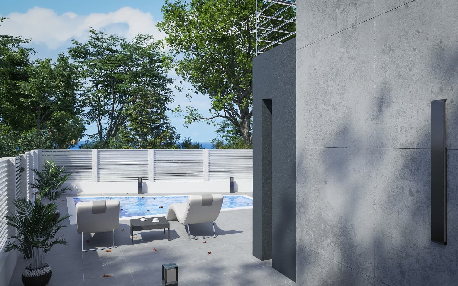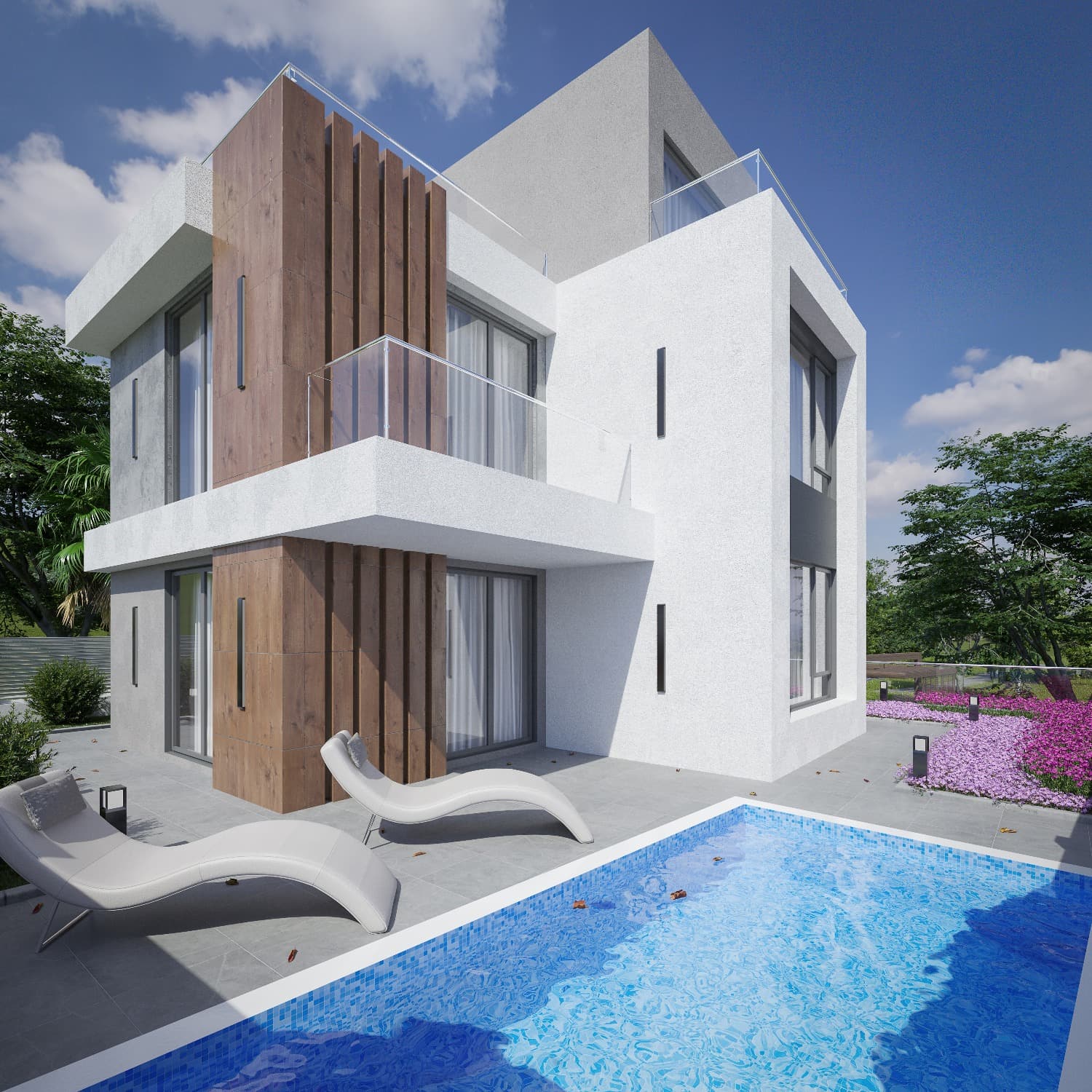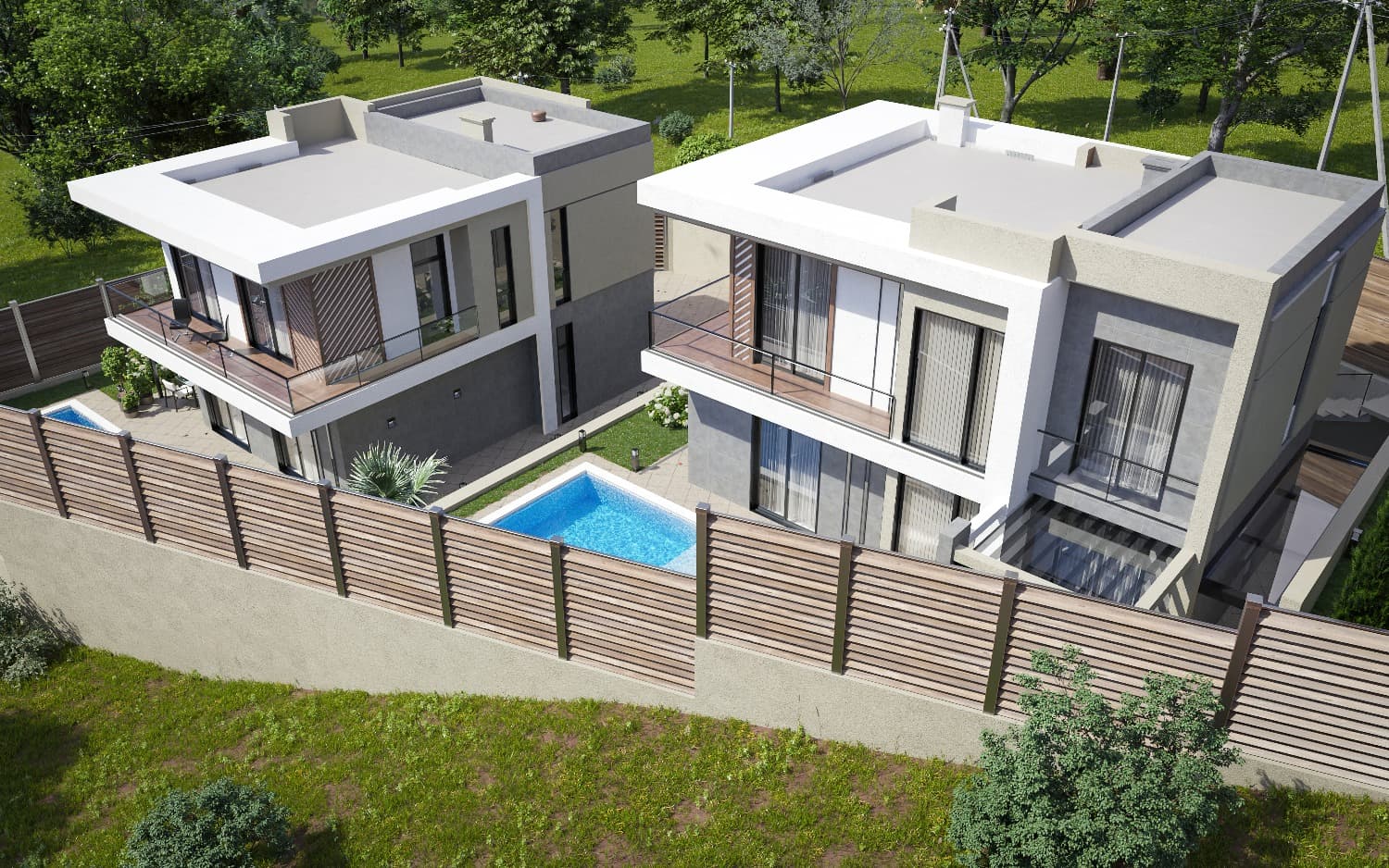 Общая площадь всех этажей с учетом бассейна, террас и балконов - 328,59 м2
