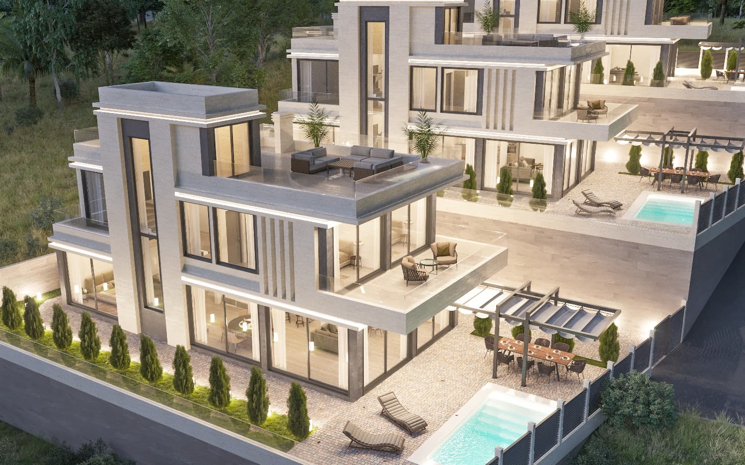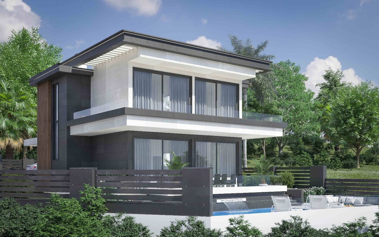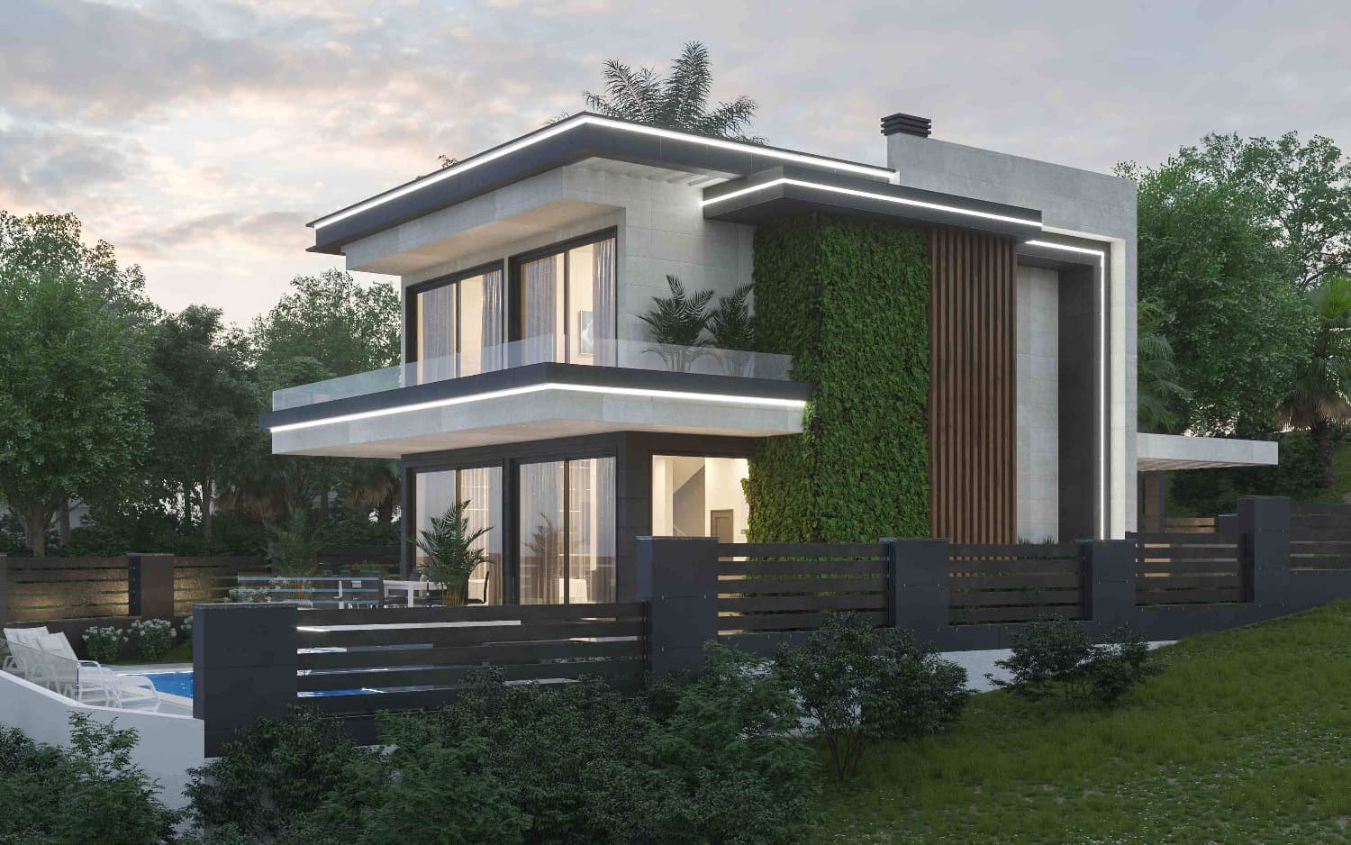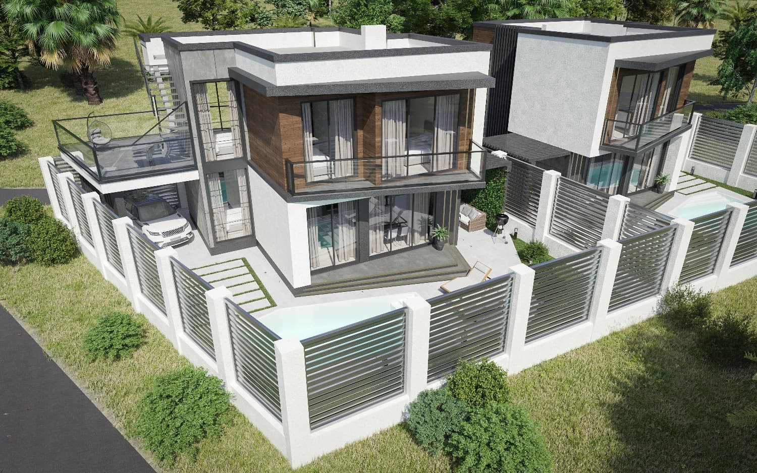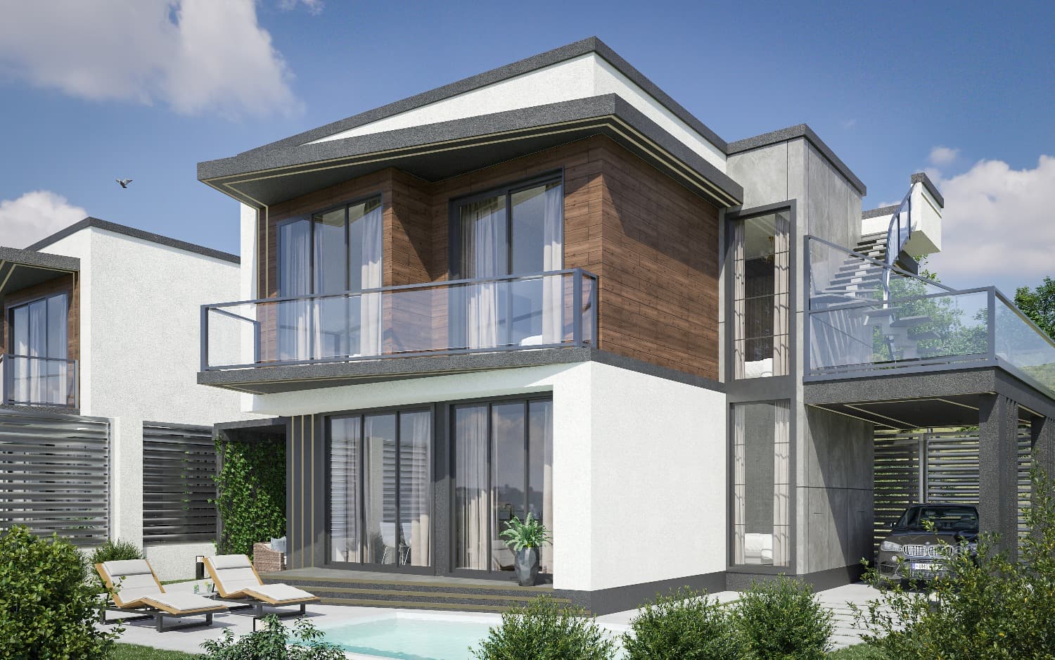 Общая площадь всех этажей с учетом бассейна, террас и балконов - 328,59 м2