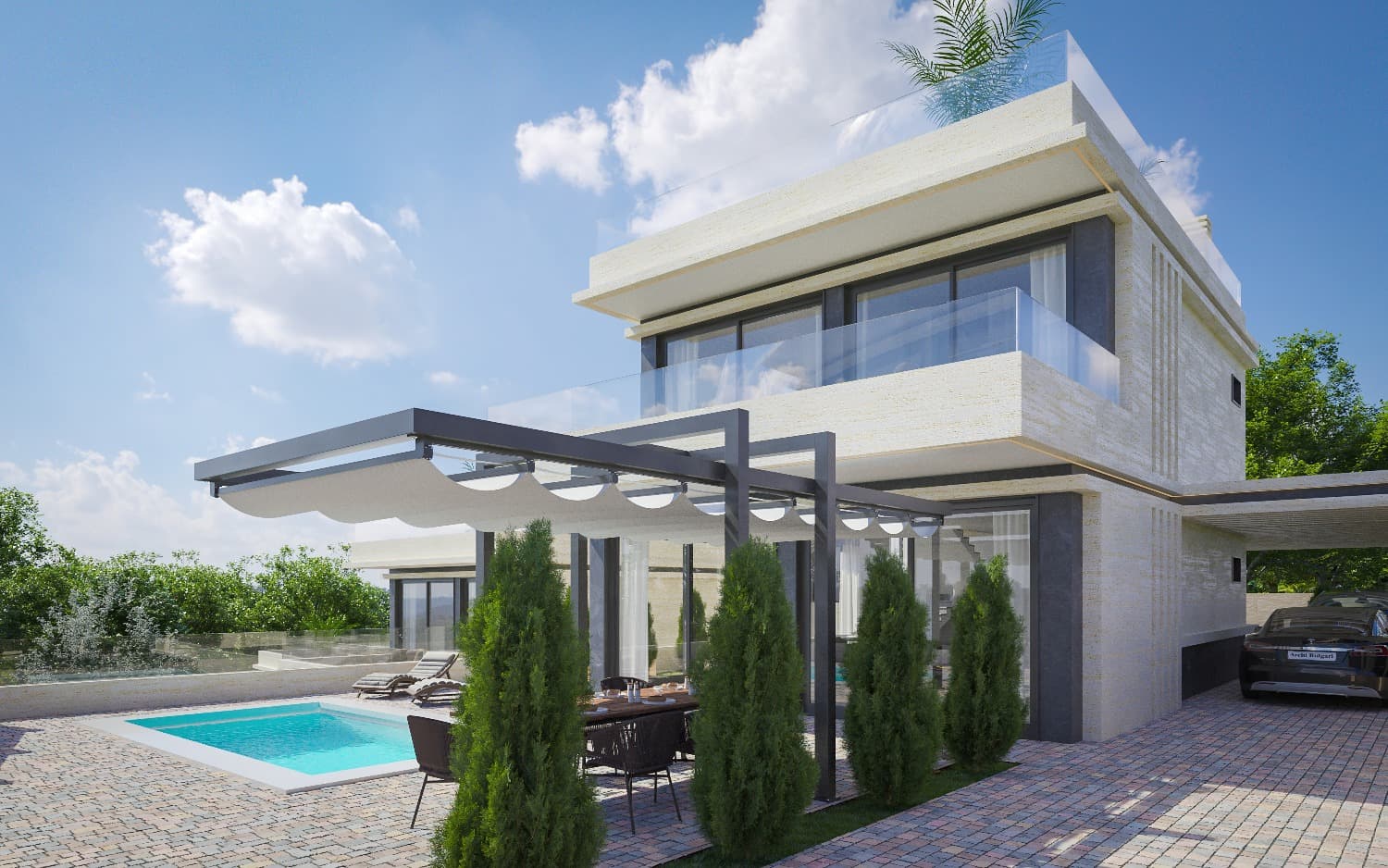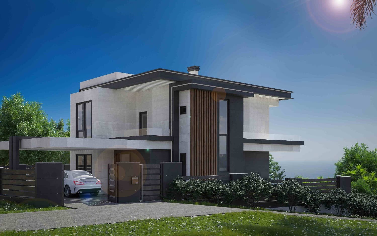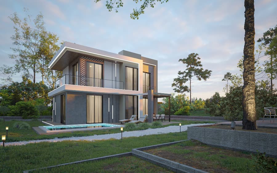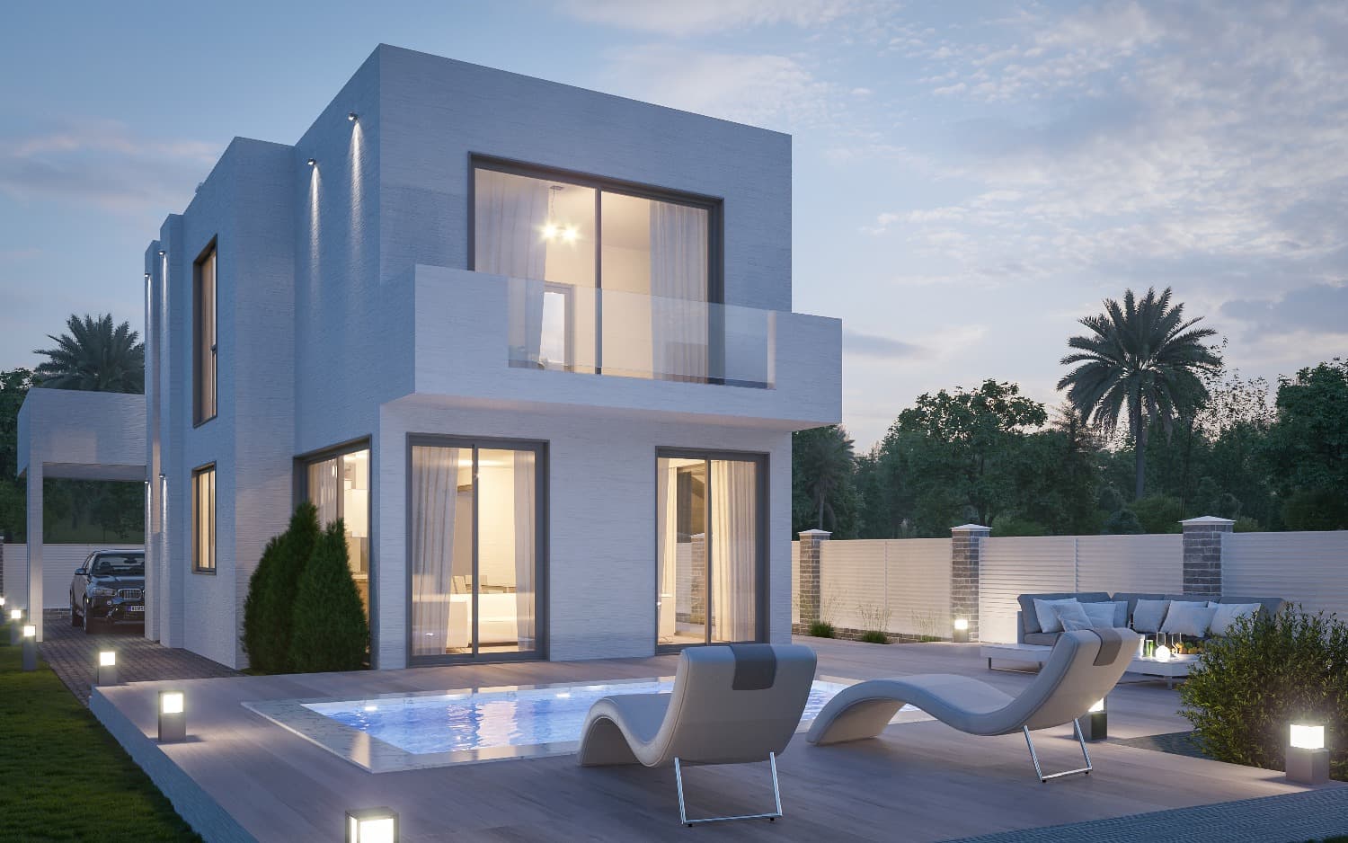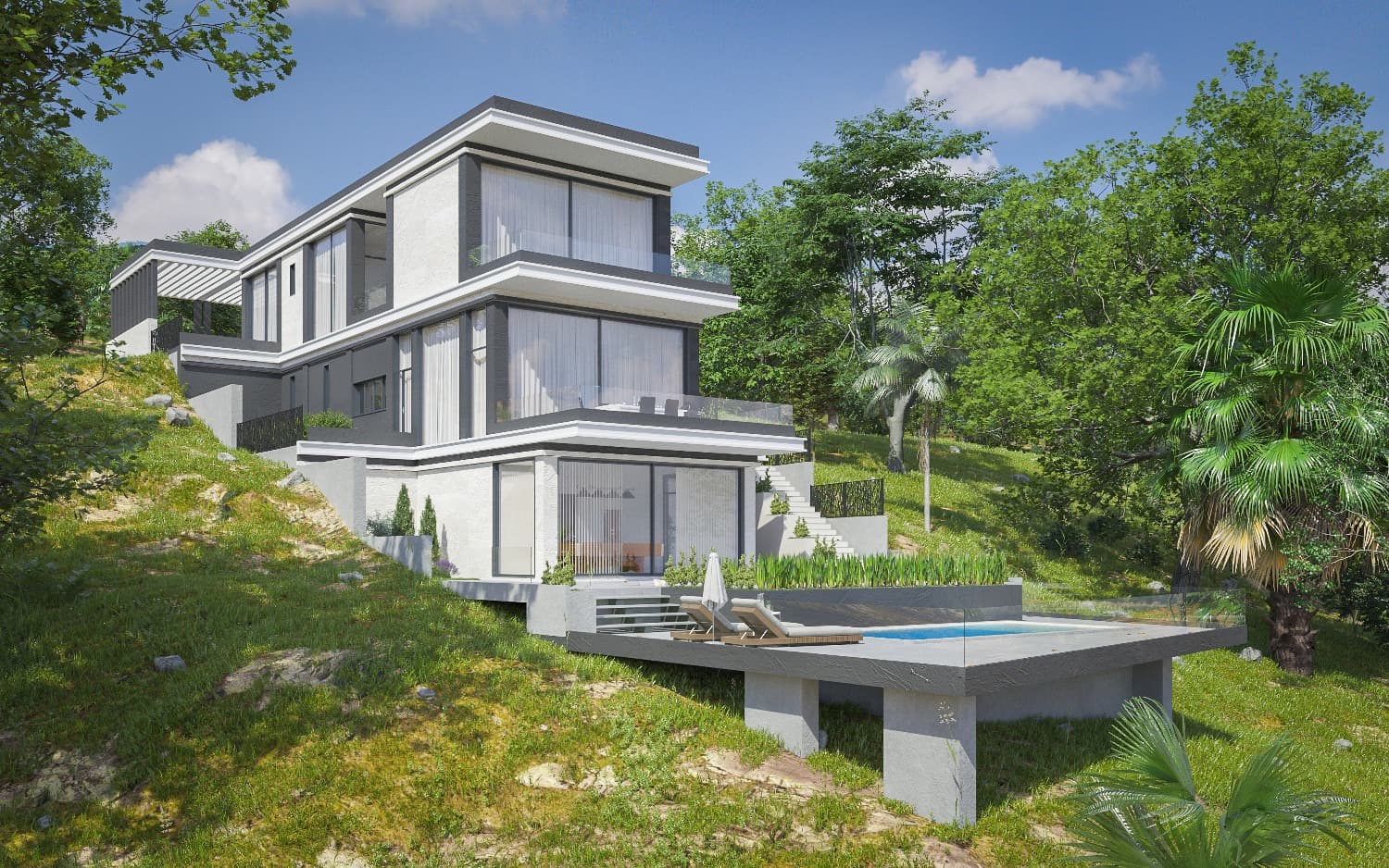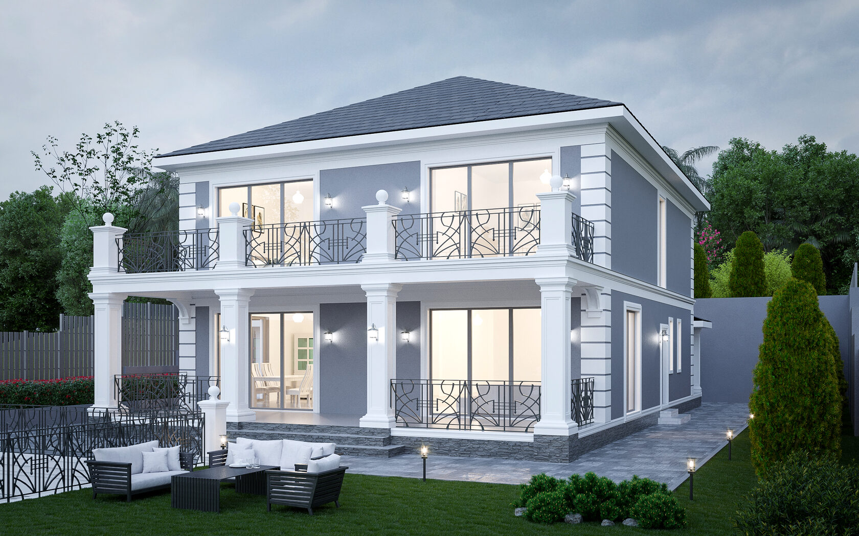 Общая площадь всех этажей с учетом бассейна, террас и балконов - 328,59 м2