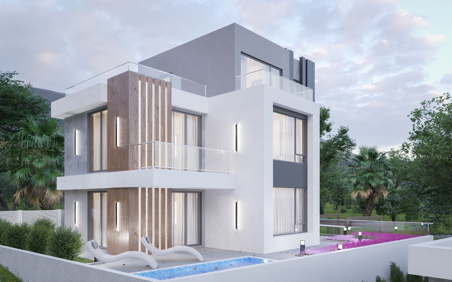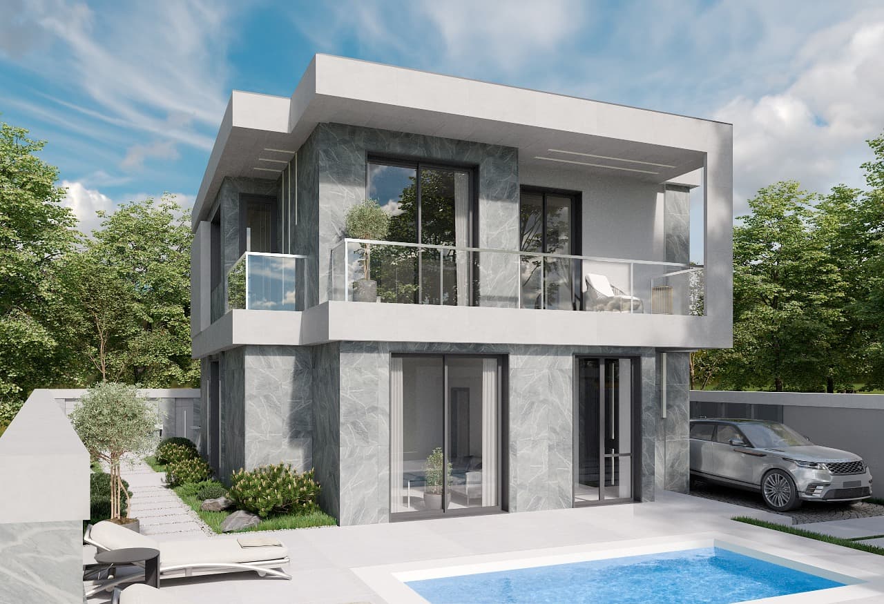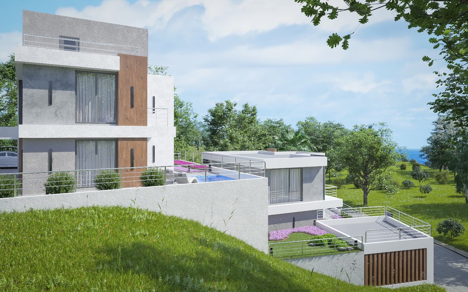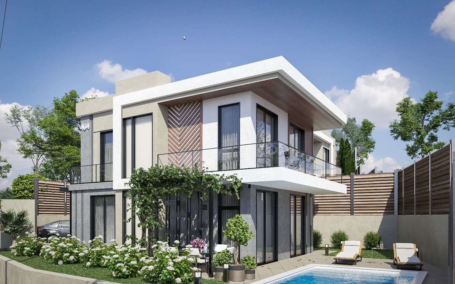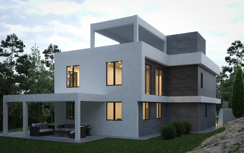Общая площадь всех этажей с учетом бассейна, террас и балконов - 328,59 м2