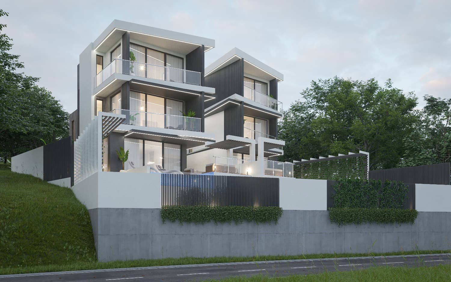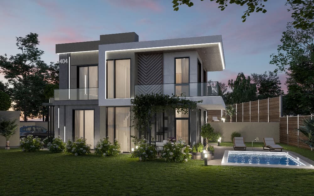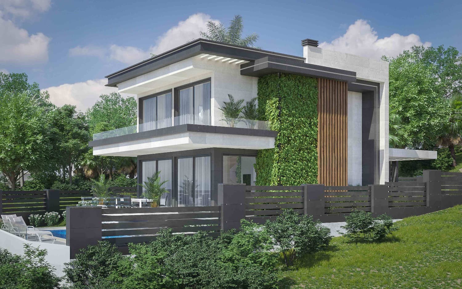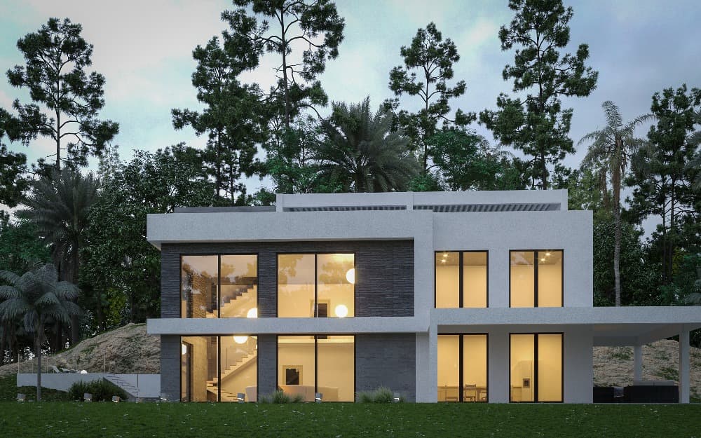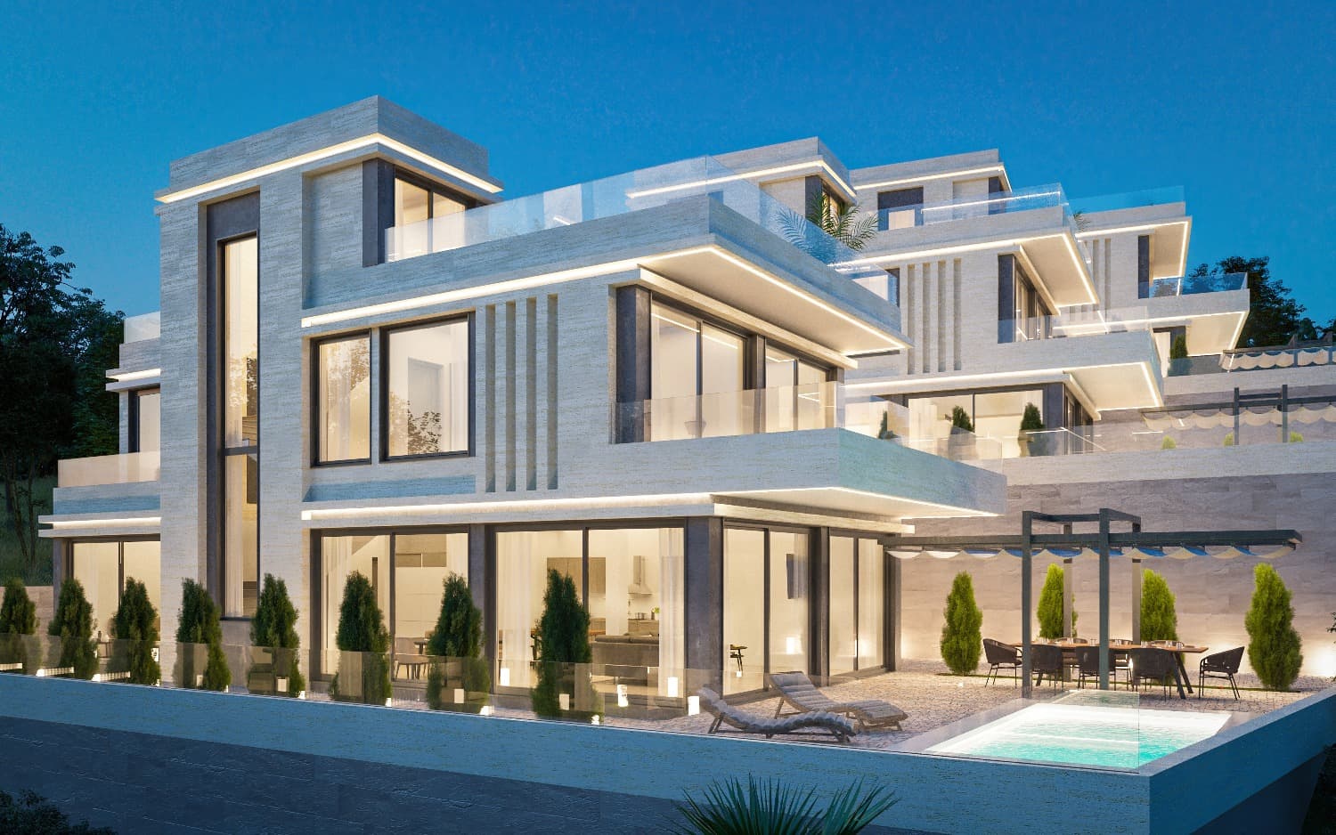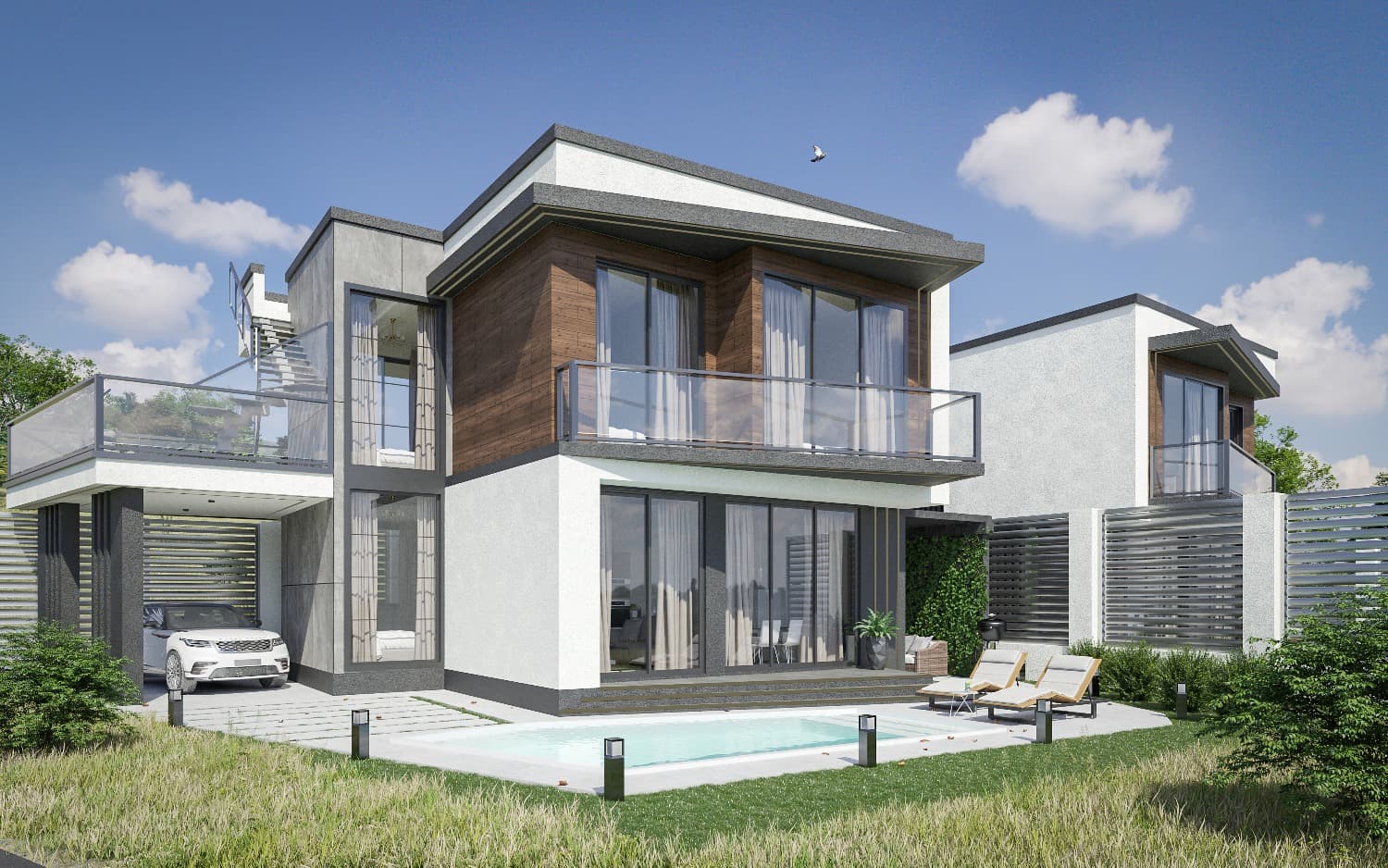 Общая площадь всех этажей с учетом бассейна, террас и балконов - 328,59 м2