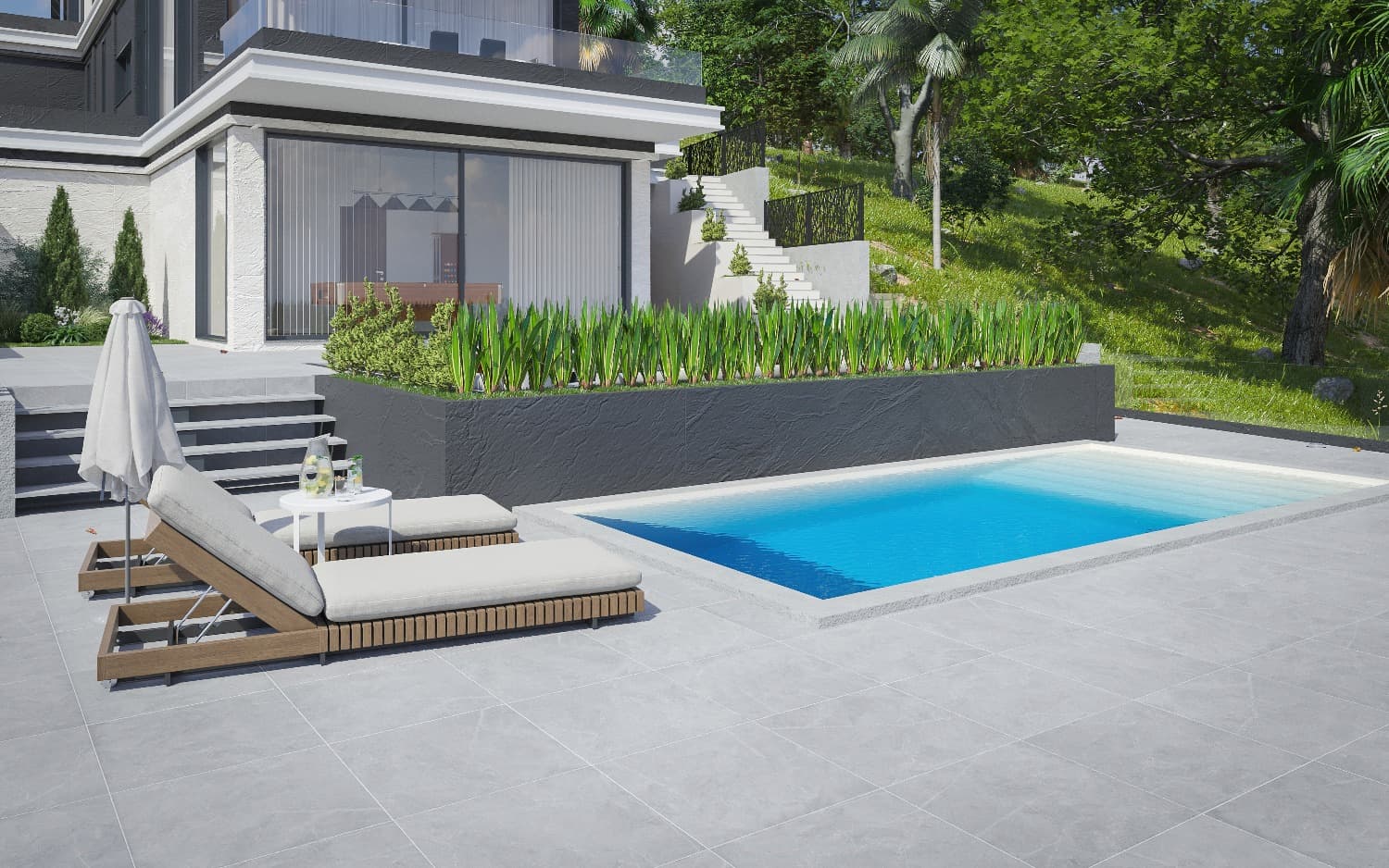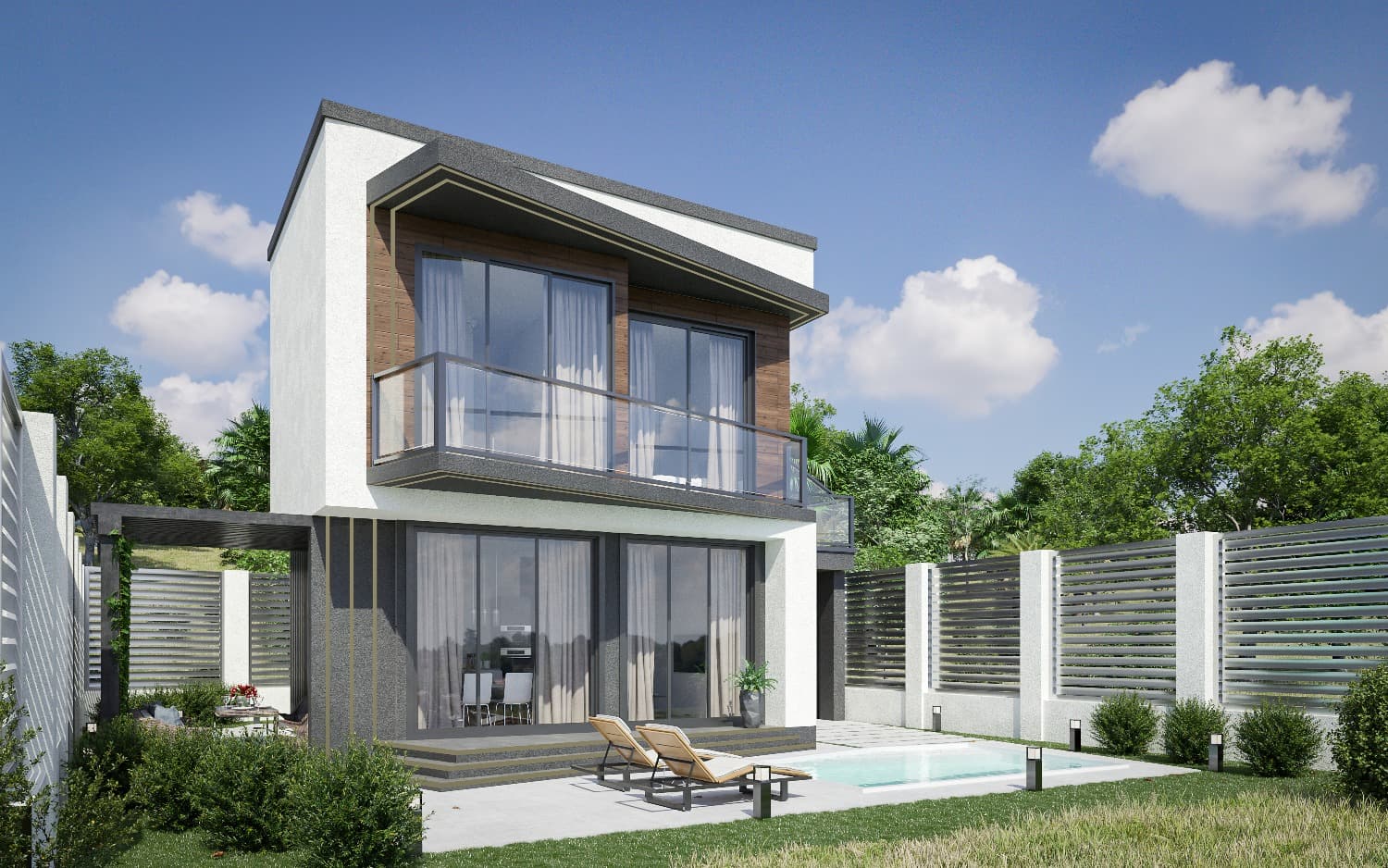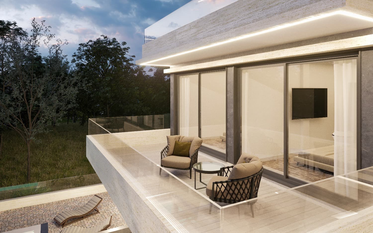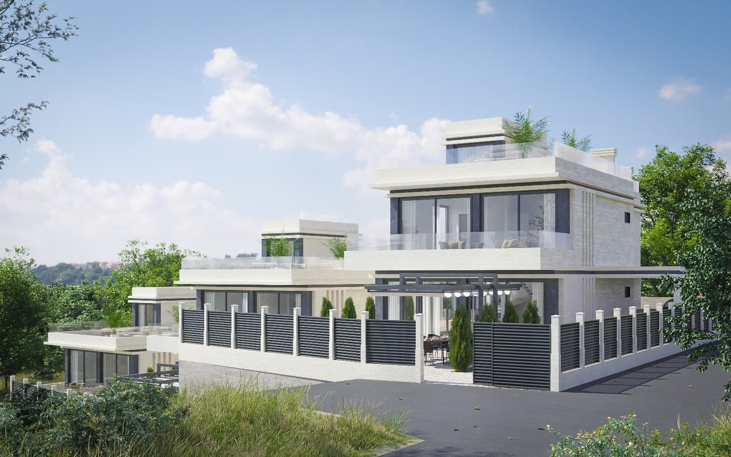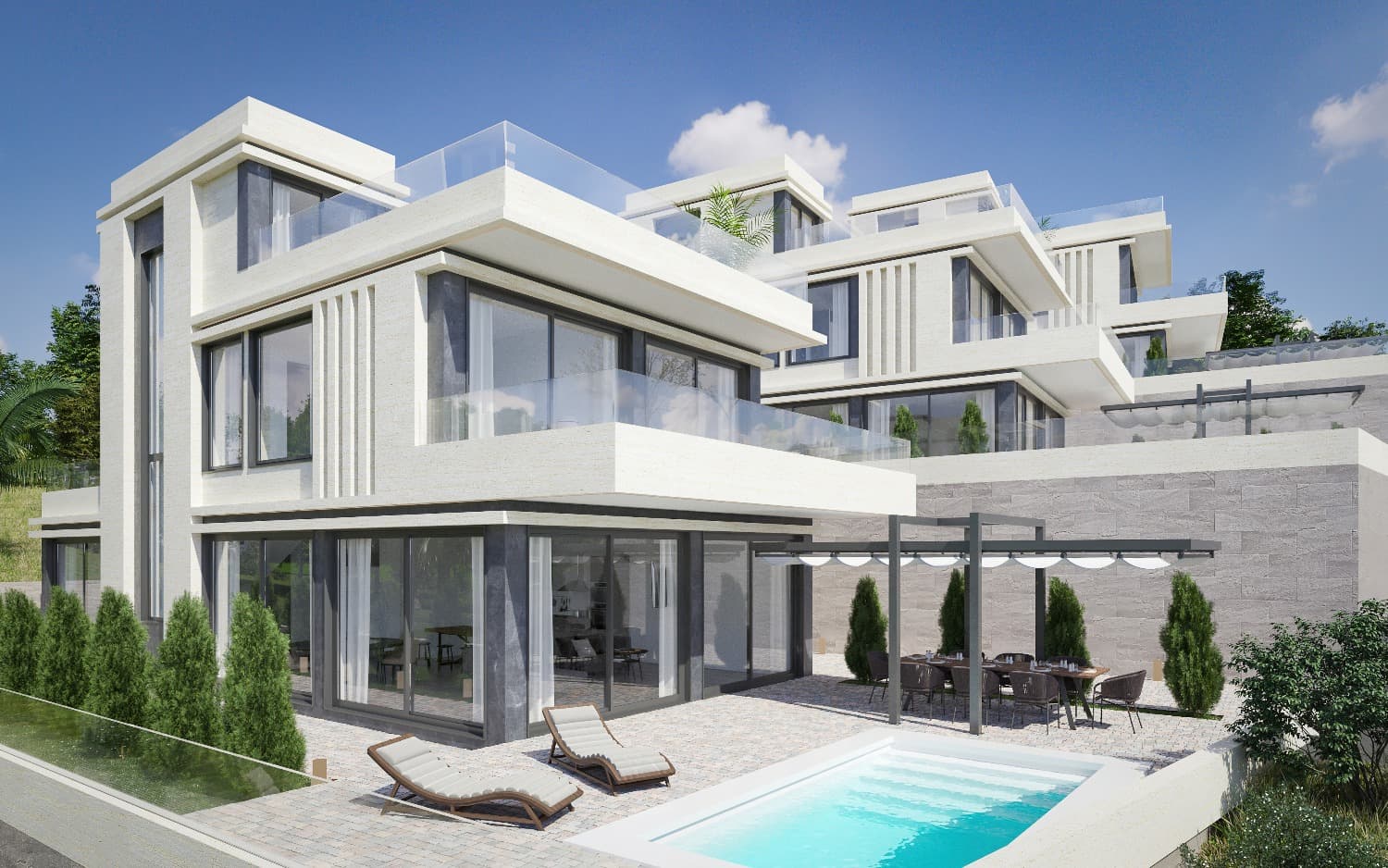 Общая площадь всех этажей с учетом бассейна, террас и балконов - 328,59 м2