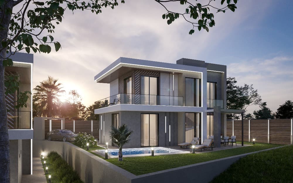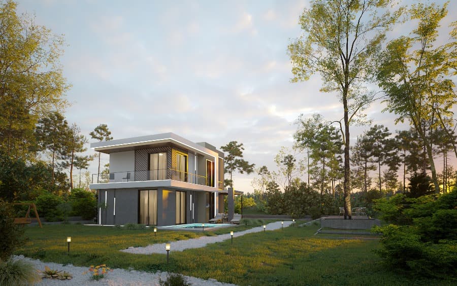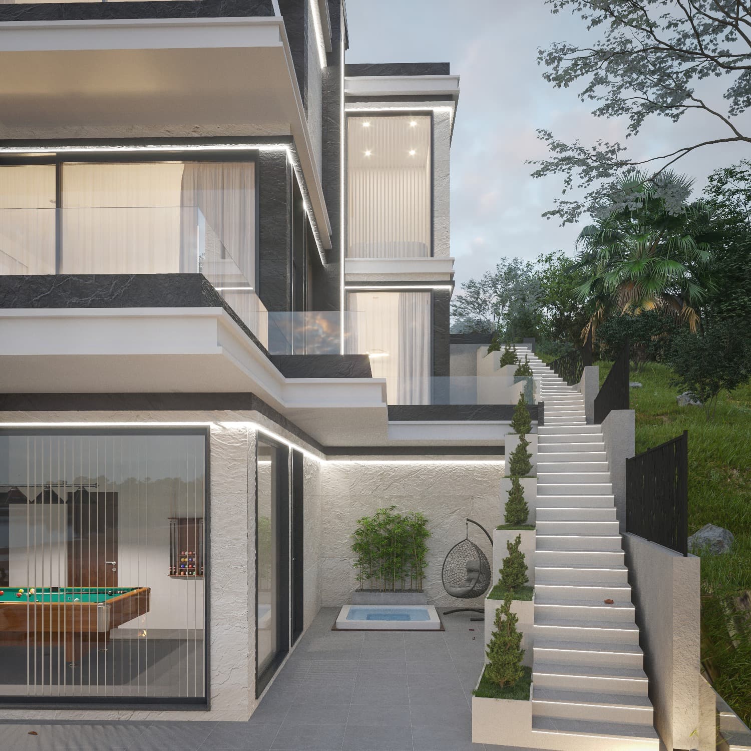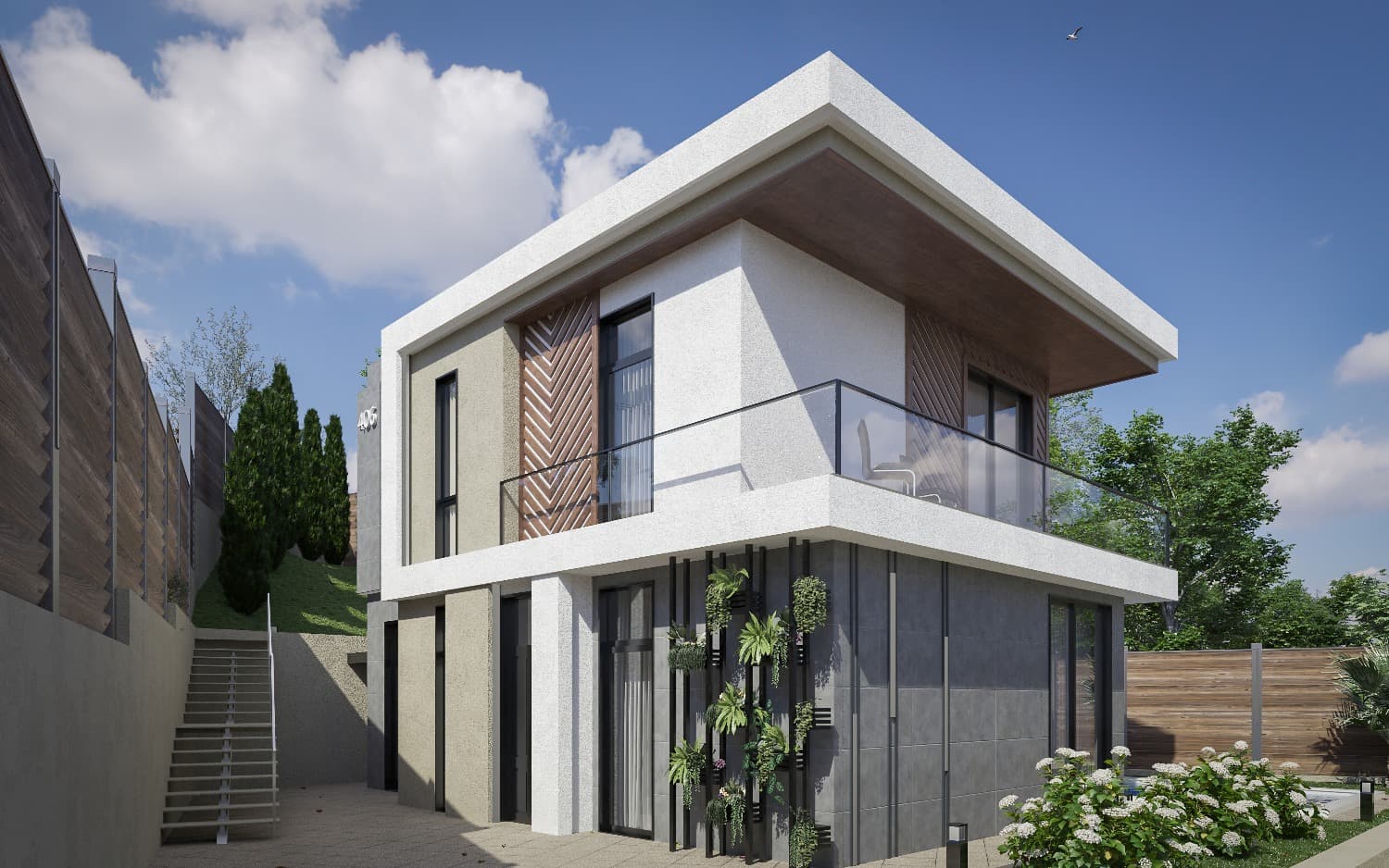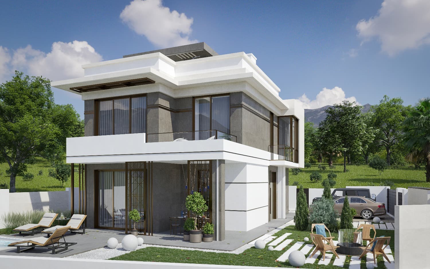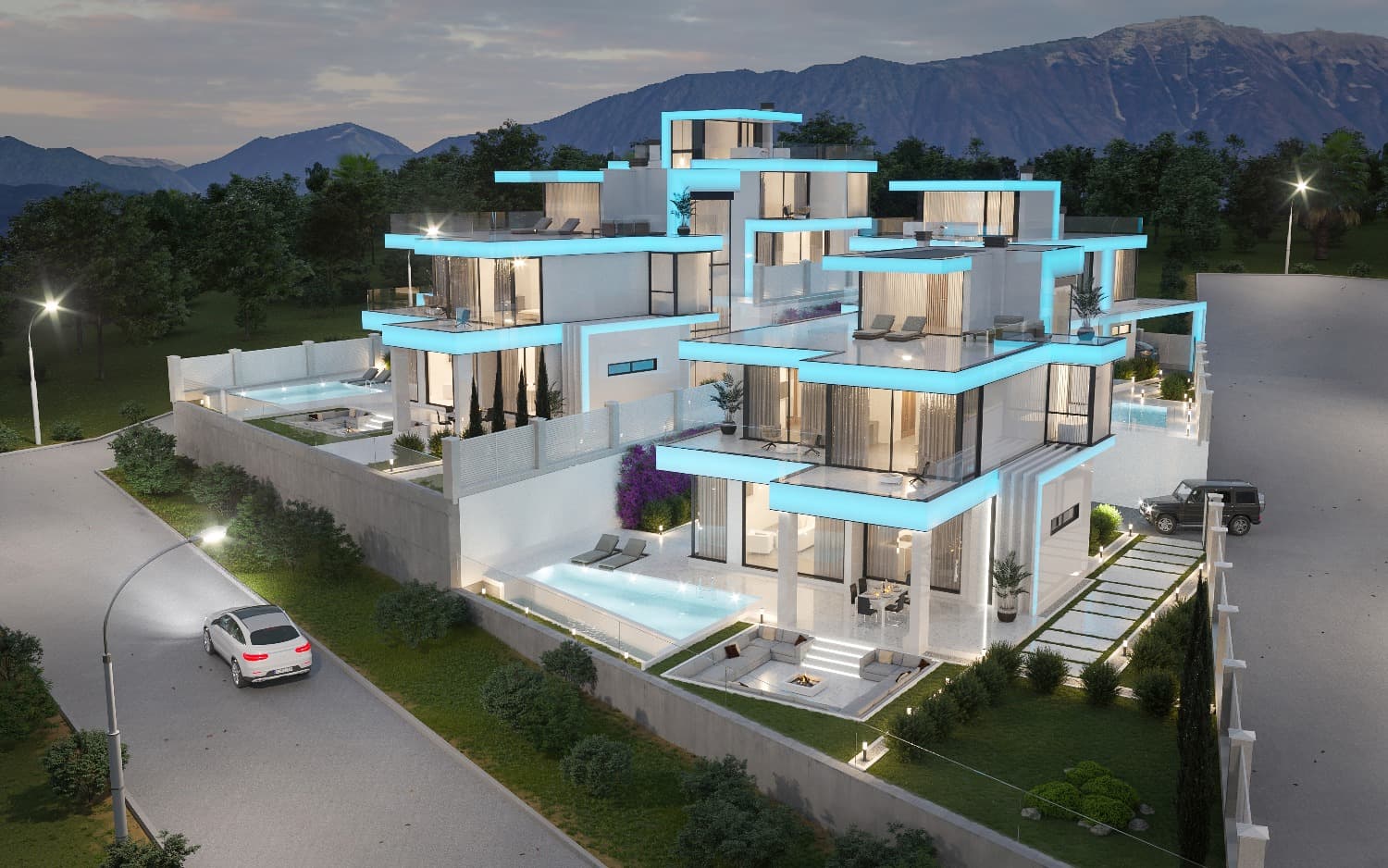 Общая площадь всех этажей с учетом бассейна, террас и балконов - 328,59 м2