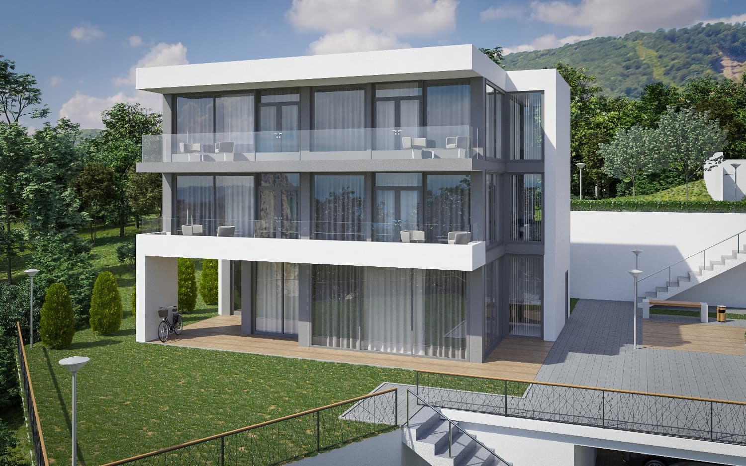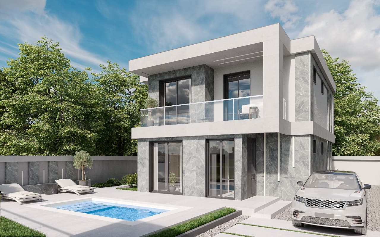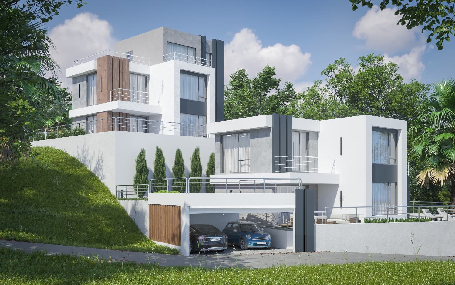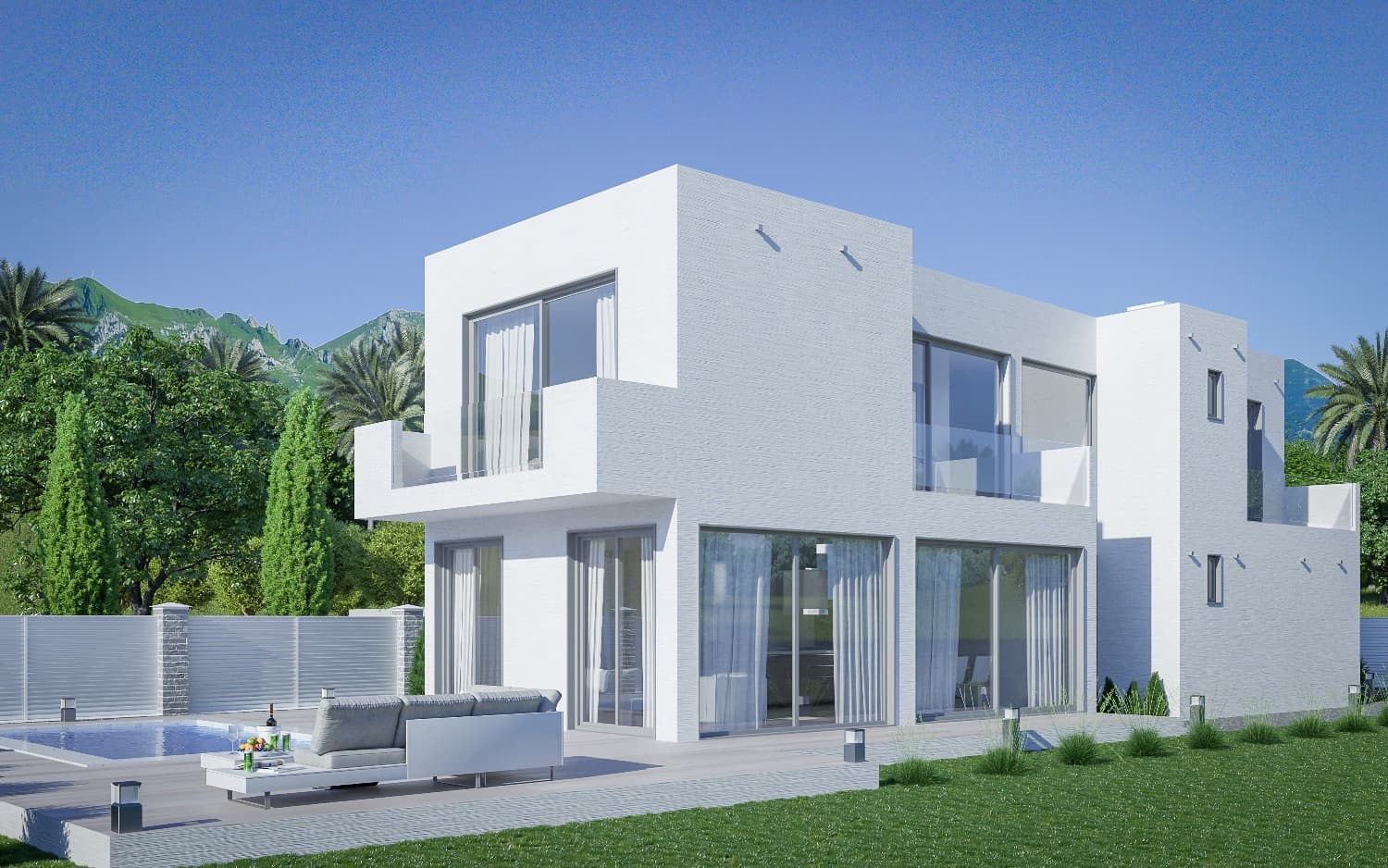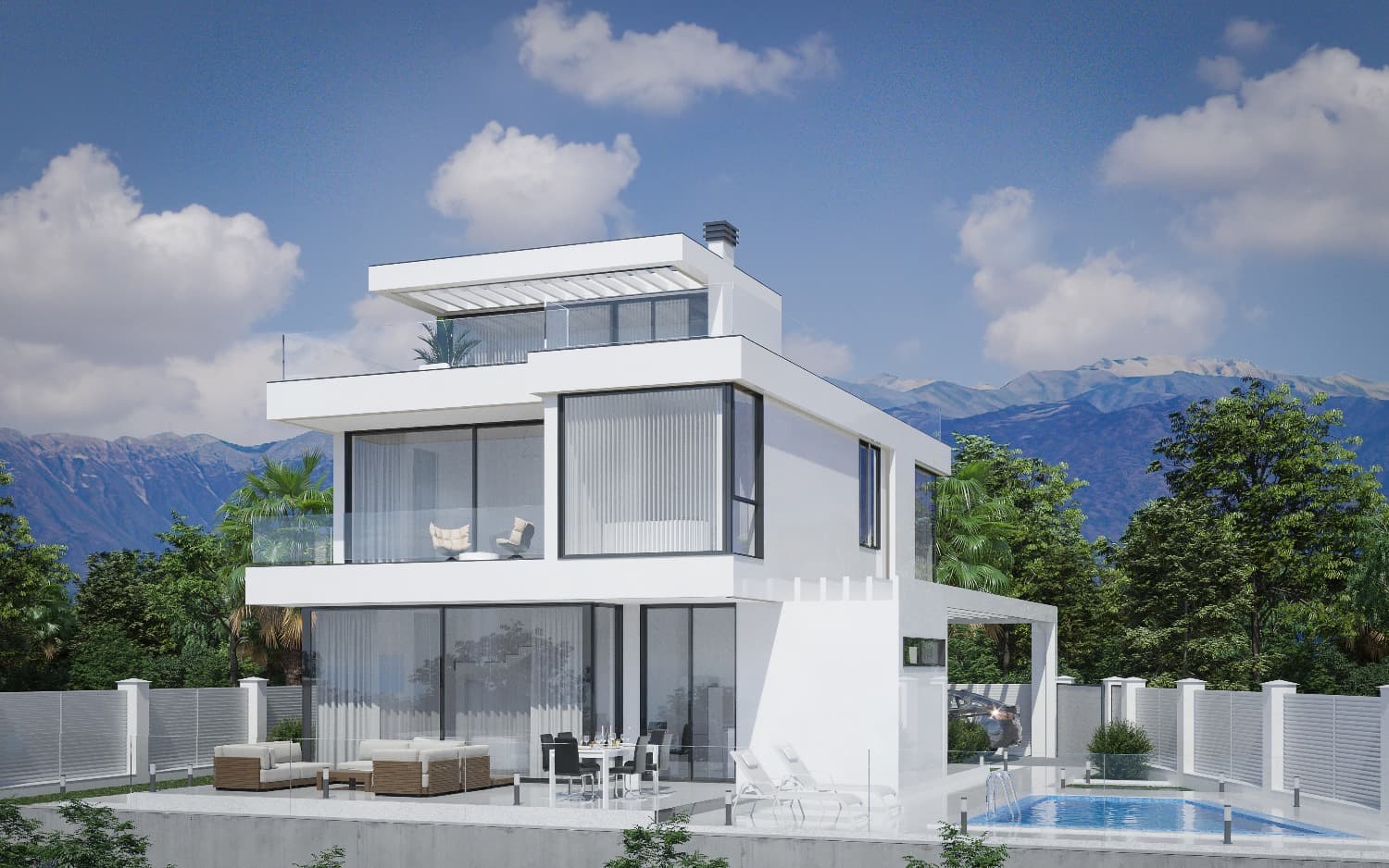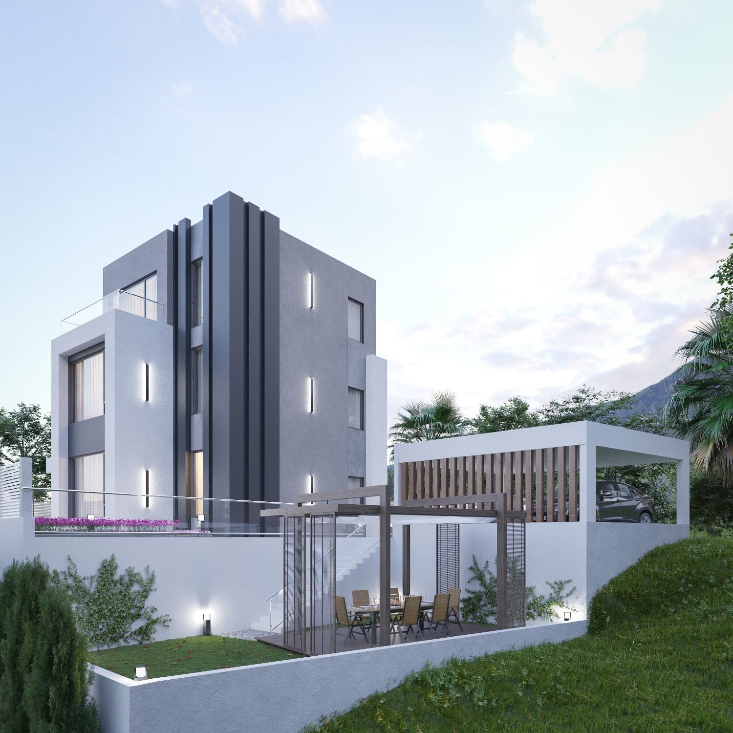 Общая площадь всех этажей с учетом бассейна, террас и балконов - 328,59 м2