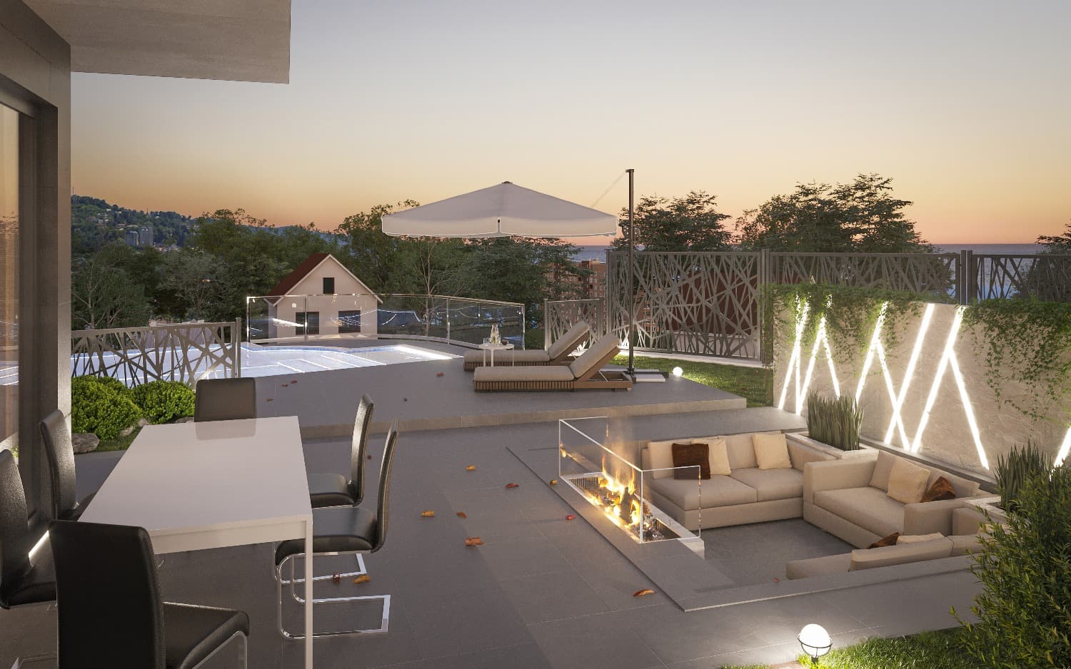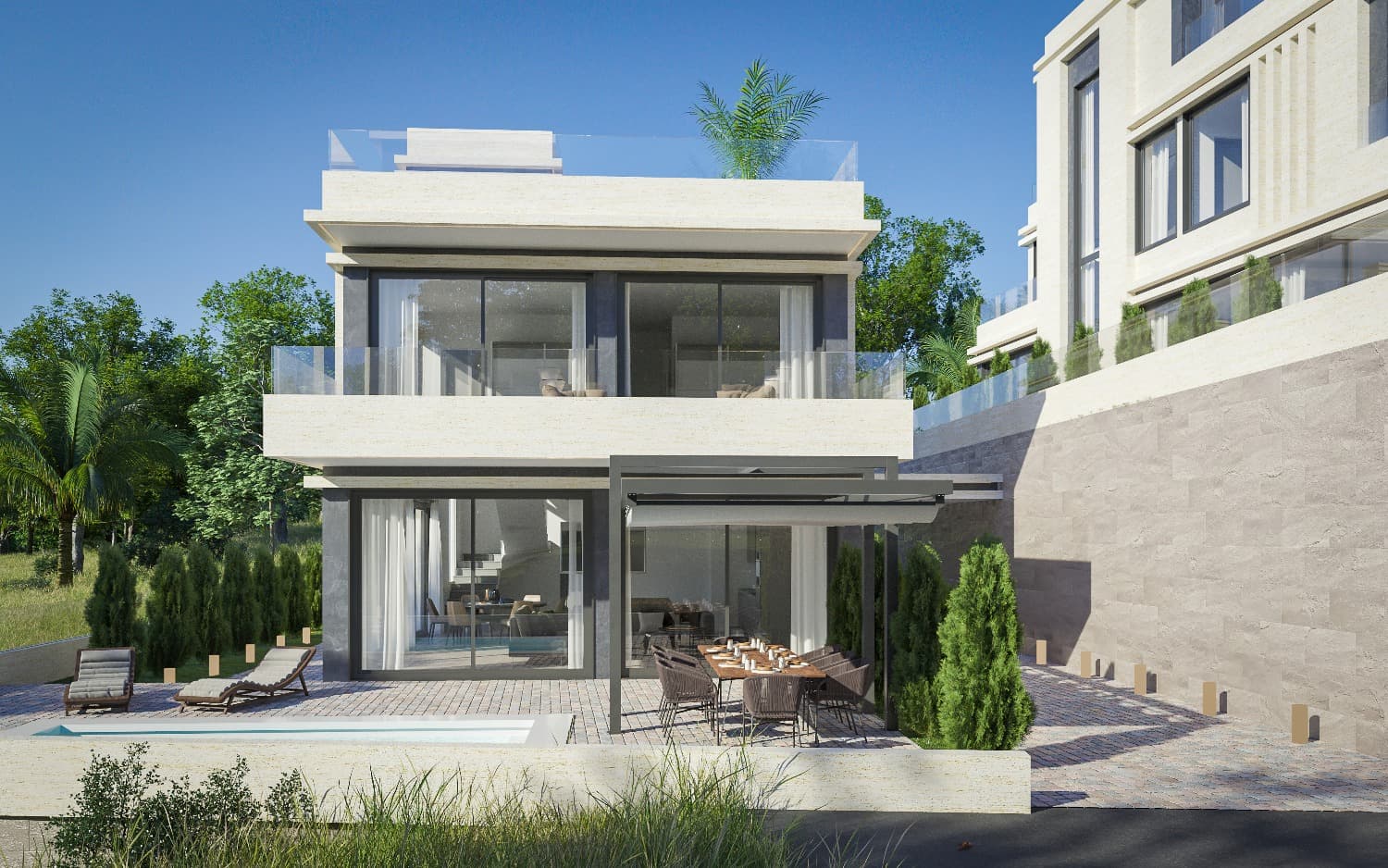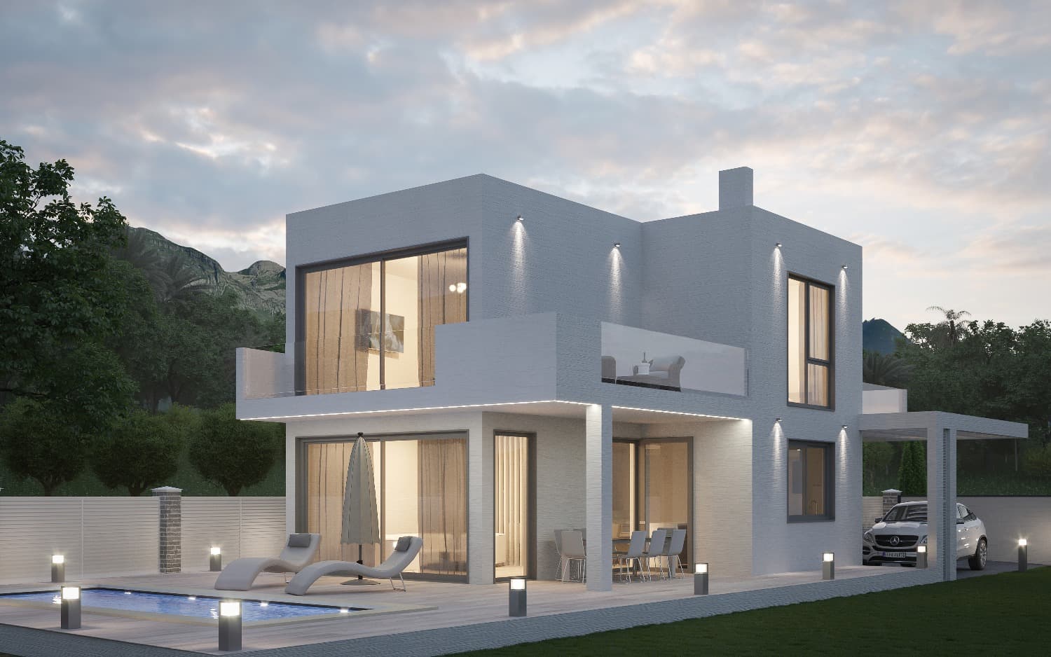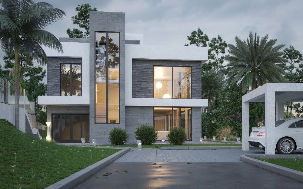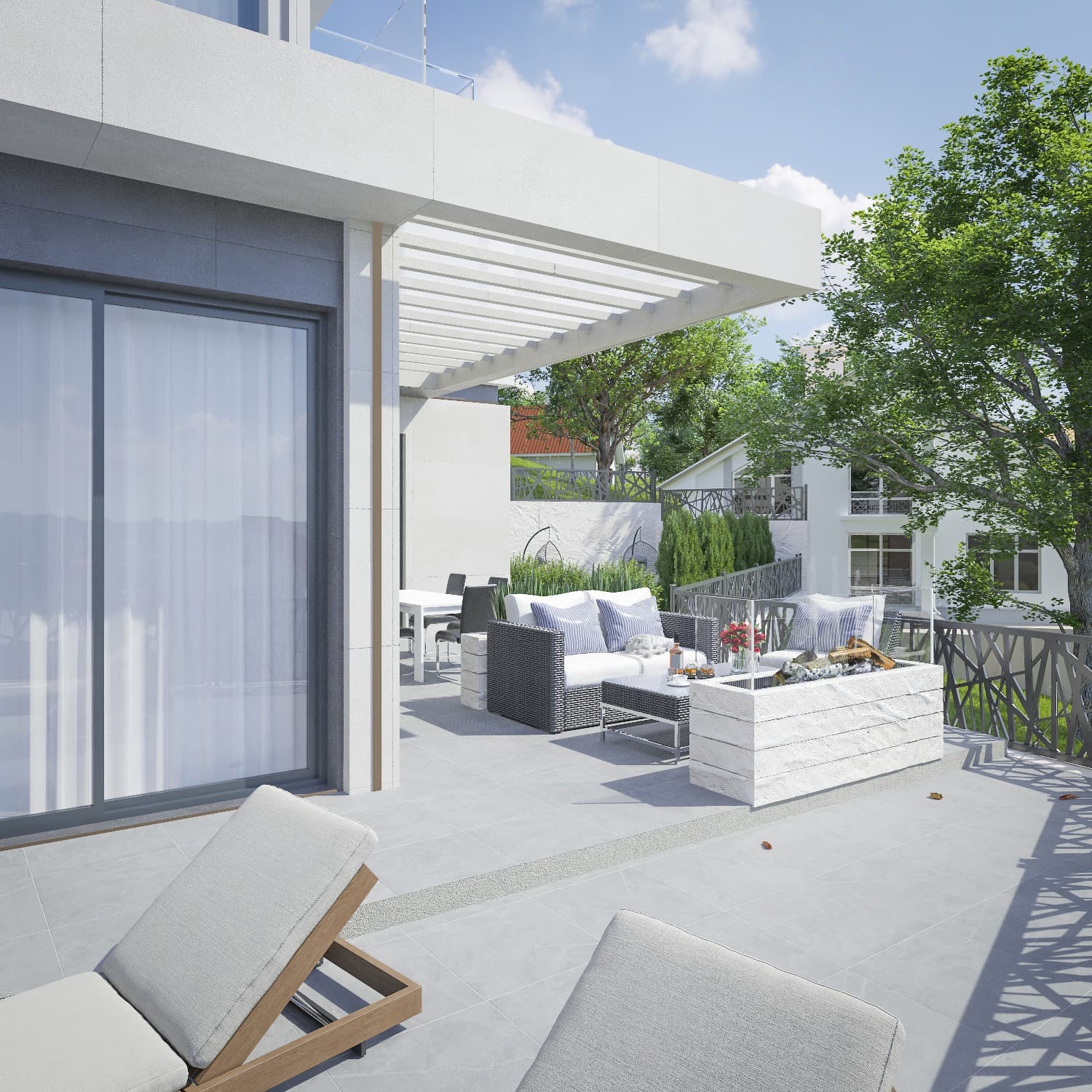 Общая площадь всех этажей с учетом бассейна, террас и балконов - 328,59 м2