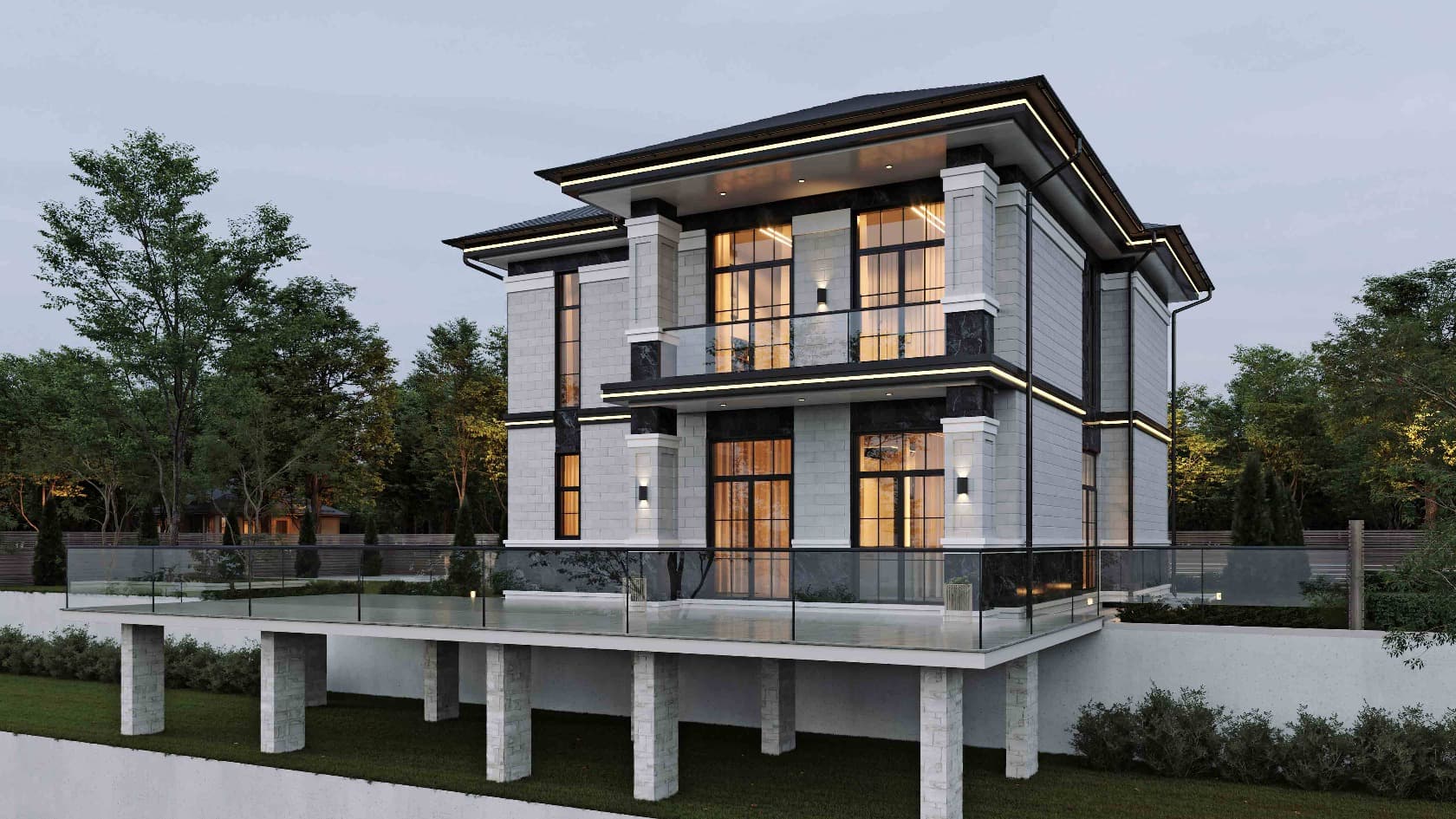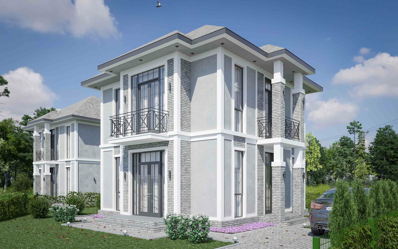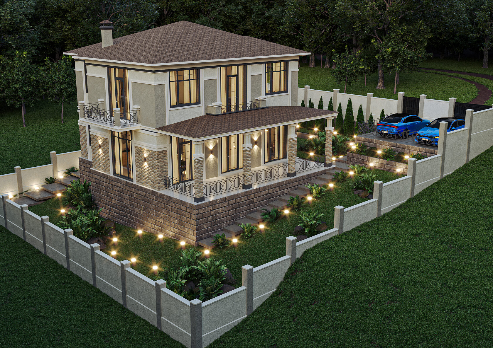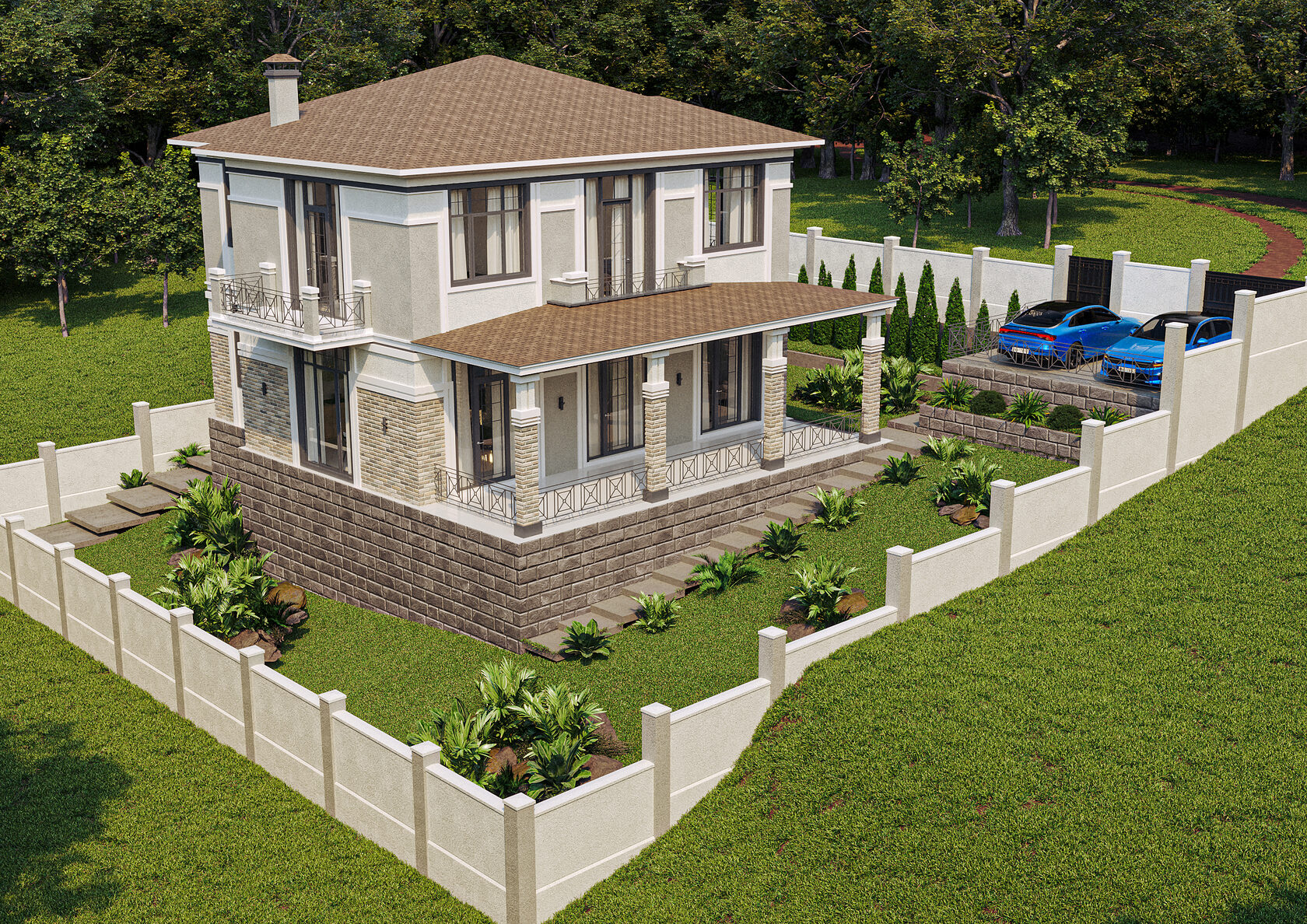 Общая площадь всех этажей с учетом балконов: 333,67 м2