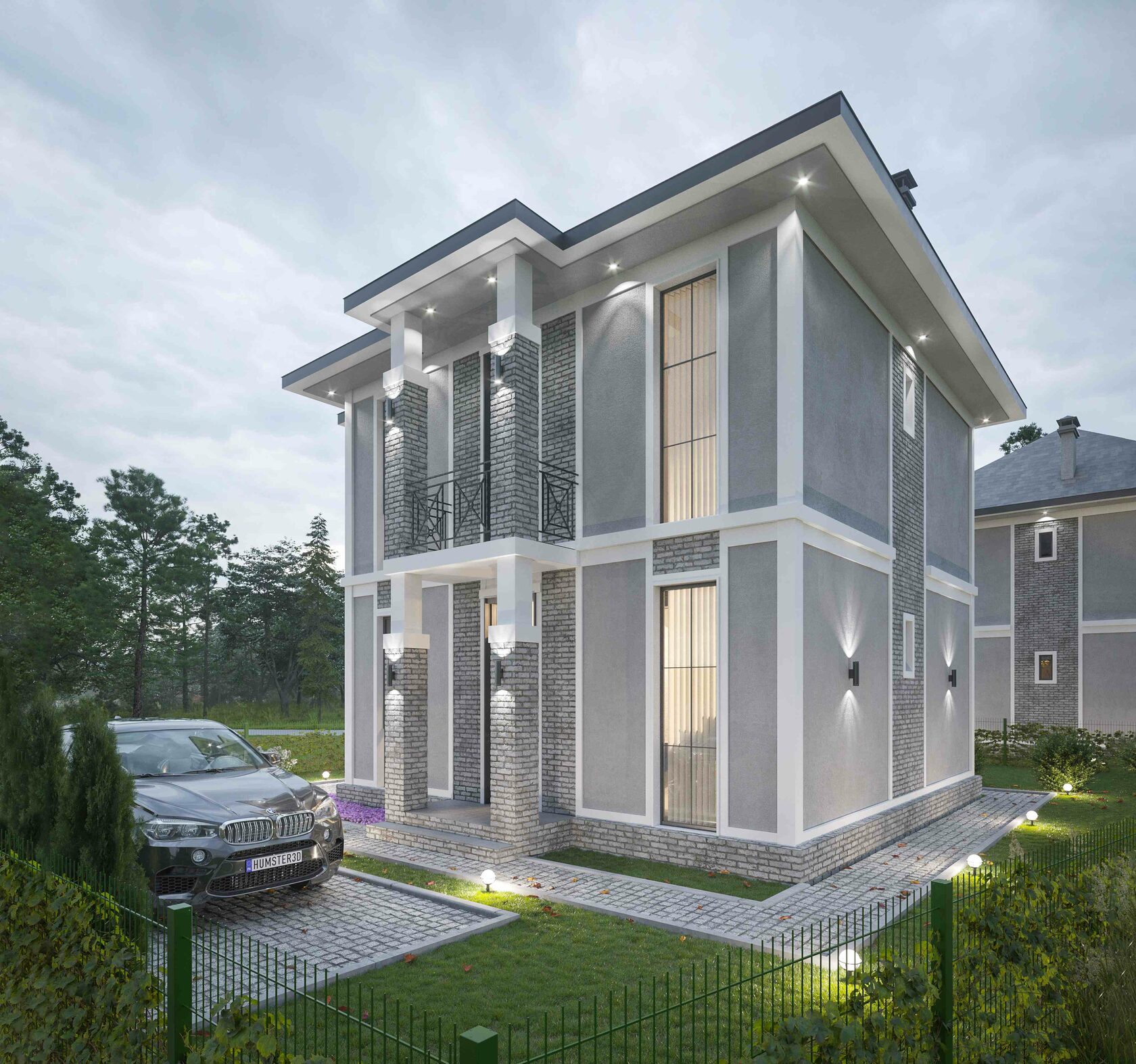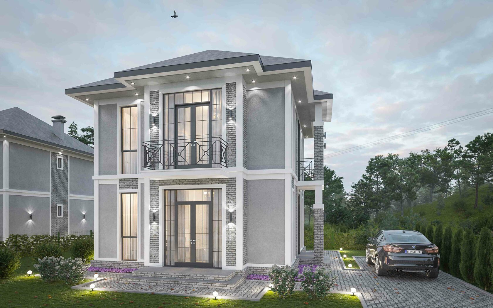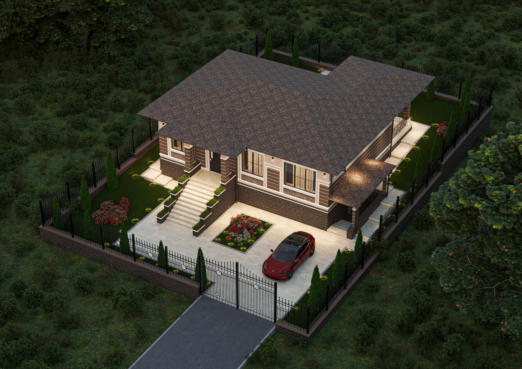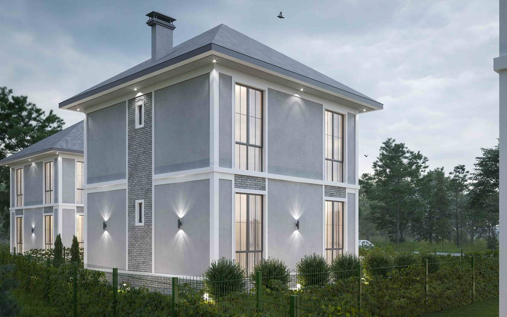 1 этаж: прихожая, холл, котельная, гостевая спальня, с/у, кладовка, кухня-столовая, гостиная;
