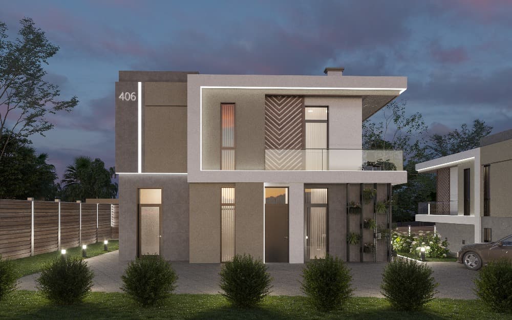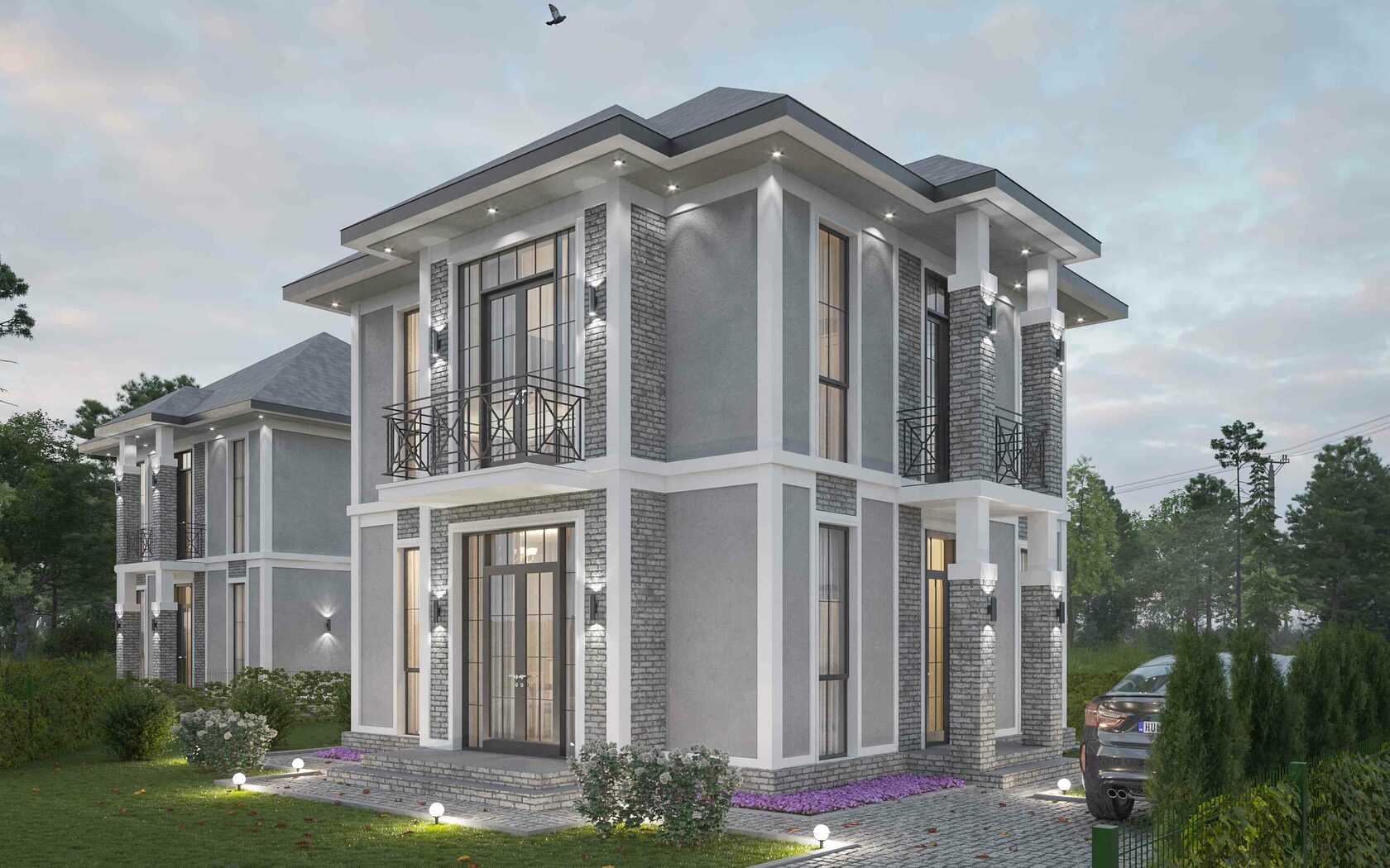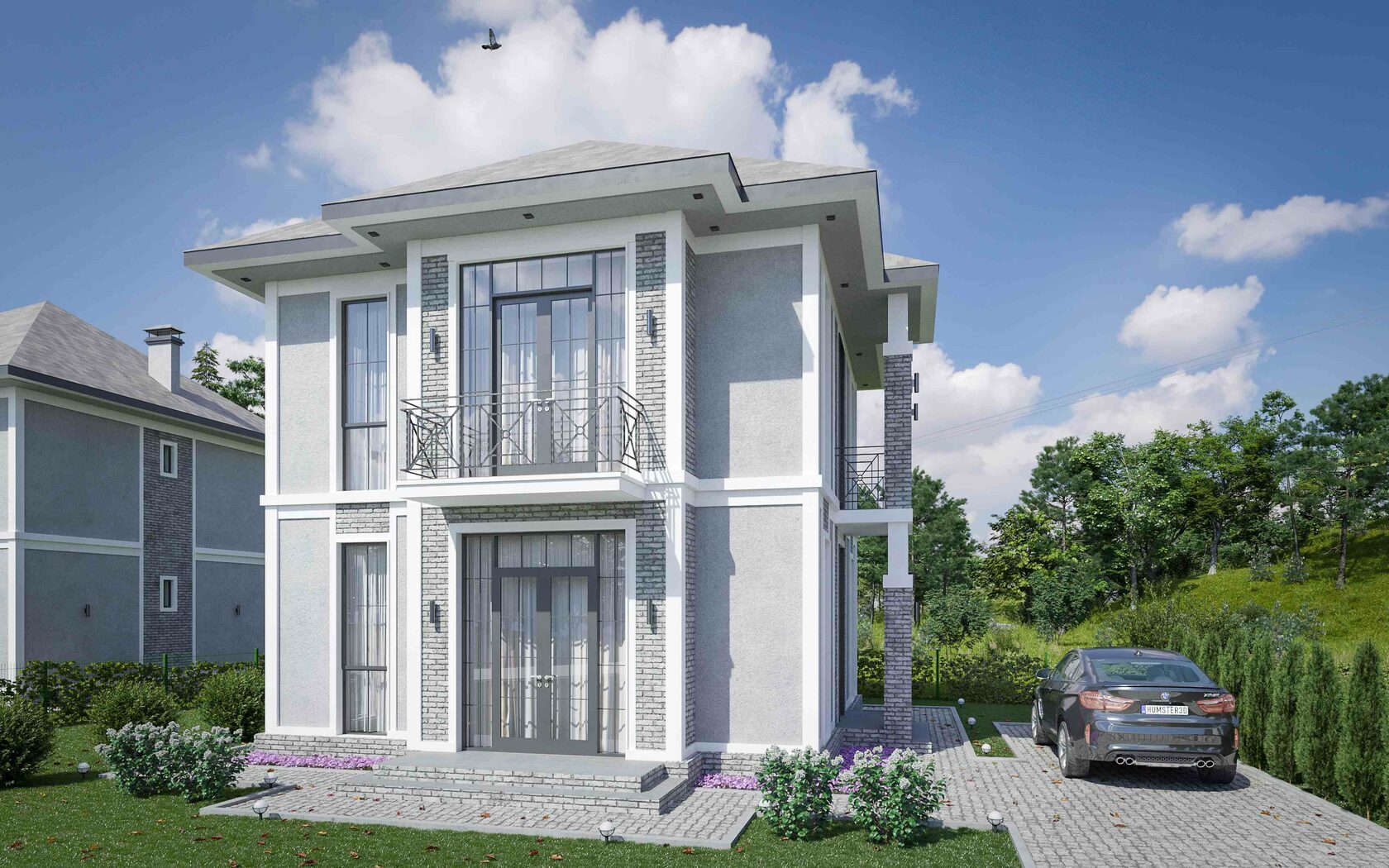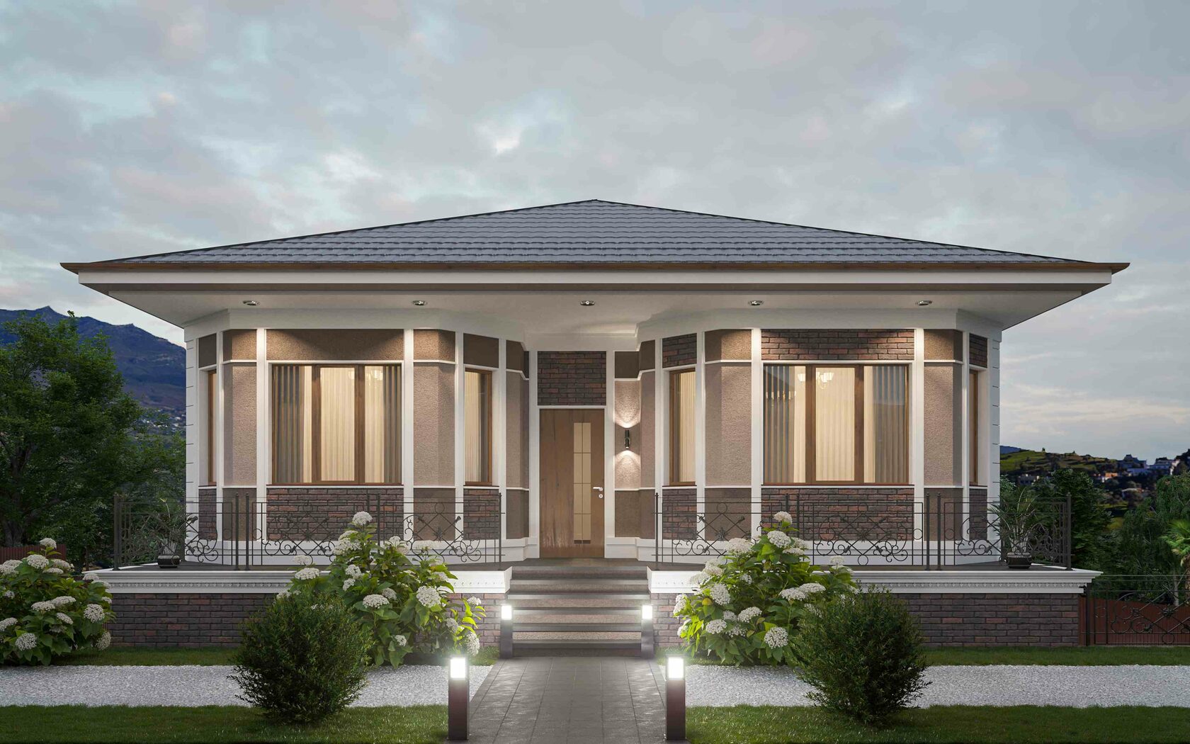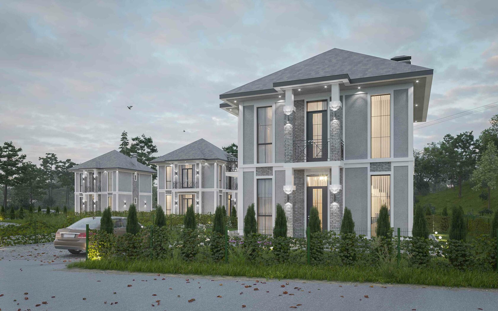 1 этаж: прихожая, холл, котельная, гостевая спальня, с/у, кладовка, кухня-столовая, гостиная;