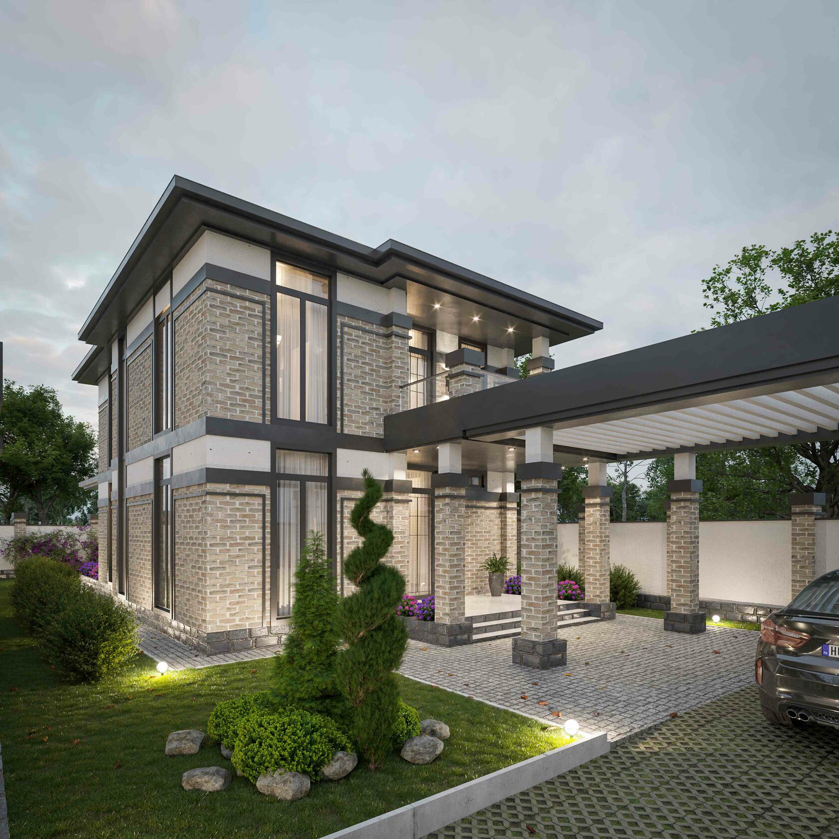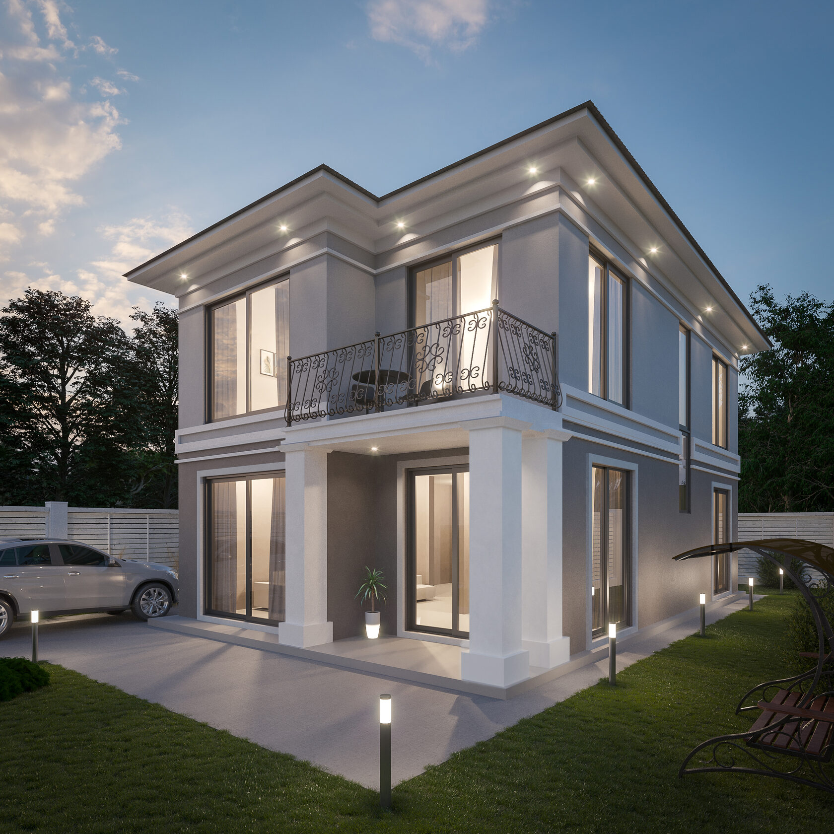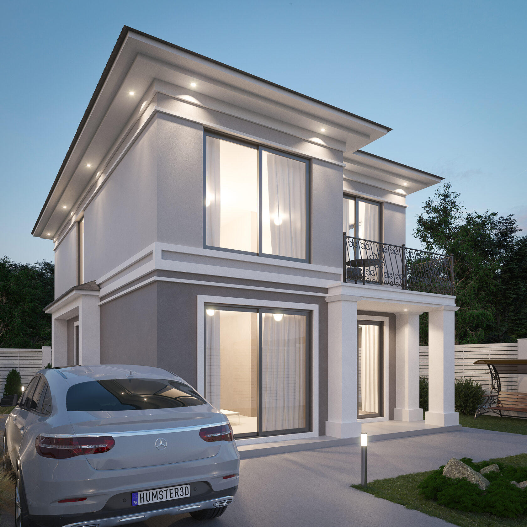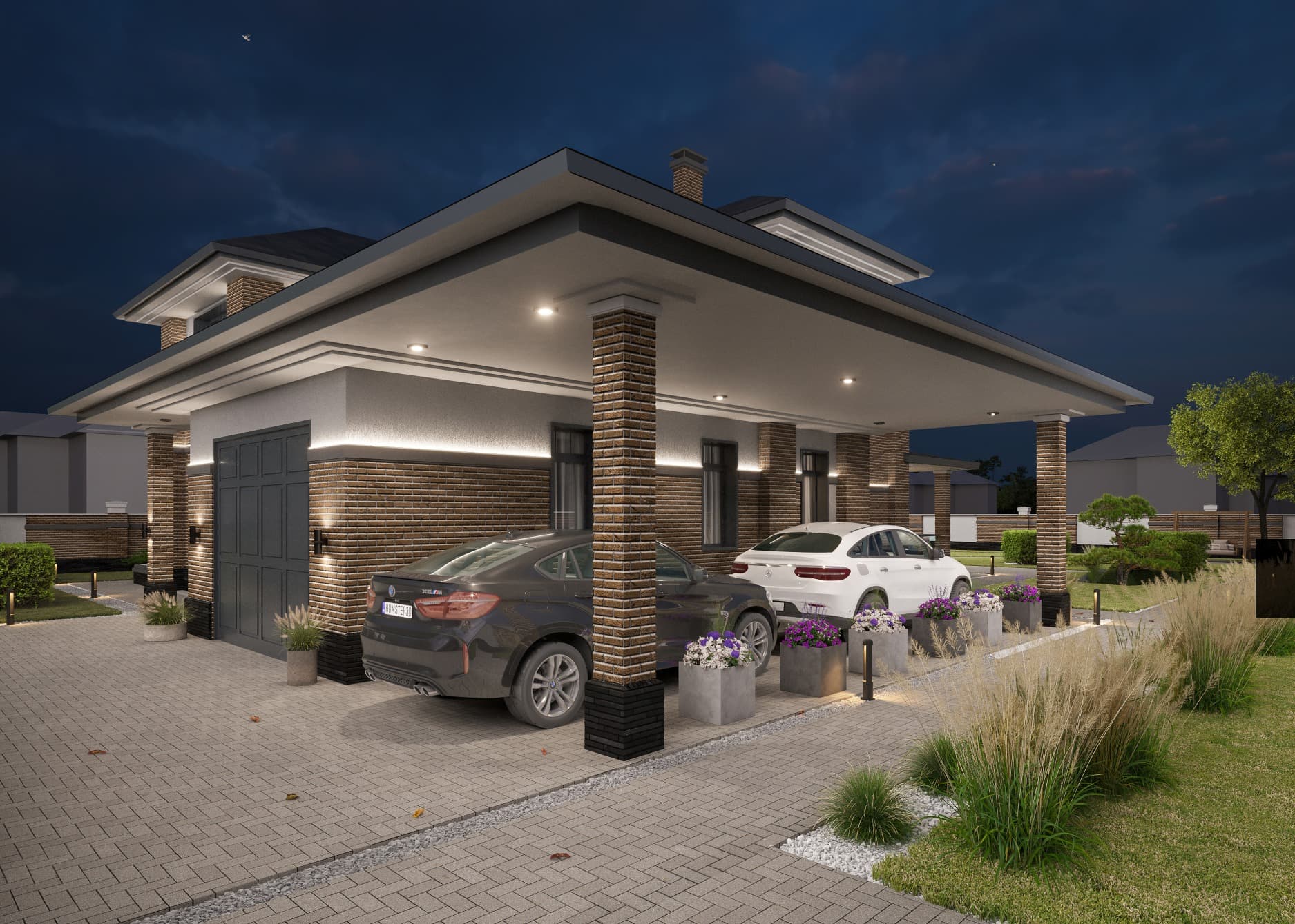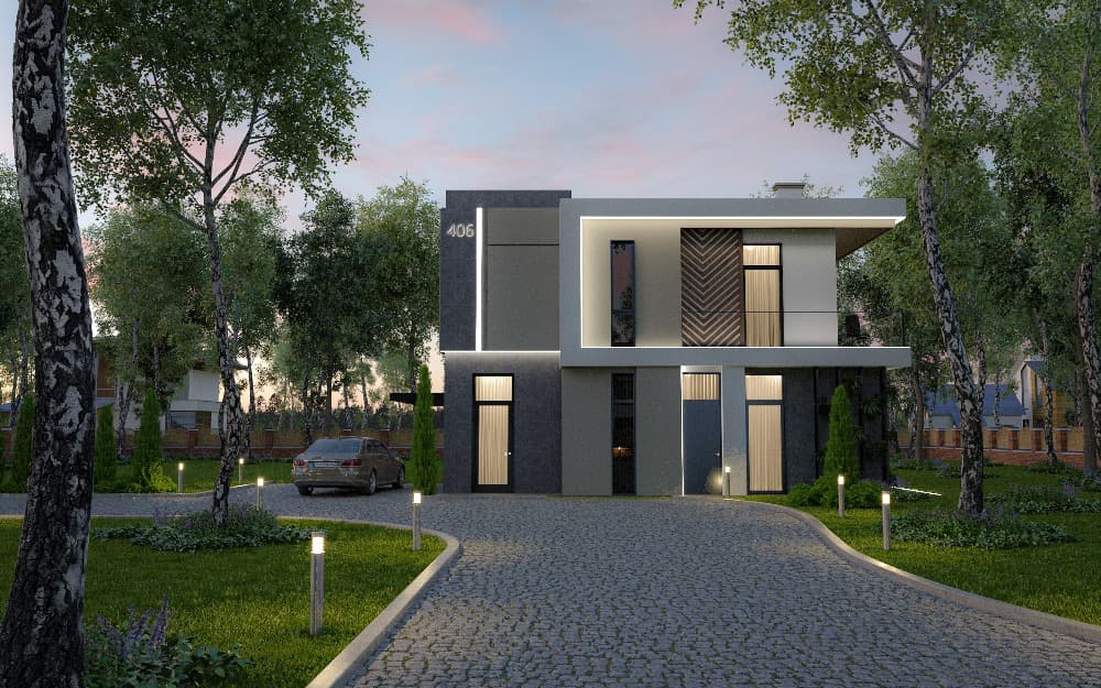 1 этаж: прихожая, холл, котельная, гостевая спальня, с/у, кладовка, кухня-столовая, гостиная;