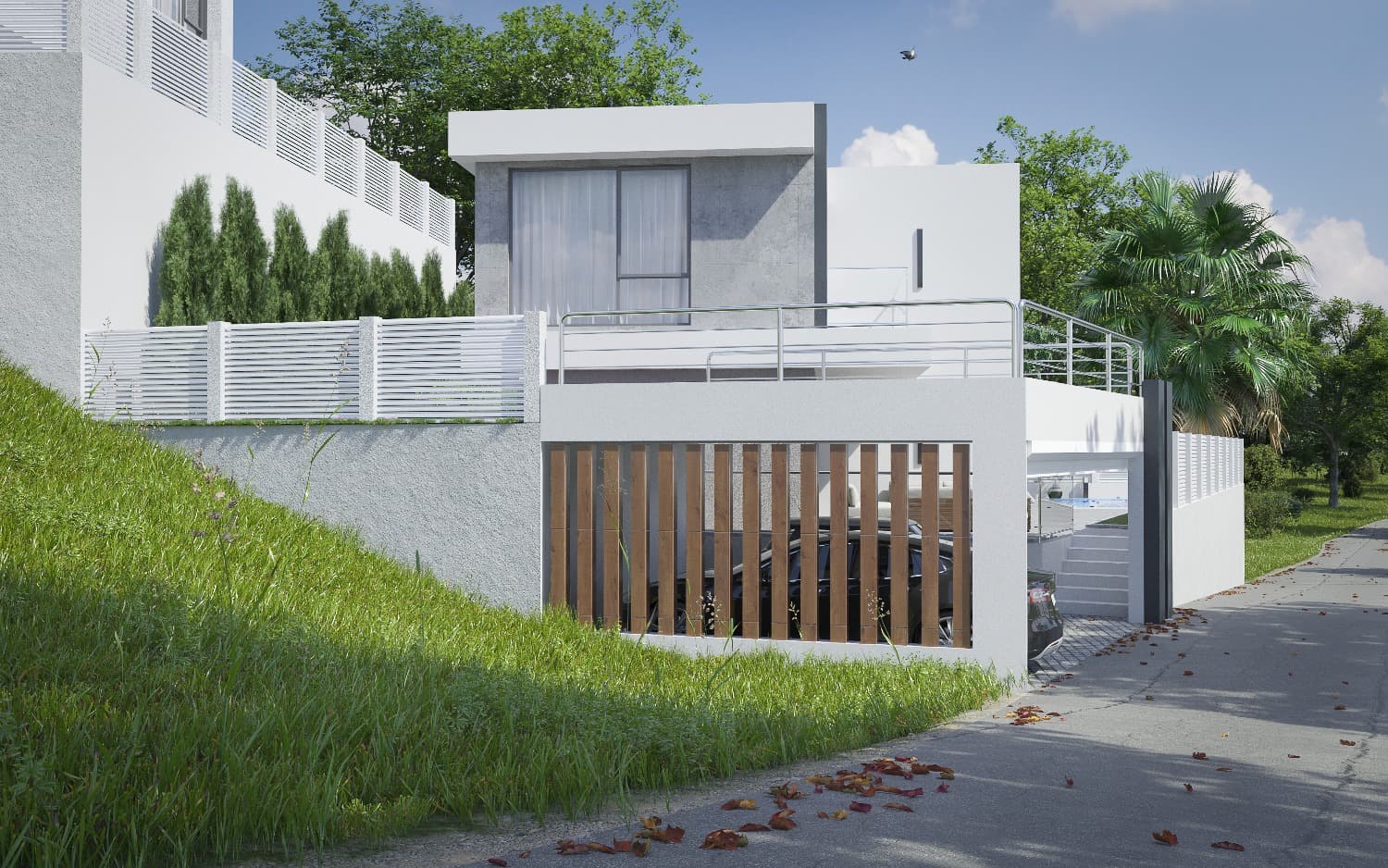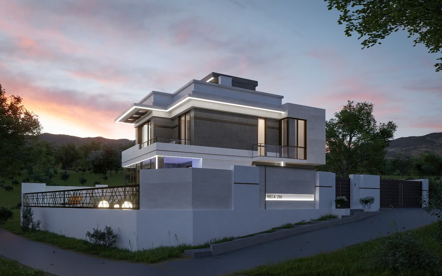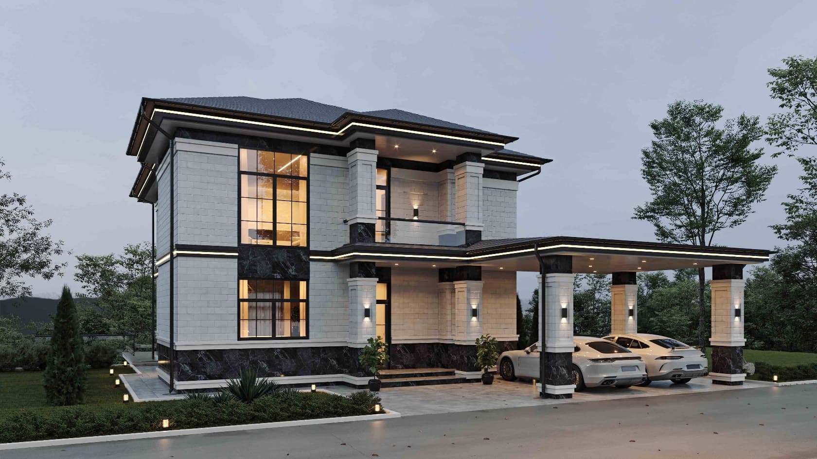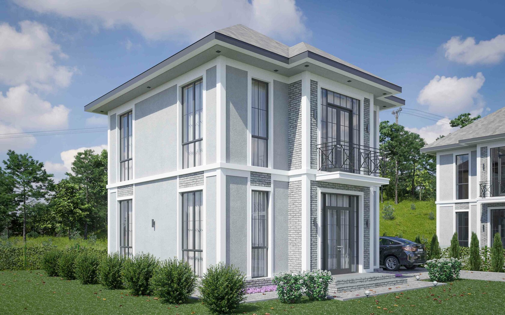 1 этаж: прихожая, холл, котельная, гостевая спальня, с/у, кладовка, кухня-столовая, гостиная;