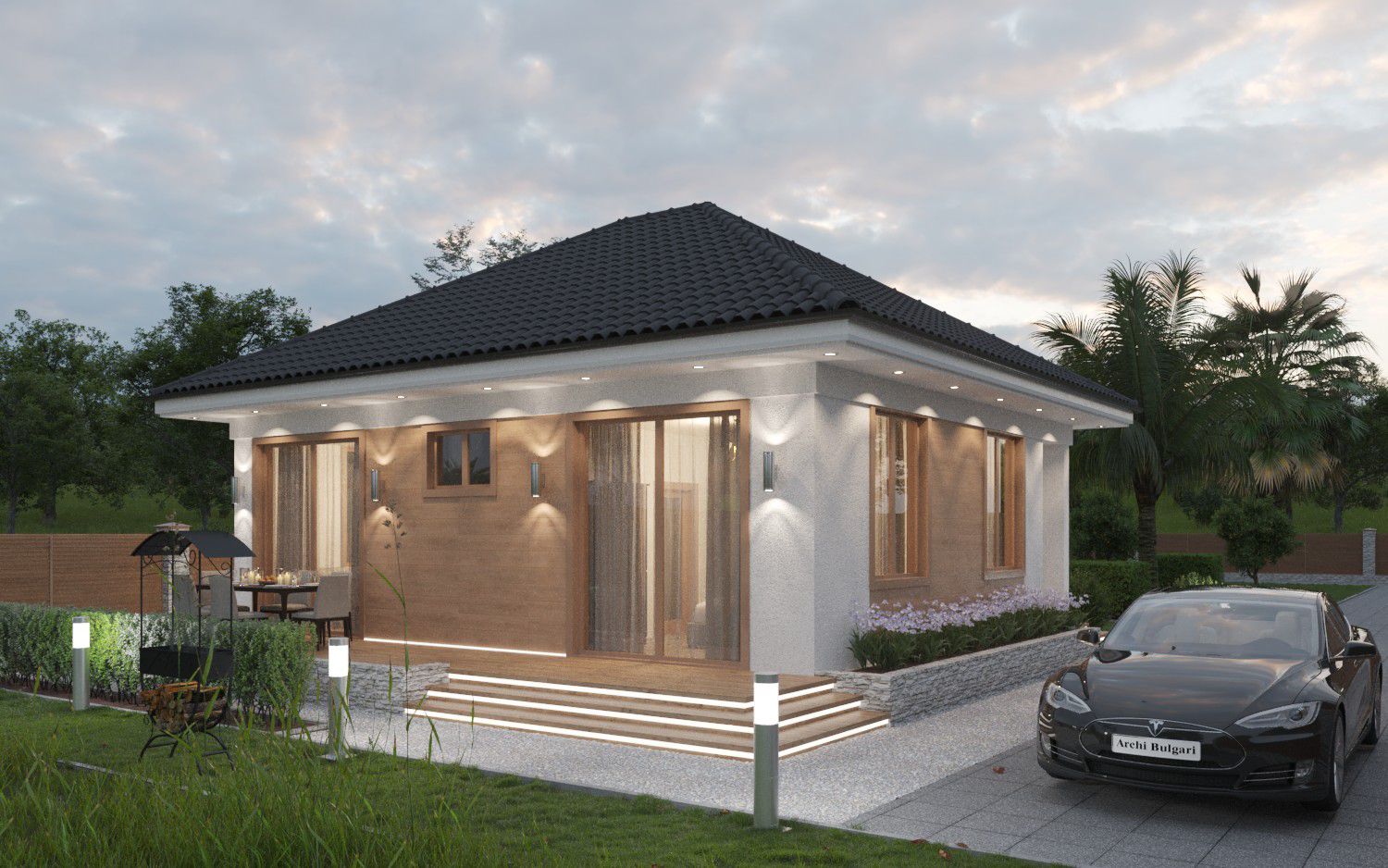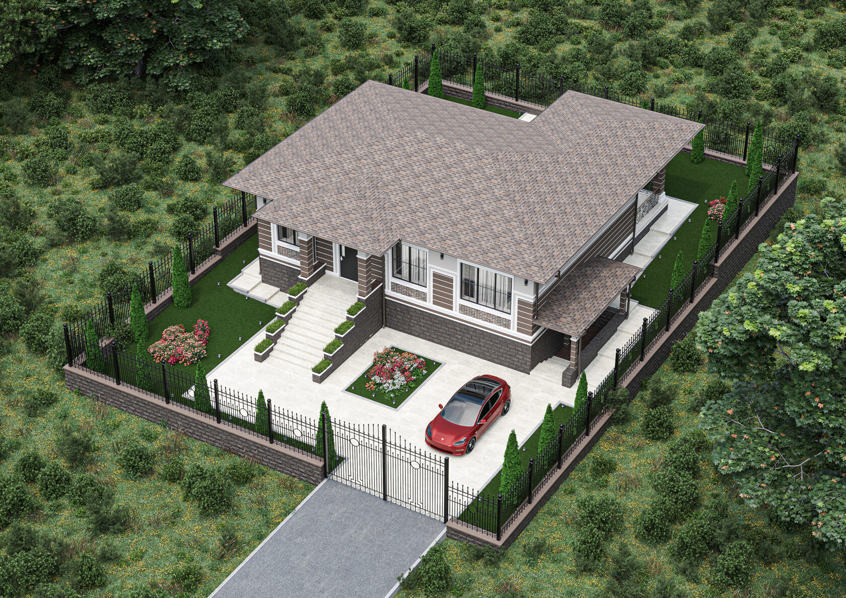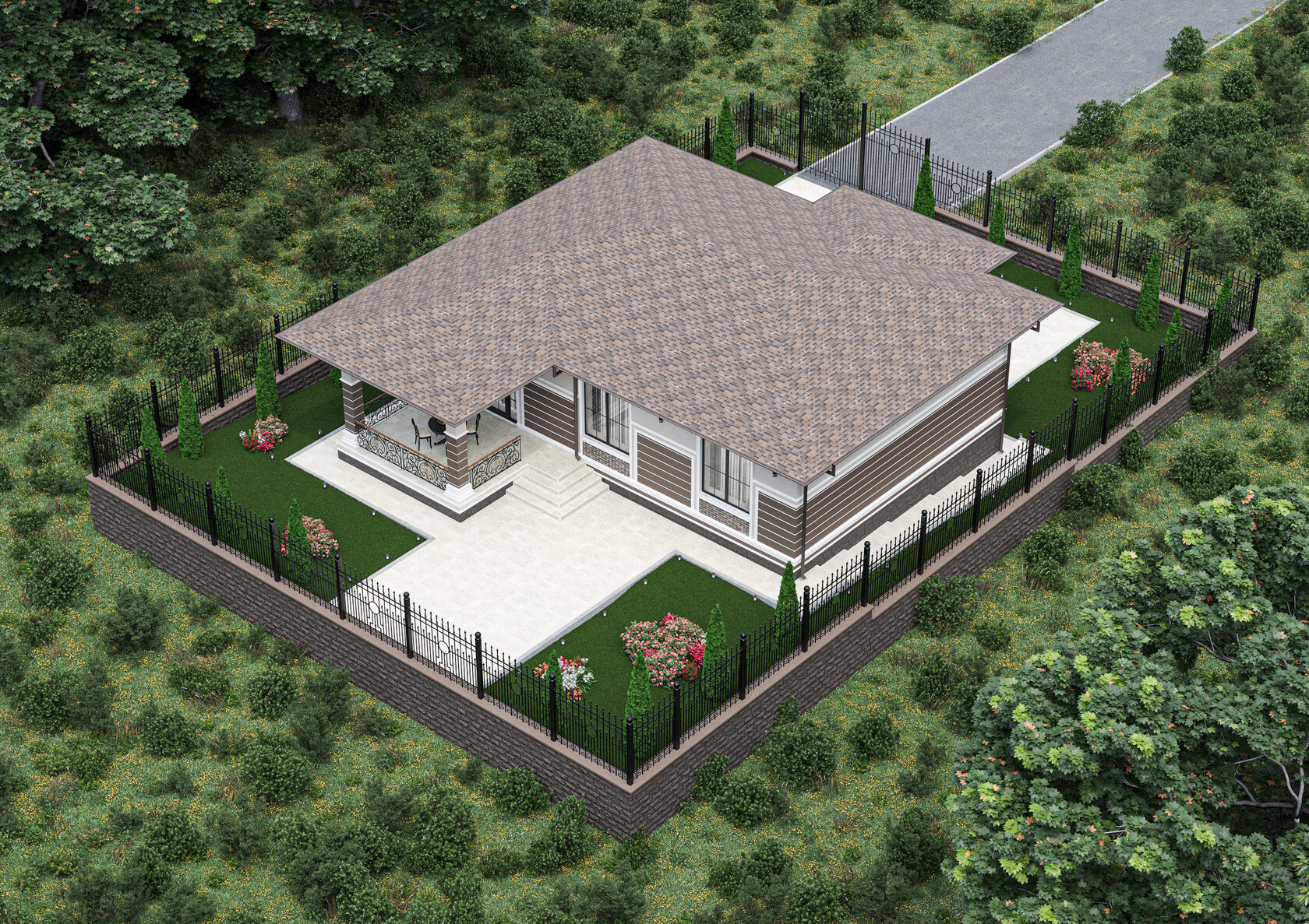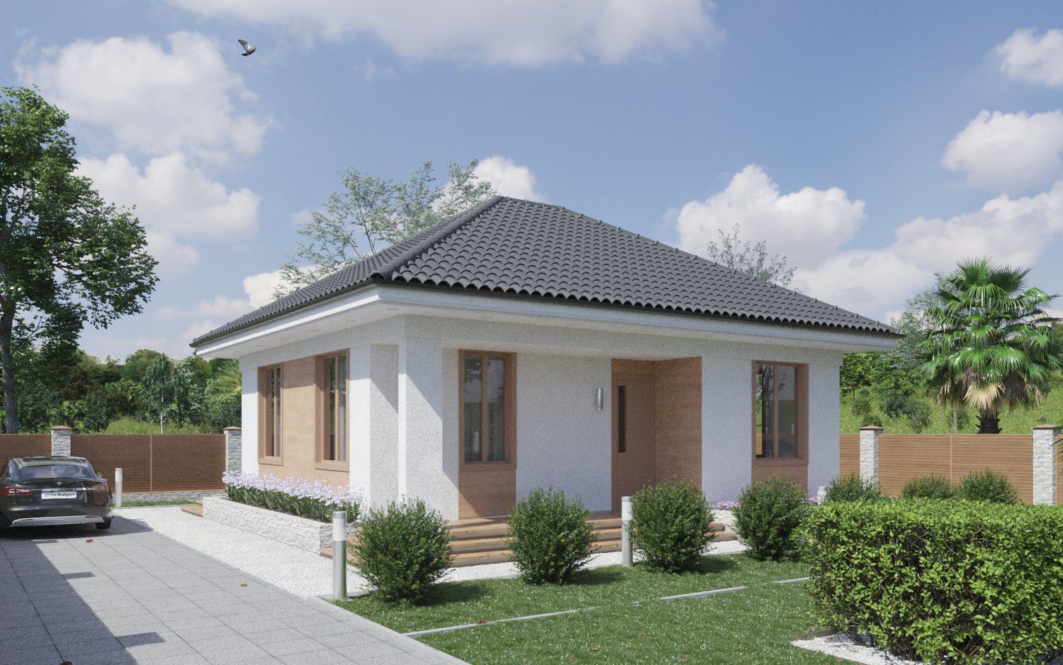 1 этаж: крыльцо, холл, спальню, с/у, кухню-гостиная