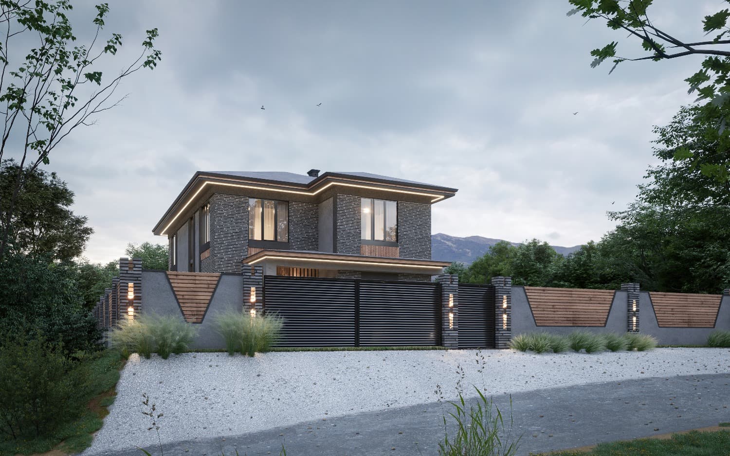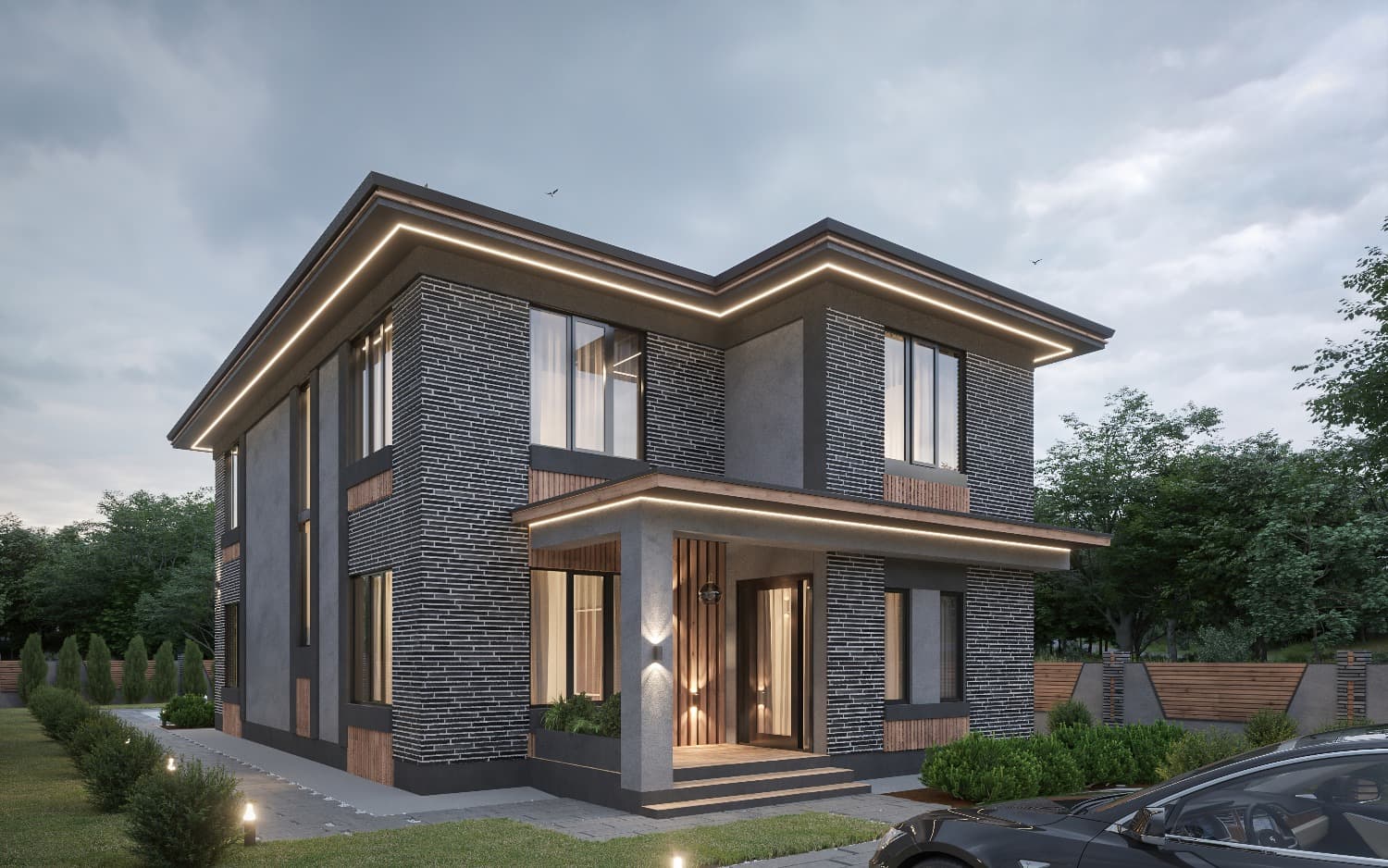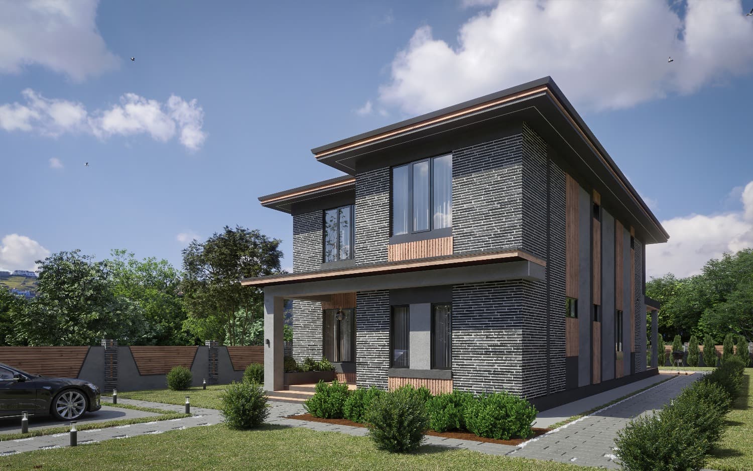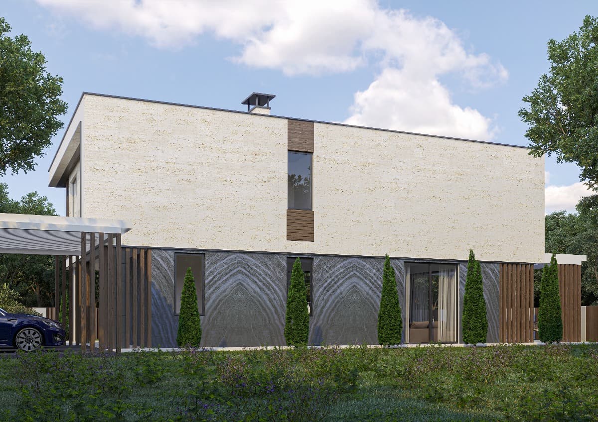 штукатурка декоративная, турин Блэк, отделка фасада деревом