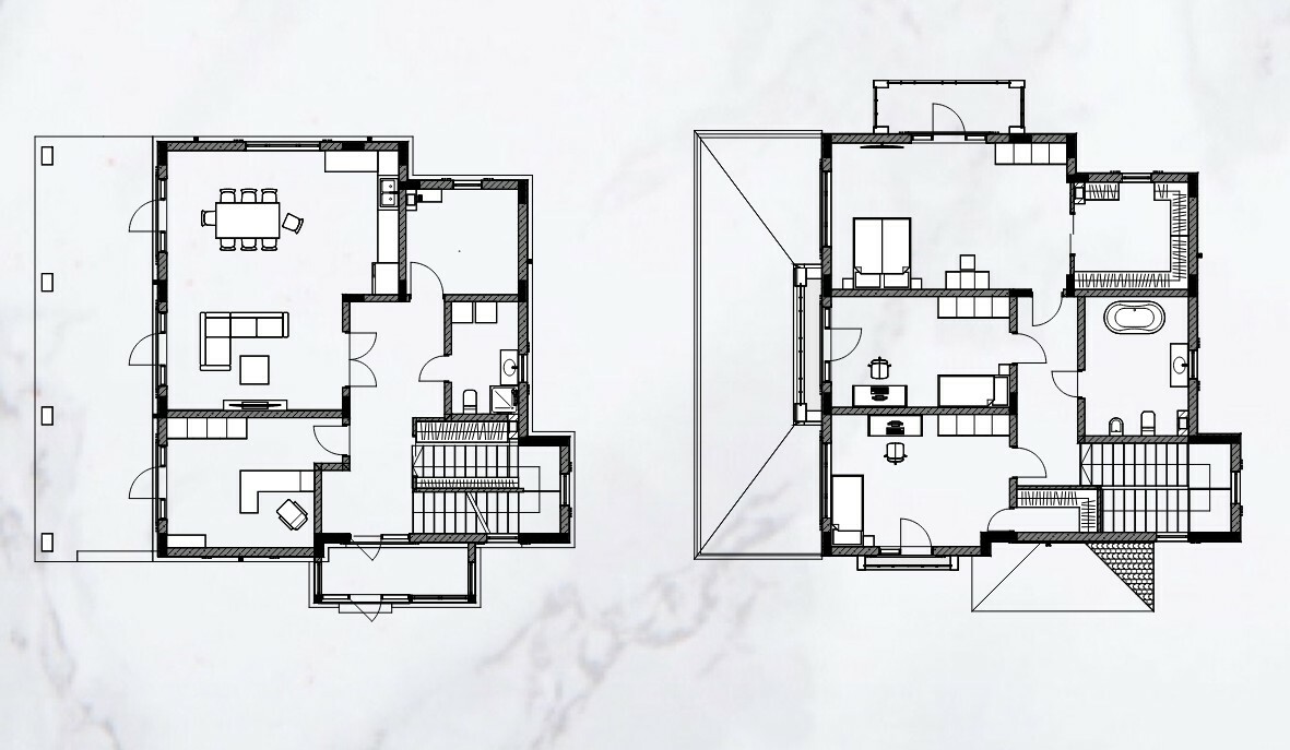 1 этаж: прихожая/холл, с/у, спальня, кухня-гостиная, столовая