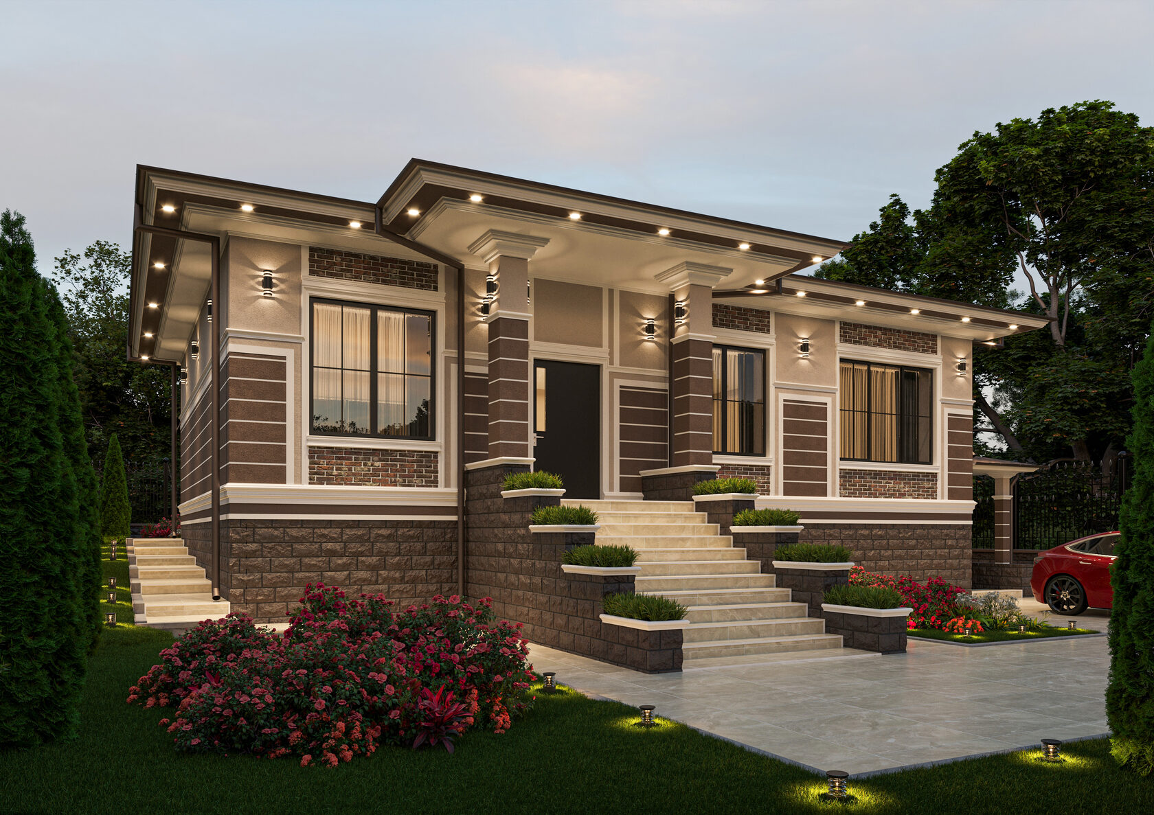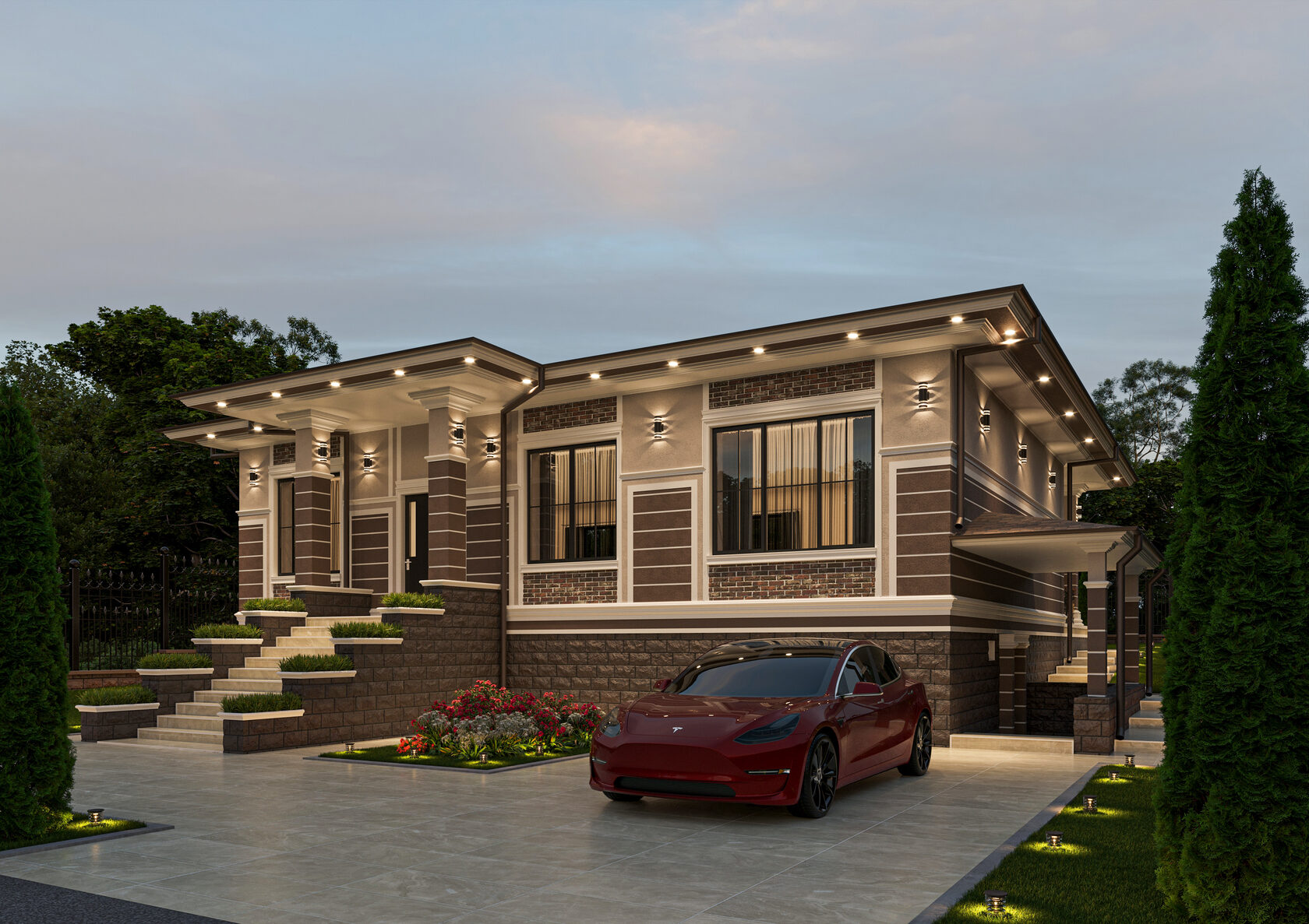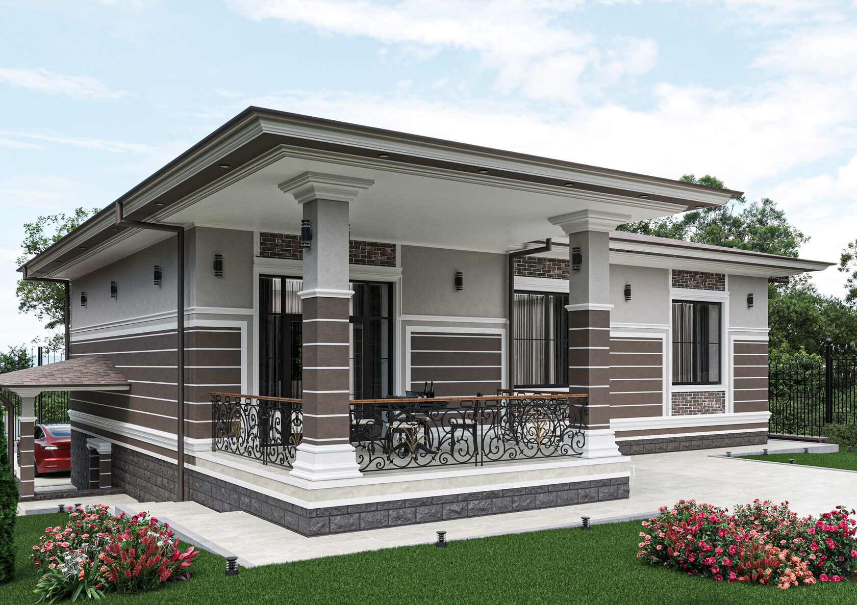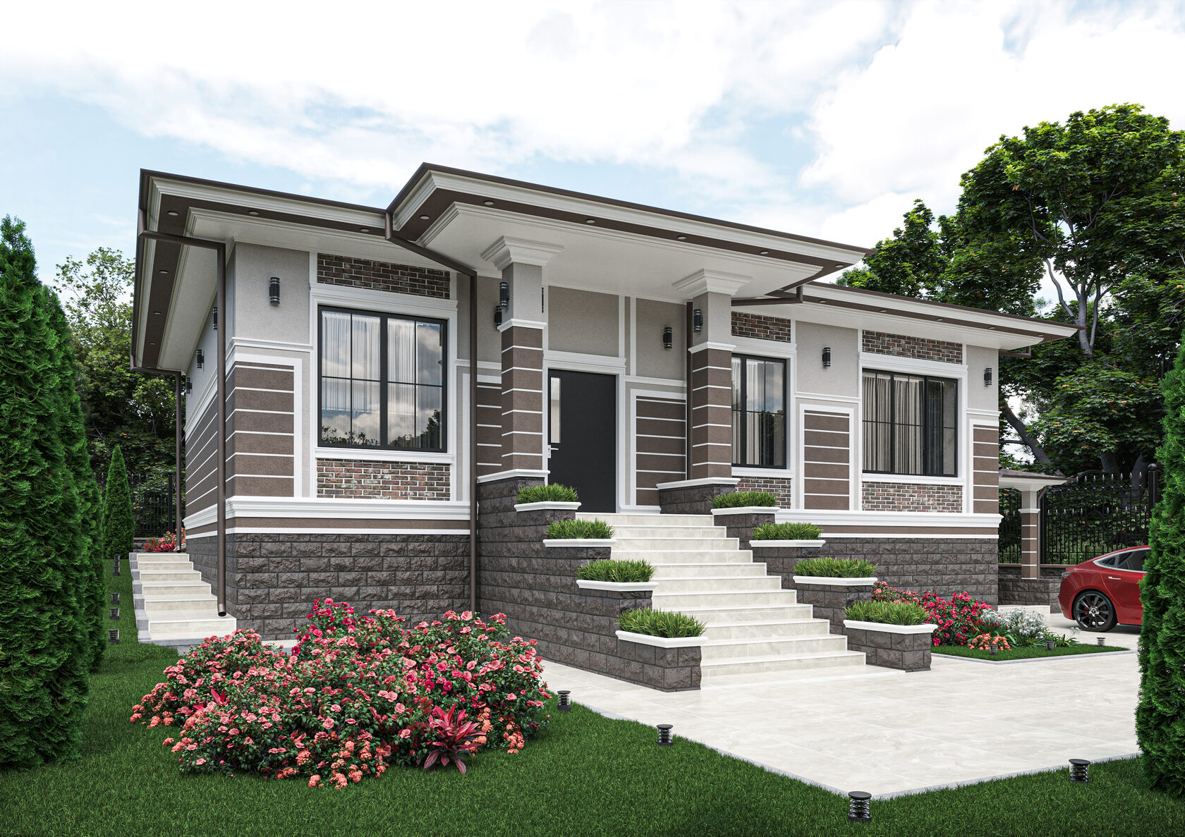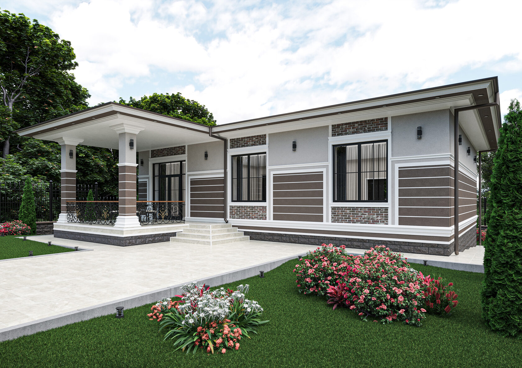 Отделка фасадов: штукатурка фасадная, керамогранитная плитка