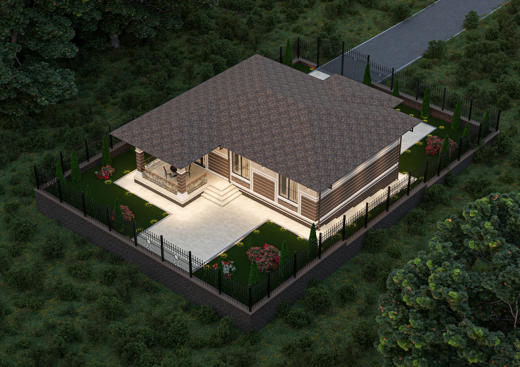 1 этаж: холл/ прихожая, гардероб, с/у, кухня-столовая, гостиная, комнату для персонала, баня