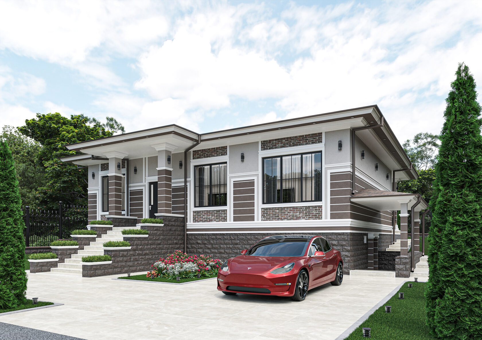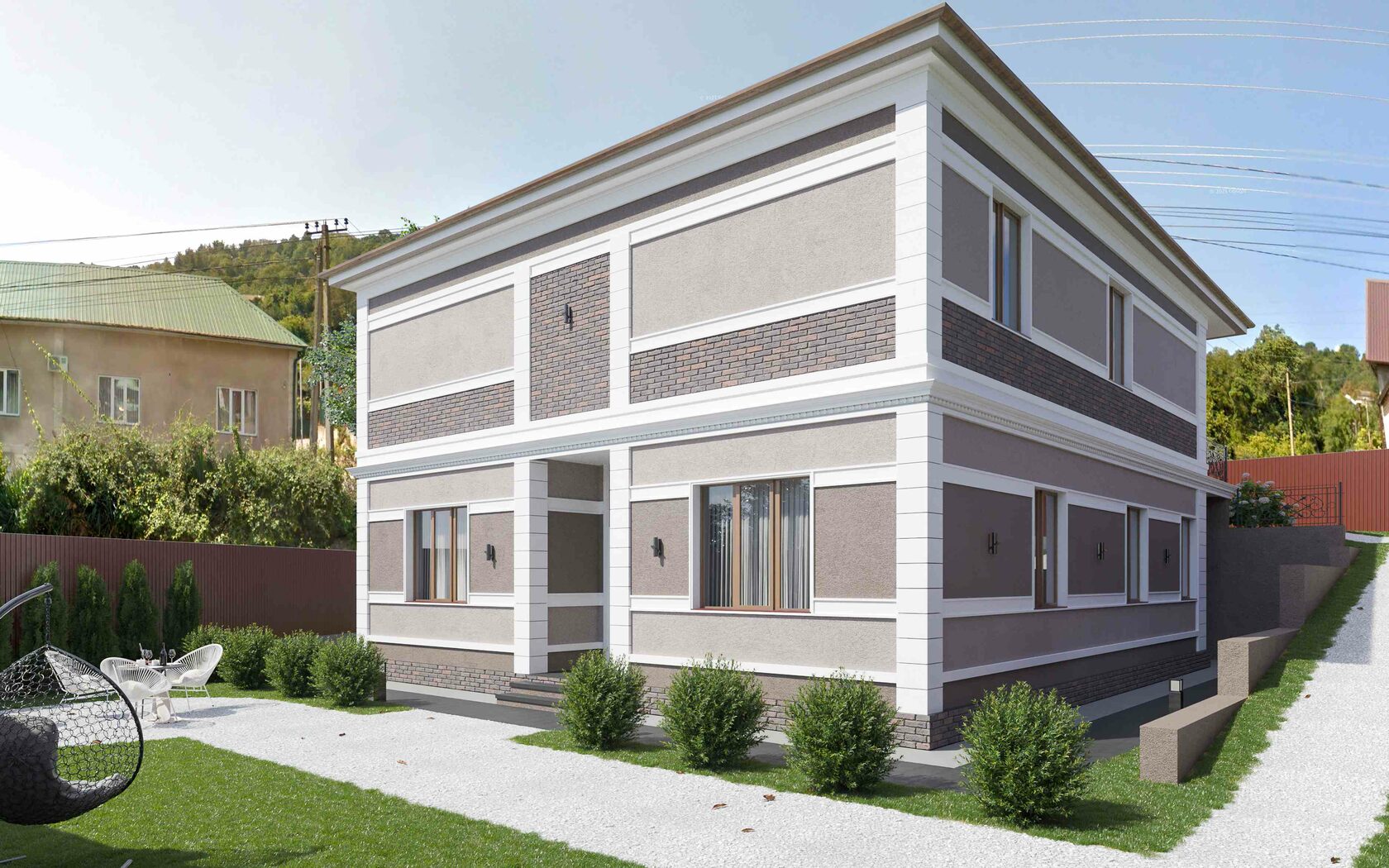 Отделка фасадов: штукатурка фасадная, декоративный камень