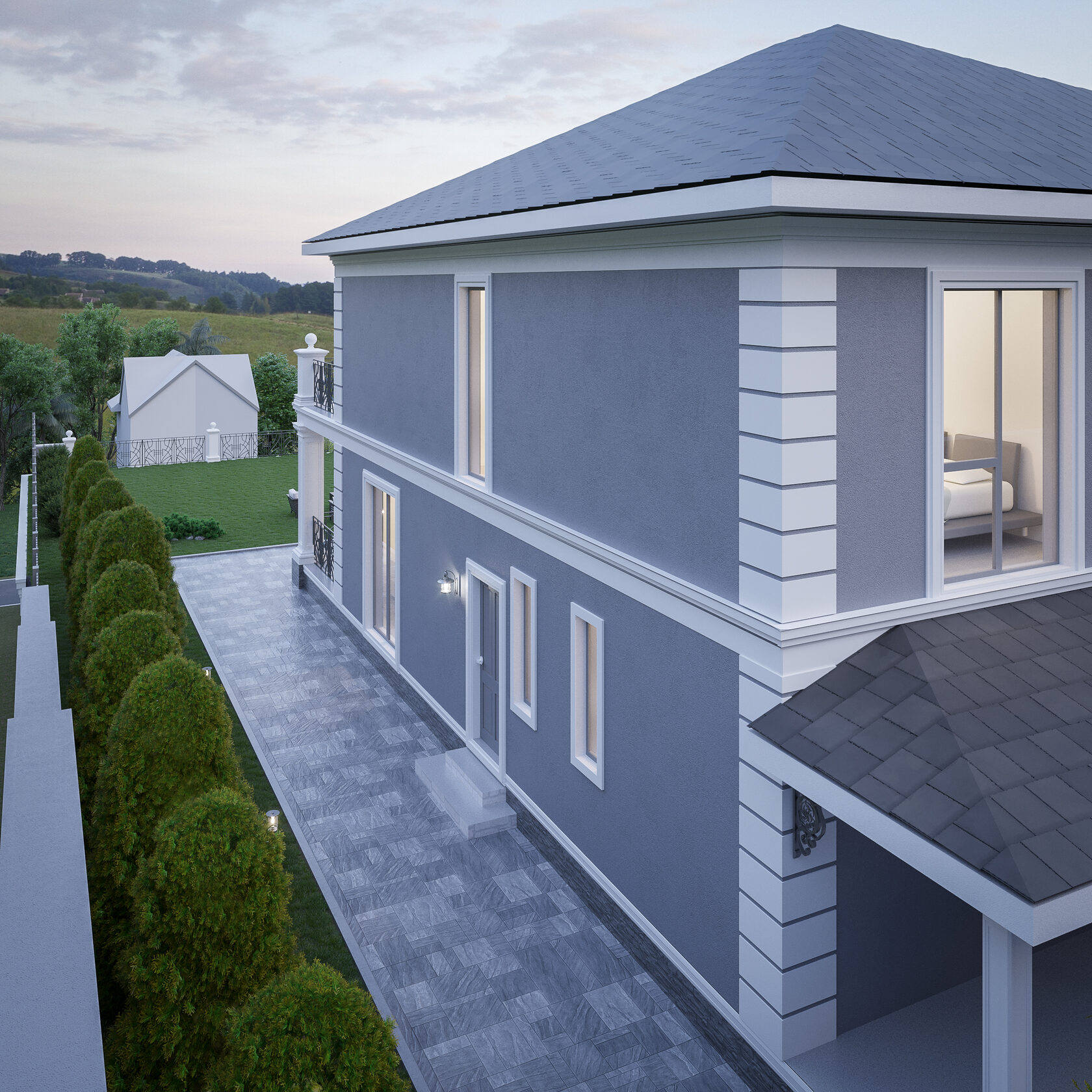 2 этаж: коридор, спальня, 2 спальни с гардеробом, 2 с/у, балкон;